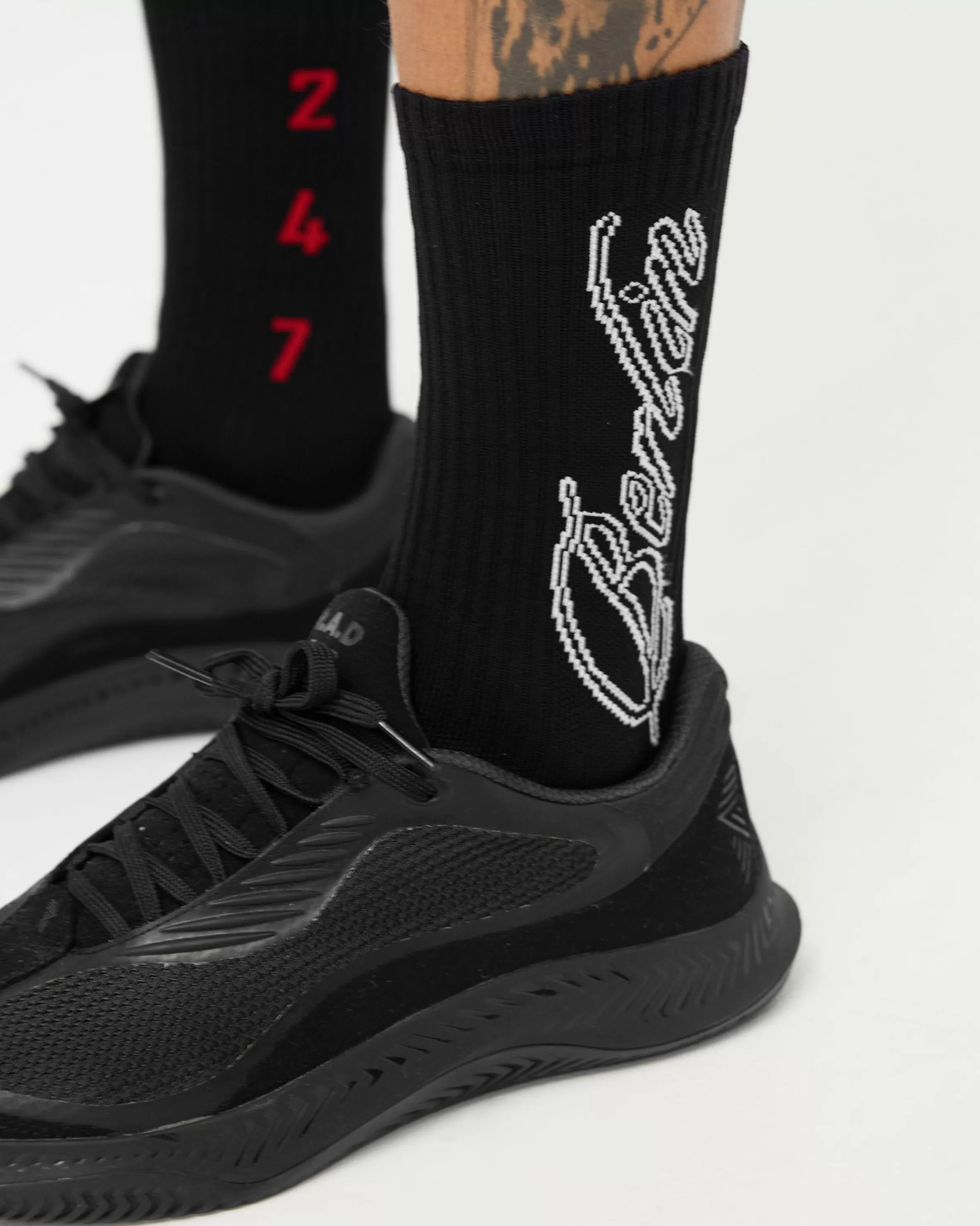 Introducing the 247 Berlin Socks in Black. Crafted for performance, featuring the 247 numbers and Berlin script logo to …