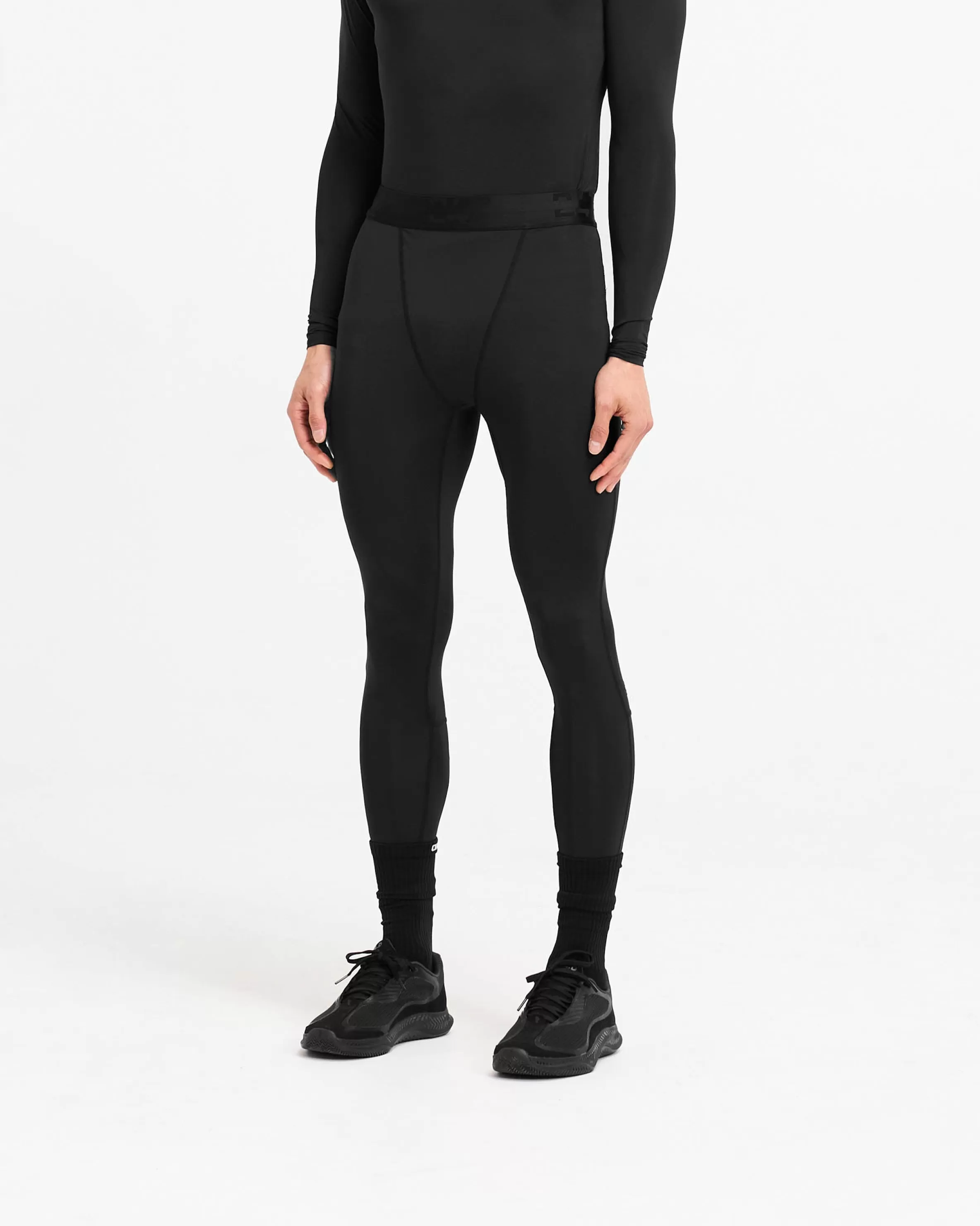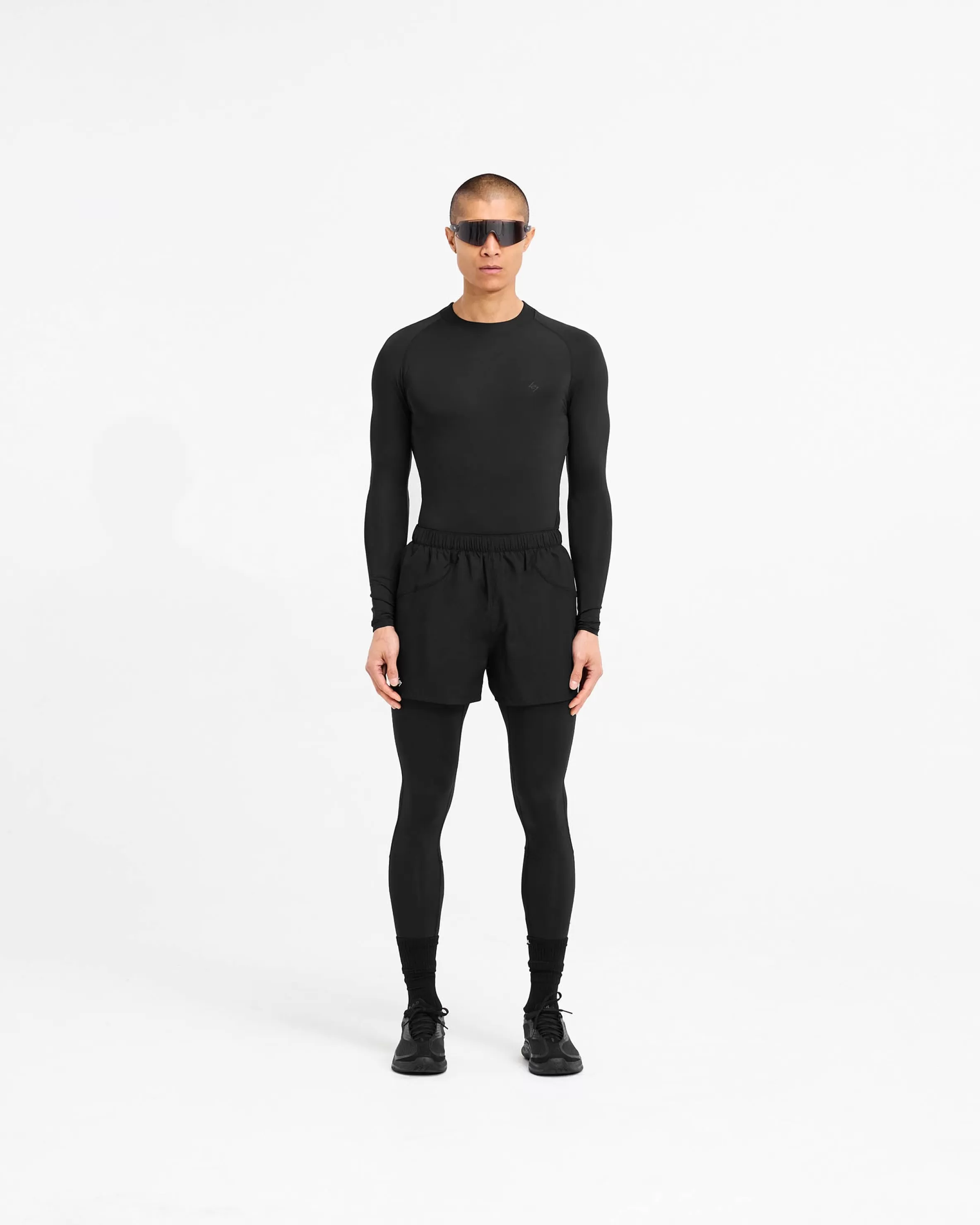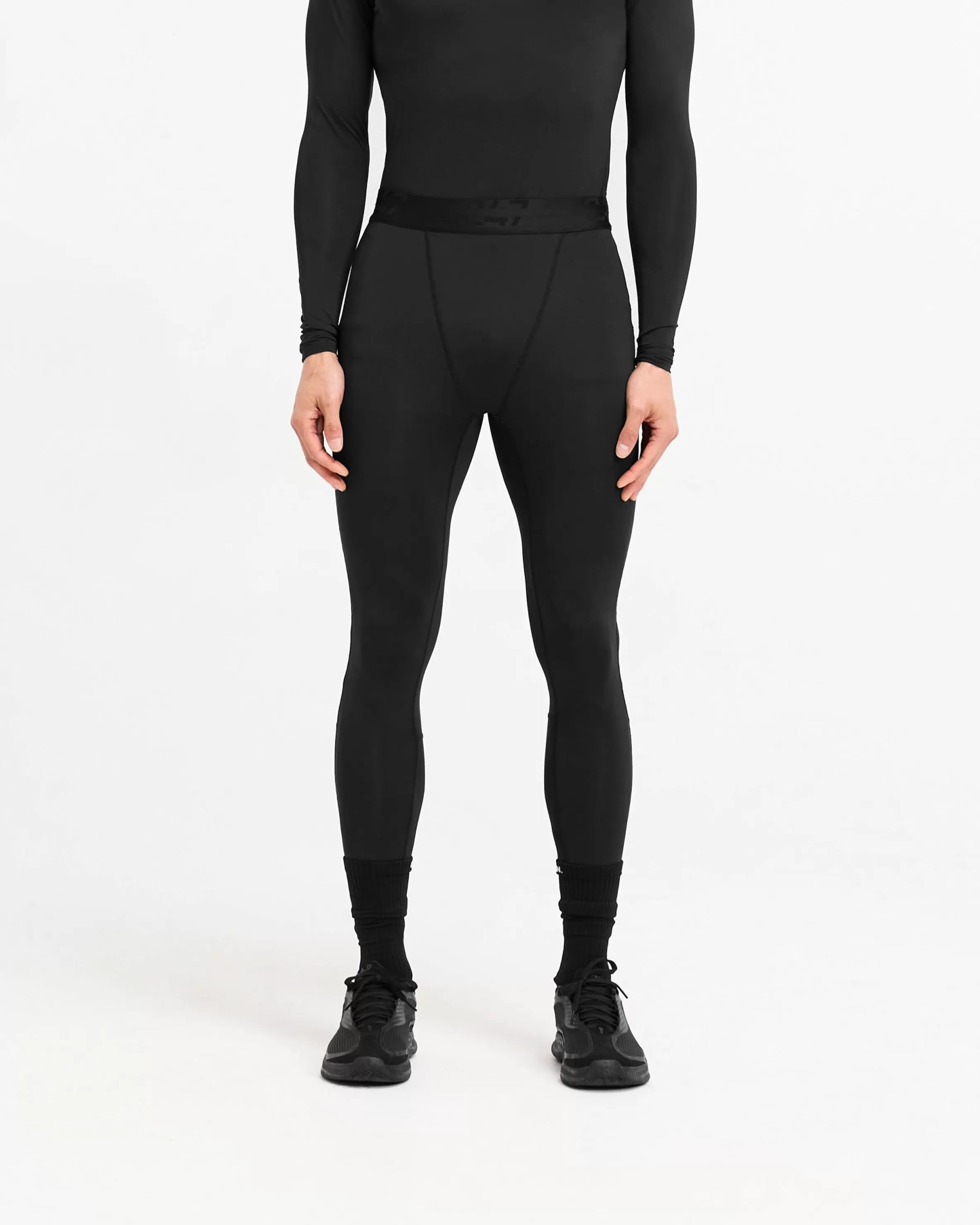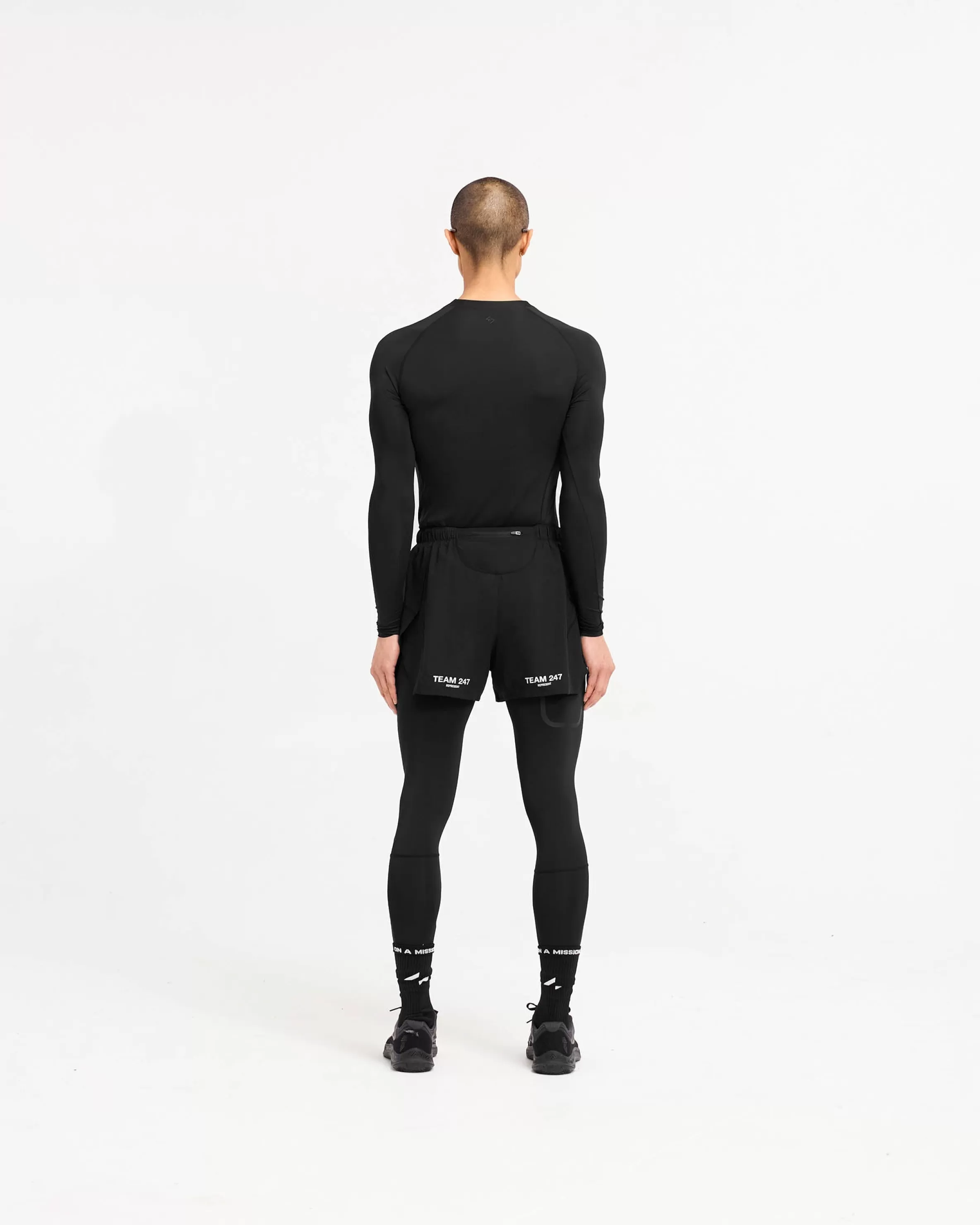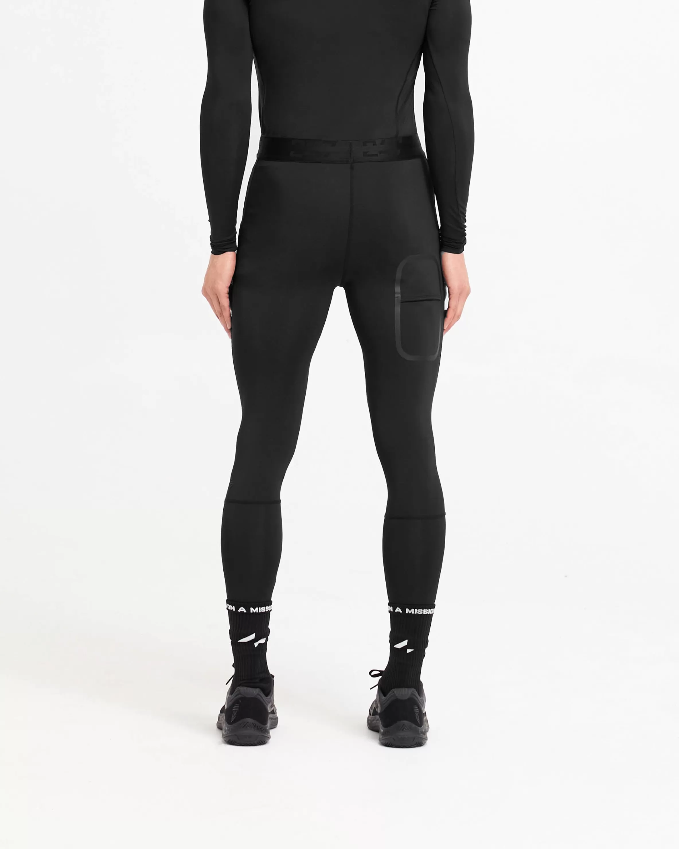 Introducing the 247 Legging, a full length skin designed to optimise training performance. With a branded waistband, the tights have a twin needle stitch to the hem, and flatlock stitching to the gusset to maximise comfort with every training day wear. The leggings have a fused pocket to the leg to keep your phone close to the leg for distraction free running. They are finished with a raised tonal 247 logo to the leg. The leggings are crafted from an ultra-matte black antibacterial fabric for a box-fresh feel with every wear. They have 4-way stretch to maximise range of movement and anti-pilling fabric to maintain longevity. The fabric incorporates quick drying and sweat wicking technology, working with the body’s natural thermo-regulatory mechanisms to push performance. 247 Compound Leggings Matte Black 4-Way Stretch Quick Drying u0026amp; Sweat Wicking Antibacterial External Flatlock Stitching Elasticated Waistband Composition: 80% Polyester, 20% Elastane Model is 187cm and 76kg wearing size MProduct