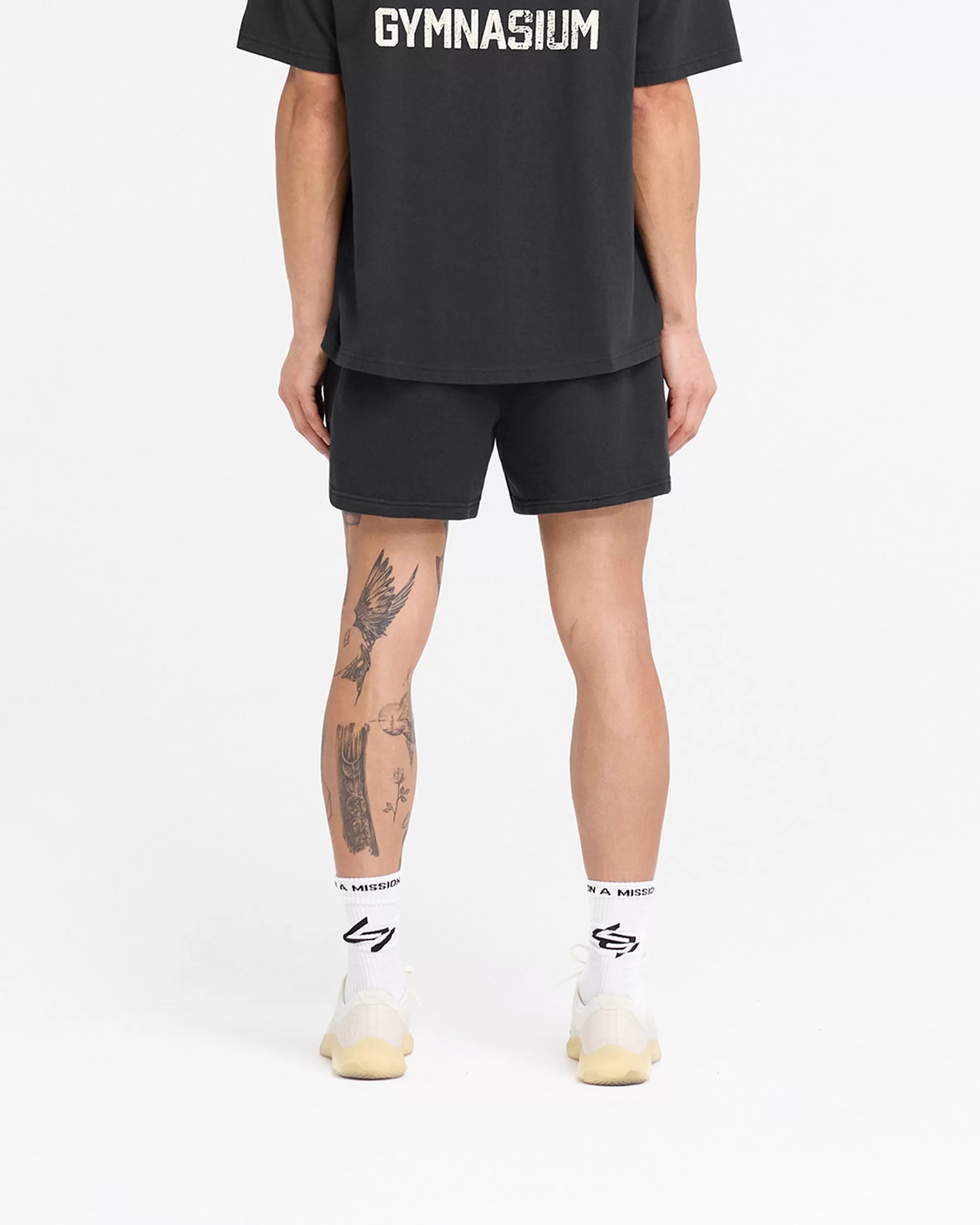 Introducing the 247 Gymnasium Jersey Shorts in Off Black, a fleece back cotton short style with a super boxy fit with sh…