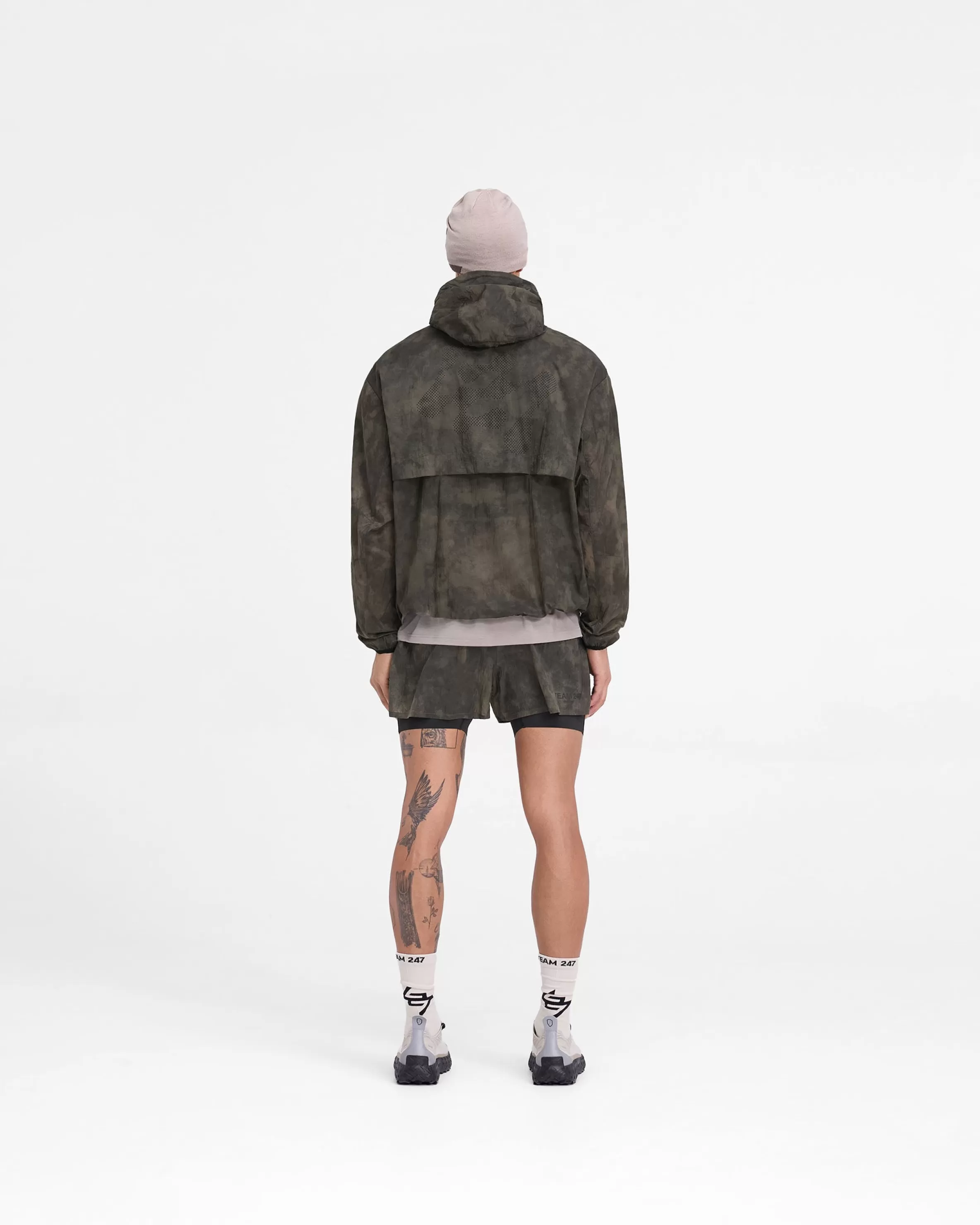 Introducing the 247 Hooded Training Jacket in Terrain. Designed to blend contemporary aesthetics with unparalleled functionality, this jacket is the ideal piece for wearing across any outdoor workout or run. It is crafted from woven ripstop nylon for longevity and durability, with DWR (durable water repellent) coating for windy or light rain conditions. The jacket has storm flaps to the front, and a terrain 247 logo perforated to the back storm flap. It affords complete coverage with binding to the sleeve opening, with a thumb loop to maintain coverage with movement. The jacket has a double ended front zip closure with translucent branded zipheads. It allows for tailored hem control with a bungee cord and toggle for adjustment to your preference. The jacket also has a toggled hood. The hooded training jacket is suitable for everyday use, short runs, and long weekend hikes/jogs. Hooded Training Jacket Terrain Print Slightly Oversized Fit Durable Water Repellent (DWR) Coating Storm Flap with Hidden Pocket Zip Pockets Adjustable Hem 247 Number Branding Branded Auto Lockable Zip Heads Thumb Loops Composition: 100% Nylon Model is 187cm and 76kg wearing size MProduct
