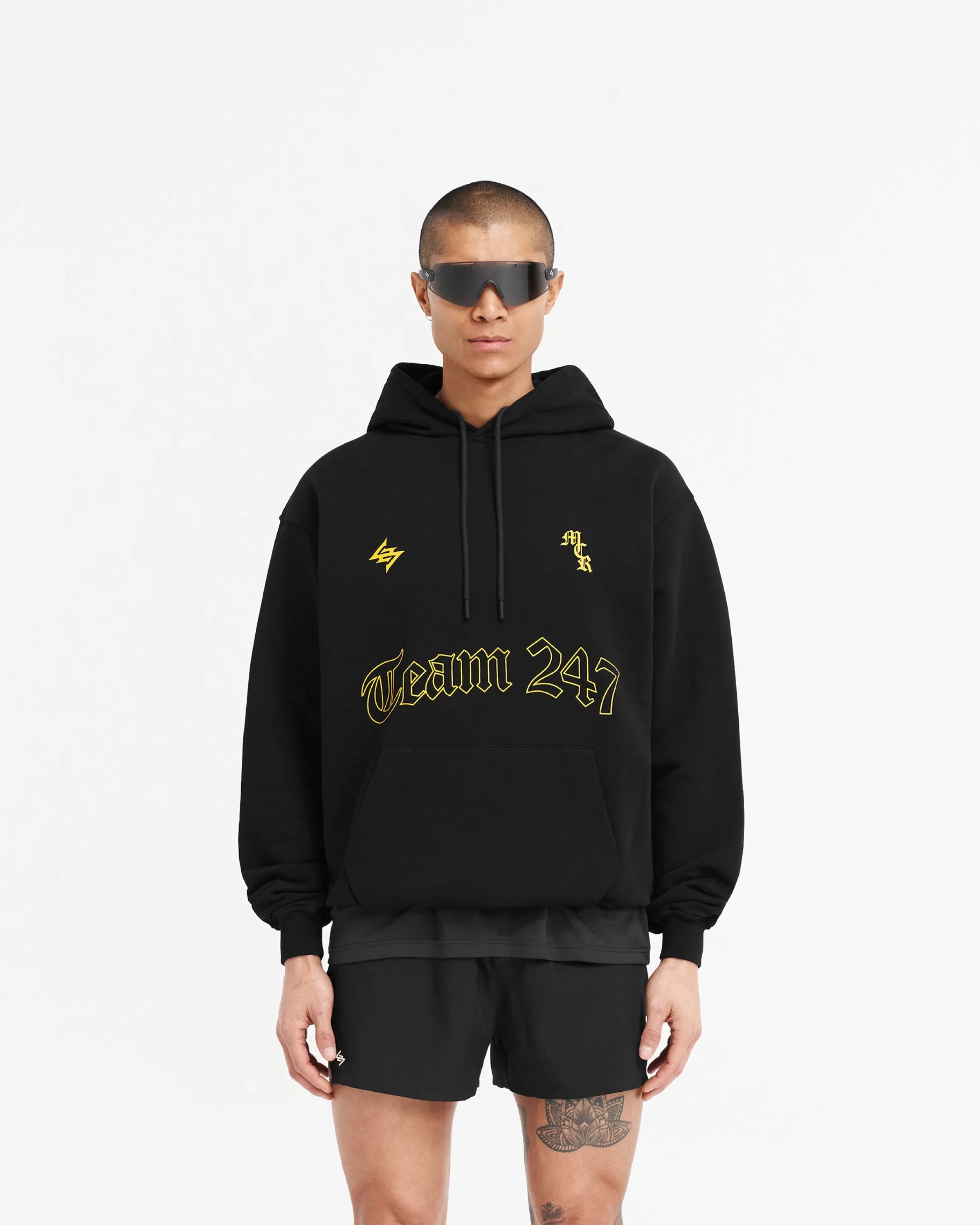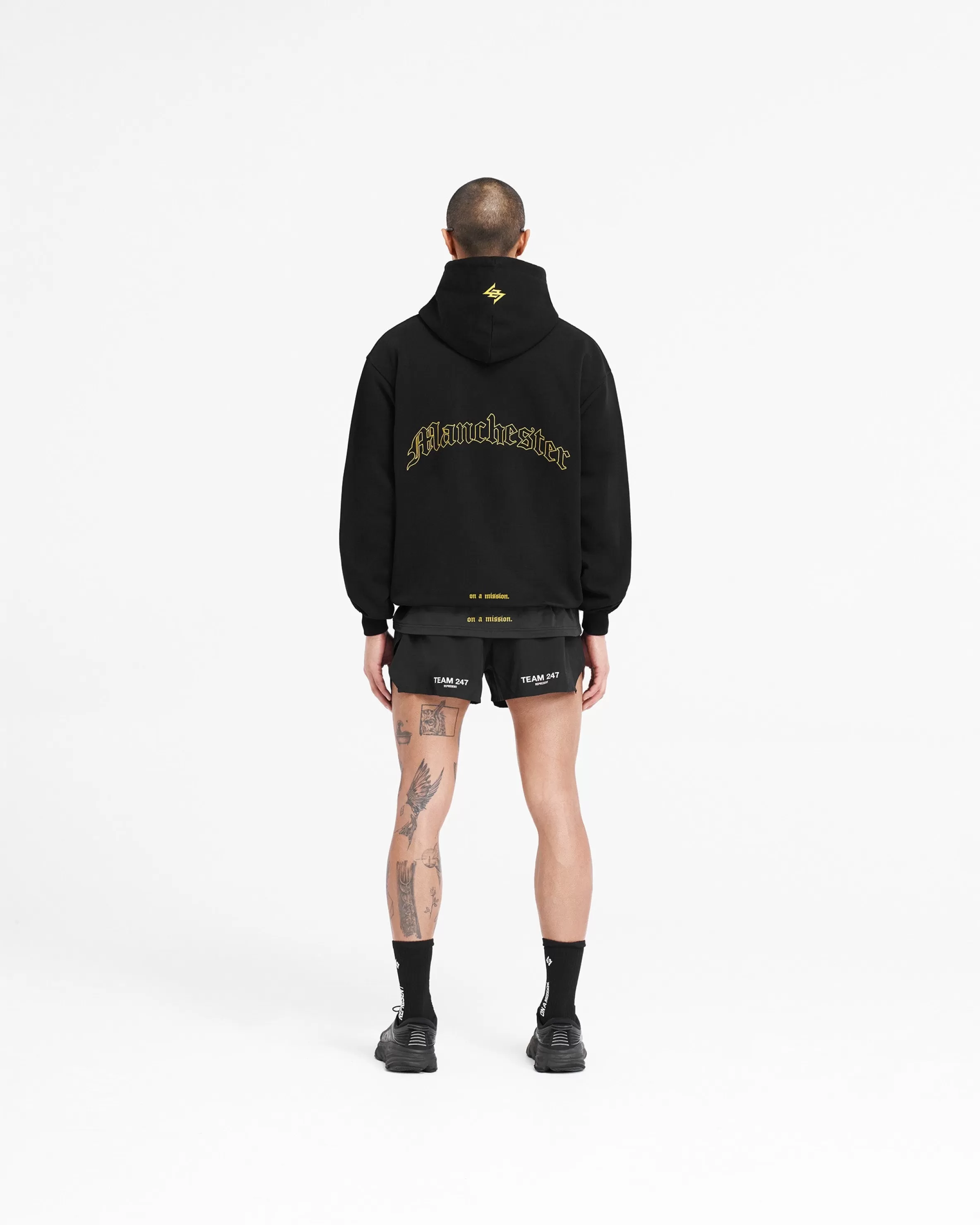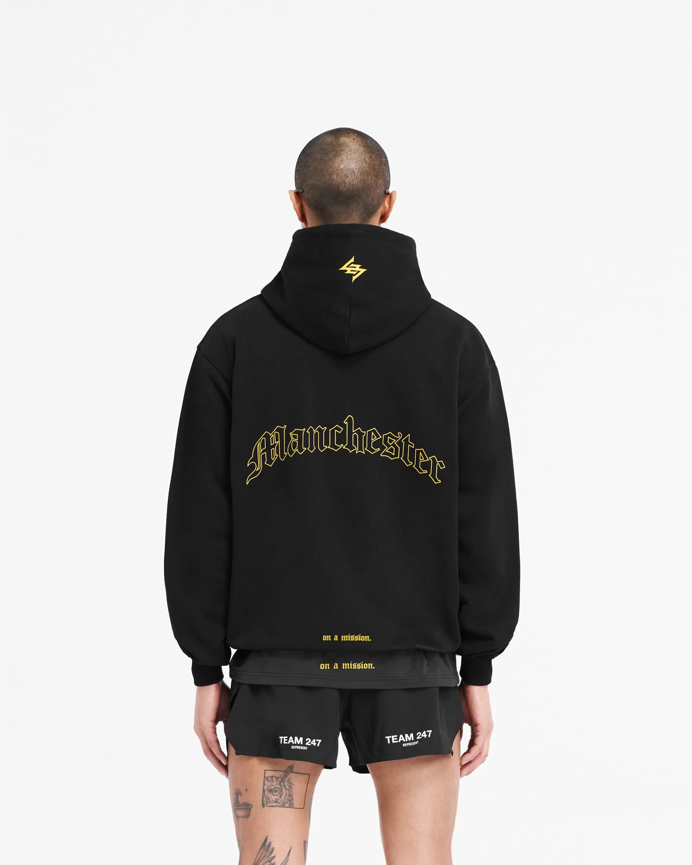 The 247 Manchester Marathon Oversized Hoodie is the ultimate fusion of form and function. Created to celebrate the 2024 Manchester Marathon, it is the perfect piece to wear on every run, on the way to the gym, or whilst priming your body to train. With an oversized fit as well as a ribbed hem and cuffs, and tonal drawcords to the hood for an adjustable fit, the hoodie provides unparalleled comfort, whatever the endeavour. The Manchester Marathon Hoodie features our screen printed gothic Team 247 graphic to the front and Manchester graphic to the back. It also carries our gothic 247 logo to the front and hood. It is finished with our small MCR graphic to the chest and On a Mission motif to the back. Black Training Hoodie Oversized Fit Ribbed Cuffs u0026amp; Hem Internal Drawstring to Hood Team 247 u0026amp; Manchester Graphics Gothic 247 Logos Model is 187cm and 76kg wearing size Medium Composition: 100% CottonProduct