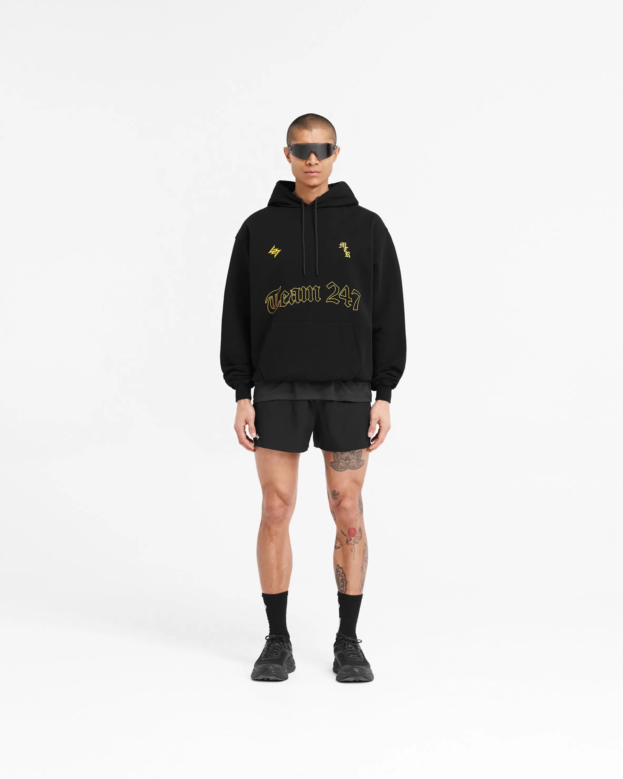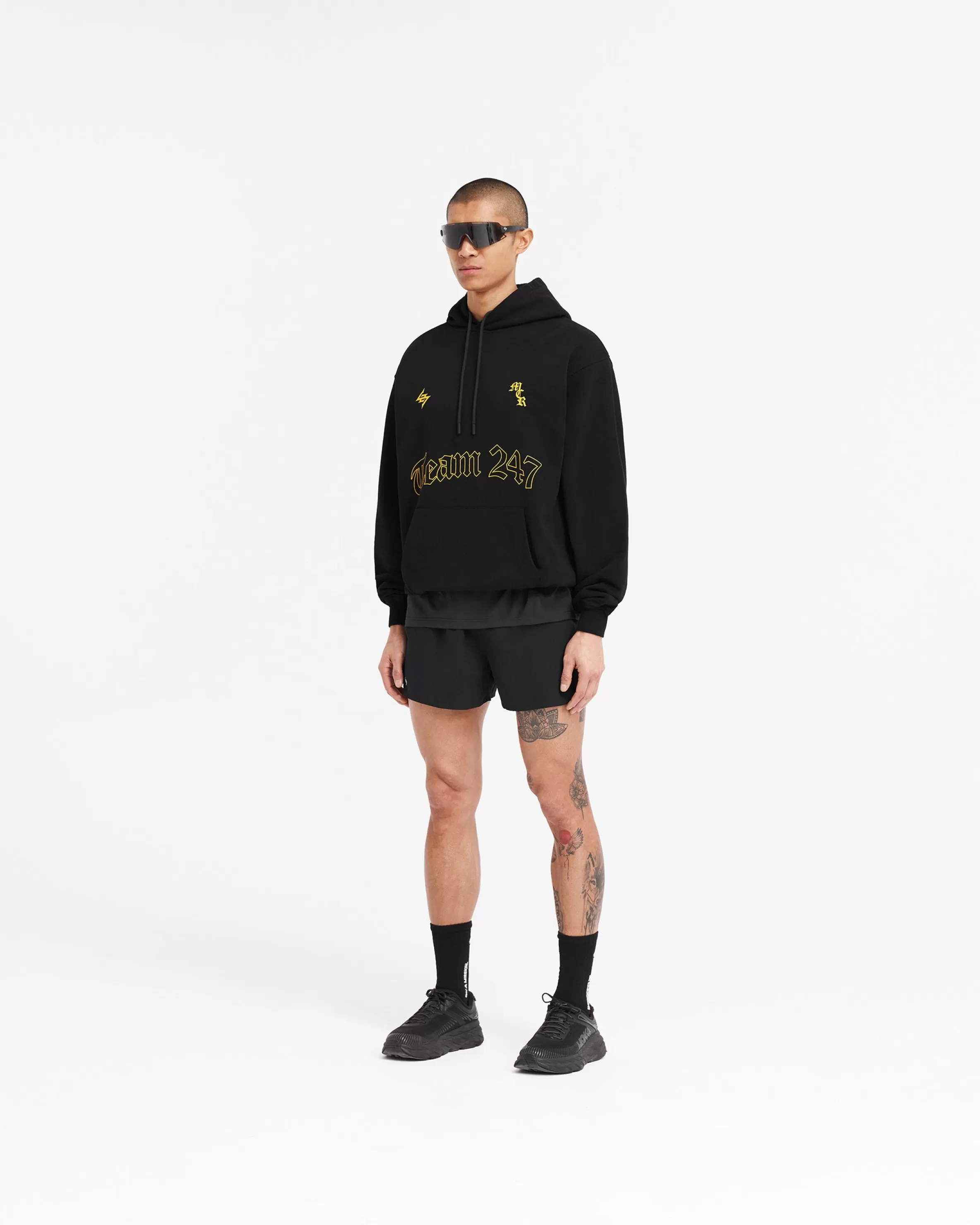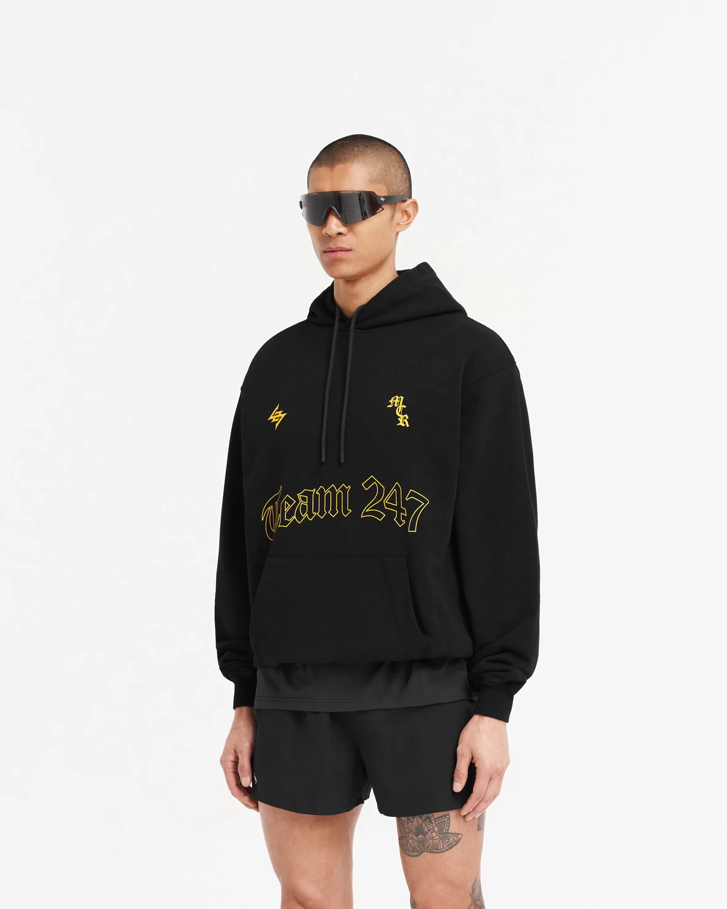 The 247 Manchester Marathon Oversized Hoodie is the ultimate fusion of form and function. Created to celebrate the 2024 Manchester Marathon, it is the perfect piece to wear on every run, on the way to the gym, or whilst priming your body to train. With an oversized fit as well as a ribbed hem and cuffs, and tonal drawcords to the hood for an adjustable fit, the hoodie provides unparalleled comfort, whatever the endeavour. The Manchester Marathon Hoodie features our screen printed gothic Team 247 graphic to the front and Manchester graphic to the back. It also carries our gothic 247 logo to the front and hood. It is finished with our small MCR graphic to the chest and On a Mission motif to the back. Black Training Hoodie Oversized Fit Ribbed Cuffs u0026amp; Hem Internal Drawstring to Hood Team 247 u0026amp; Manchester Graphics Gothic 247 Logos Model is 187cm and 76kg wearing size Medium Composition: 100% CottonProduct
