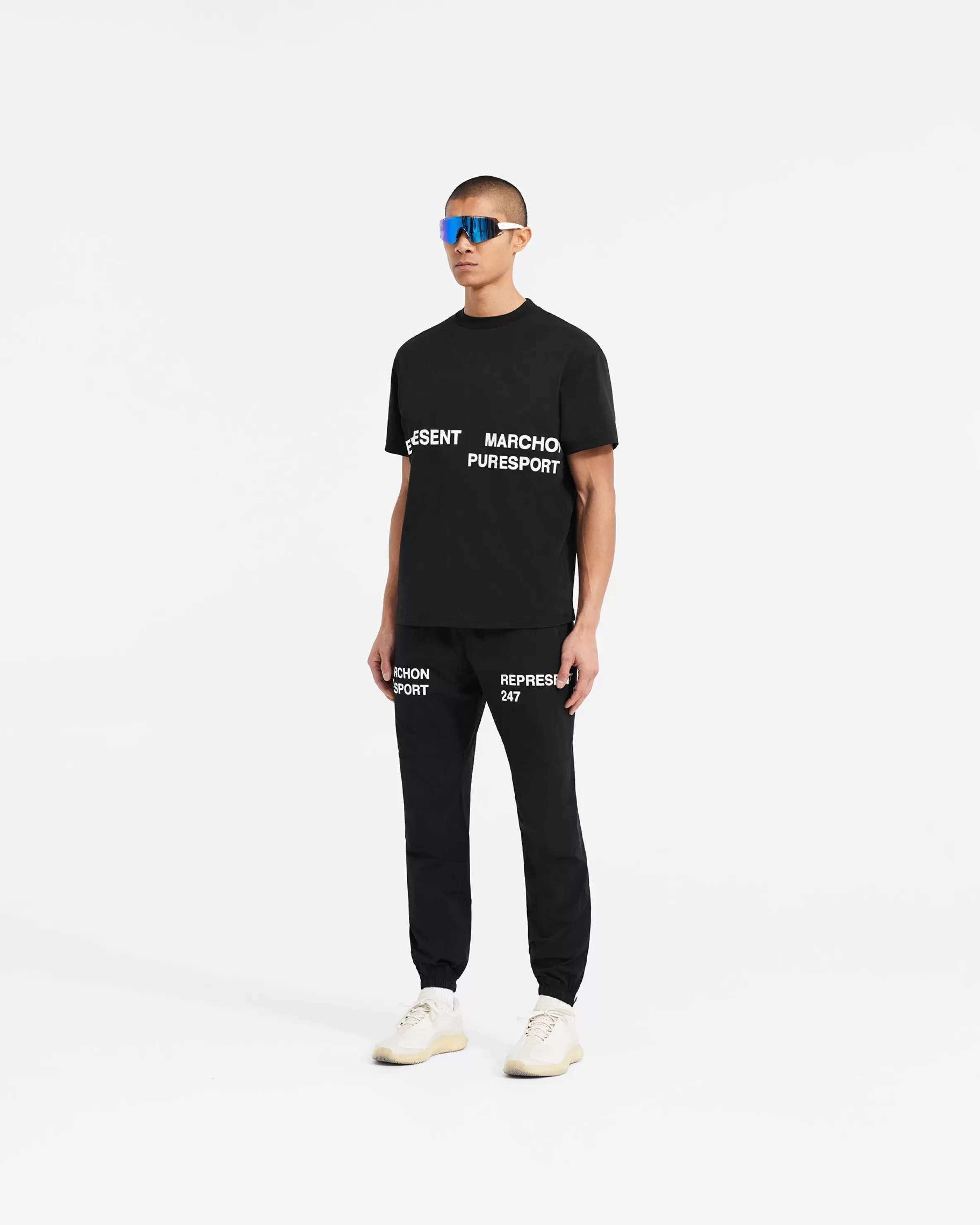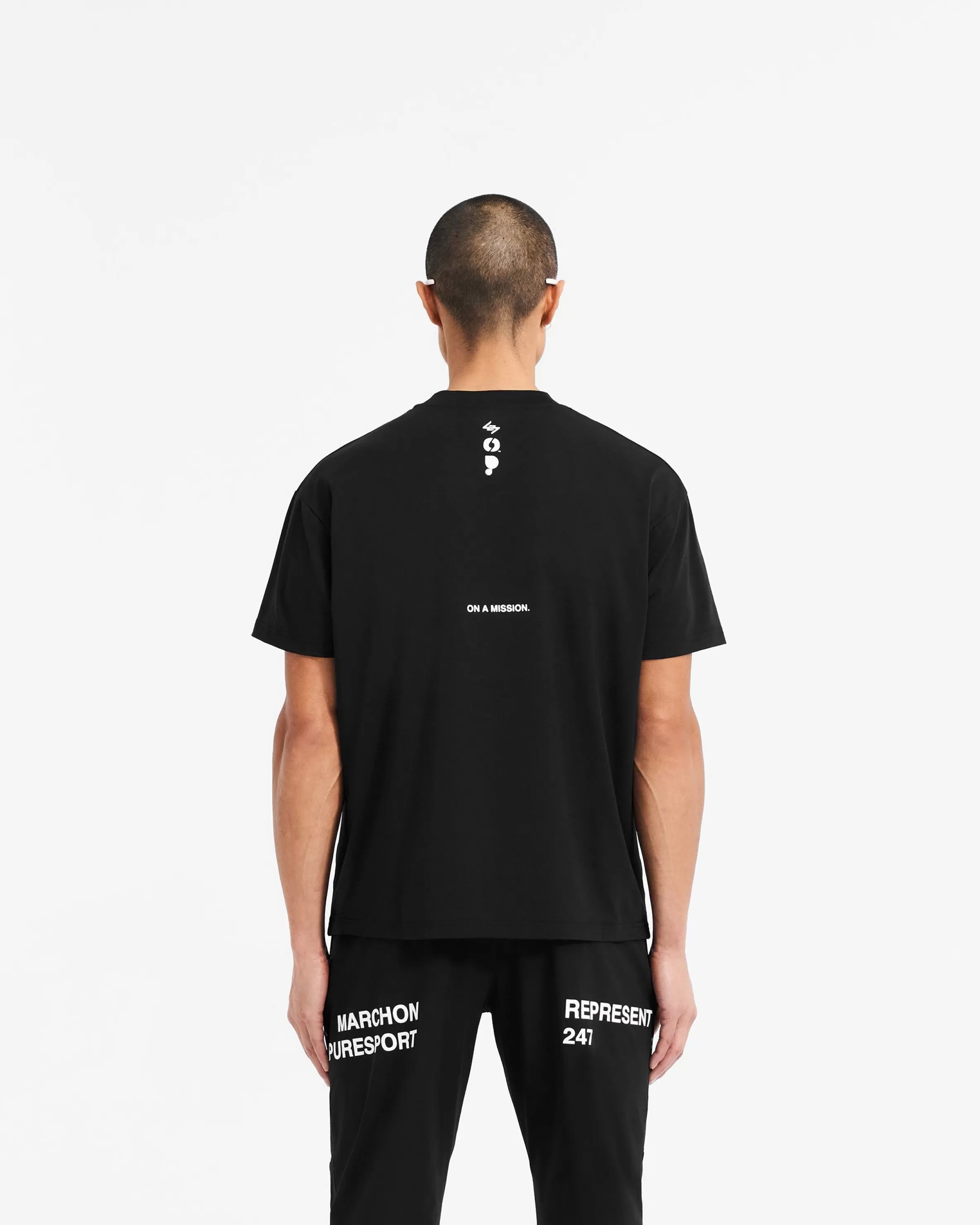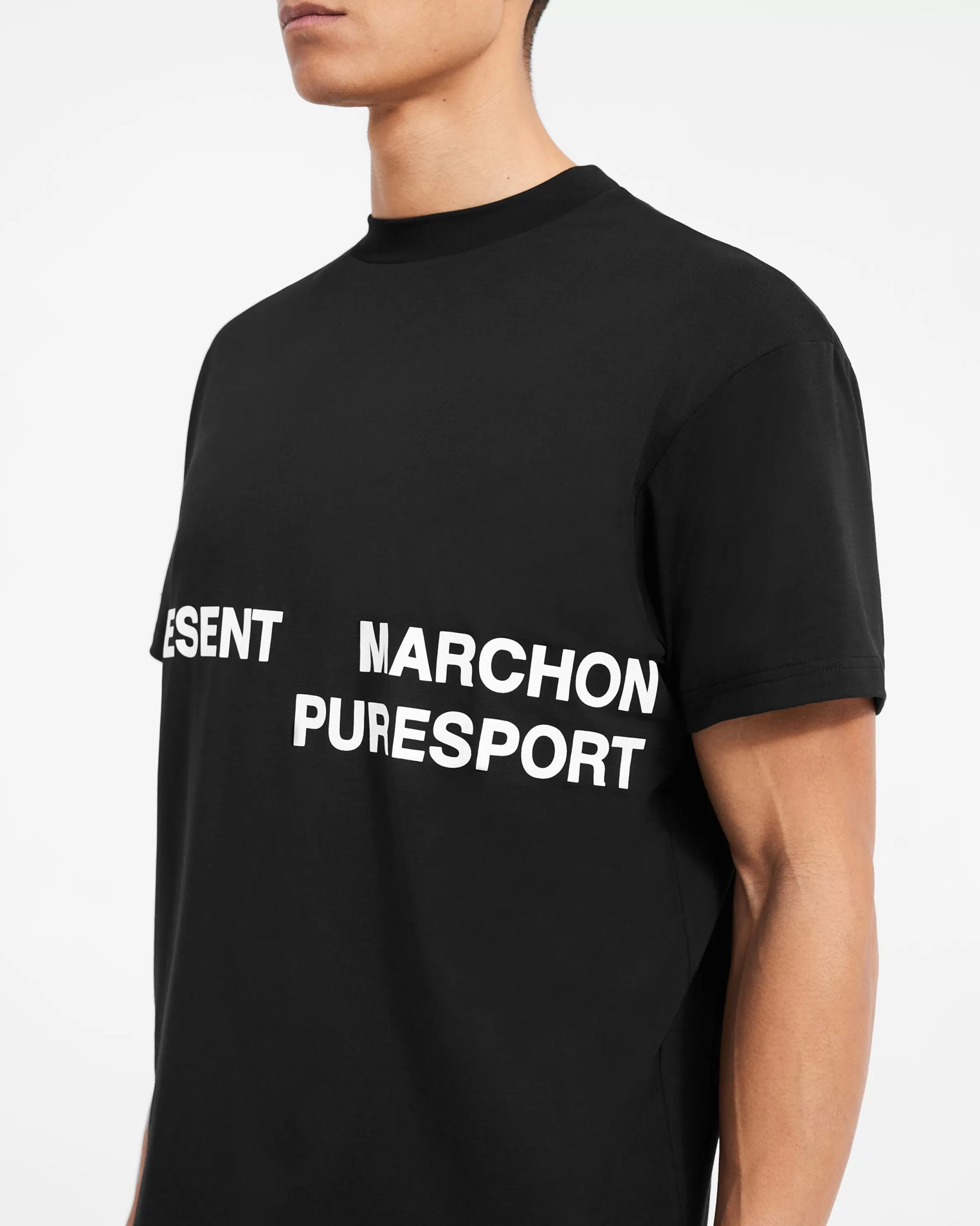 Introducing the 247 Marchon Puresport T-Shirt in Black, designed in collaboration with Marchon, the UK’s leading functional training brand, and Puresport, the global leader in wellness nutrition and CBD products. Featuring a quick dry, lightweight construction and an oversized fit with 4-way stretch, this t-shirt accommodates complete freedom of movement as you train. The breathable and cooling fabric works with your body’s thermo-regulation mechanisms to optimise your performance over time. It also has an antibacterial finish to the fabric for a box fresh feel with every wear. It features the three brands’ names to the front and logos to the back neck. Finished with our ‘On a Mission’ motif to the back. Black Gym Top Oversized Fit Lightweight u0026amp; Breathable Quick Drying u0026amp; Antibacterial 247, Marchon u0026amp; Puresport Branding Composition: 82% Polyester, 11% Lyocell, 7% ElastaneProduct