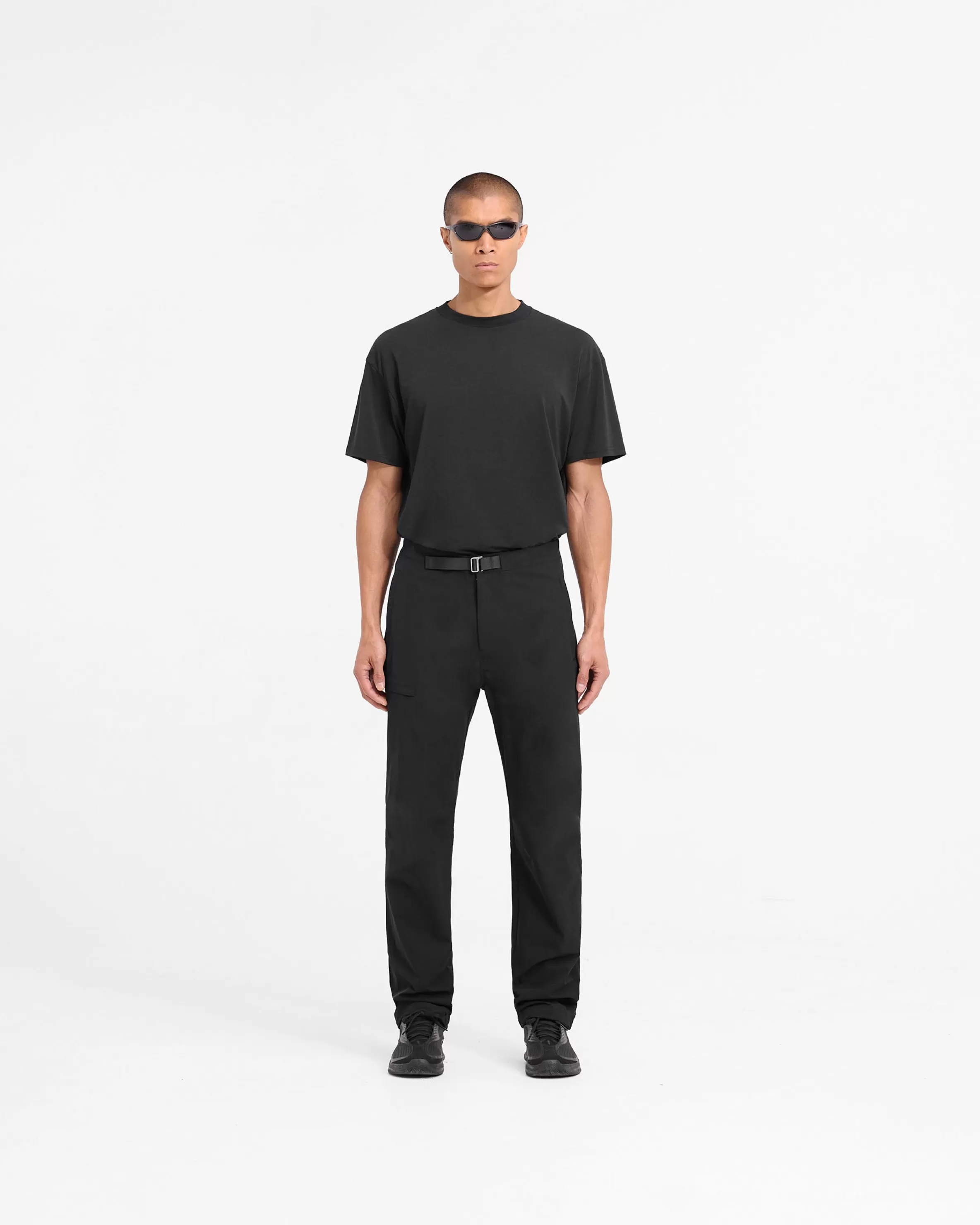 The 247 Mission Pant is built for every scenario. Based on our original Mission Pant from 2021, it is crafted from a stretch nylon fabric, taking inspiration from hiking gear, with a durable construction, zip pockets with auto-lockable branded zipheads and a built in belt buckle to the fixed waistband system. The pants have a straight leg fit with knee articulation details for a fit which affords everyday movement. They are finished with bungee cord adjusters to the cuffs. Mission Pant Straight Leg Fixed Waistband Built in Belt with Buckle Fly Zip Zip Pockets Knee Articulation Details Bungee Cord Adjusters to Cuffs. Composition: 90% Nylon, 10% Elastane Model is 187cm and 76kg wearing size MProduct