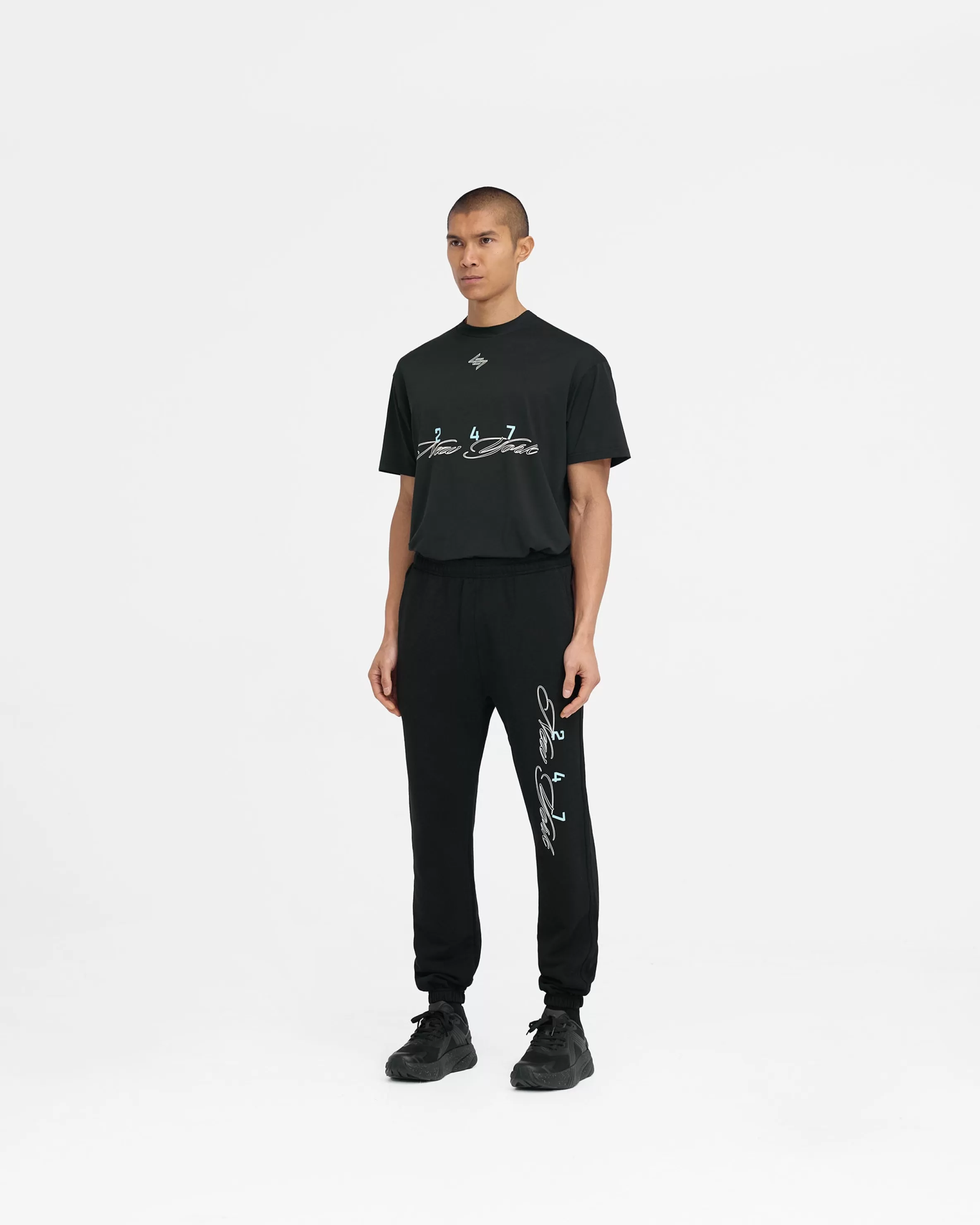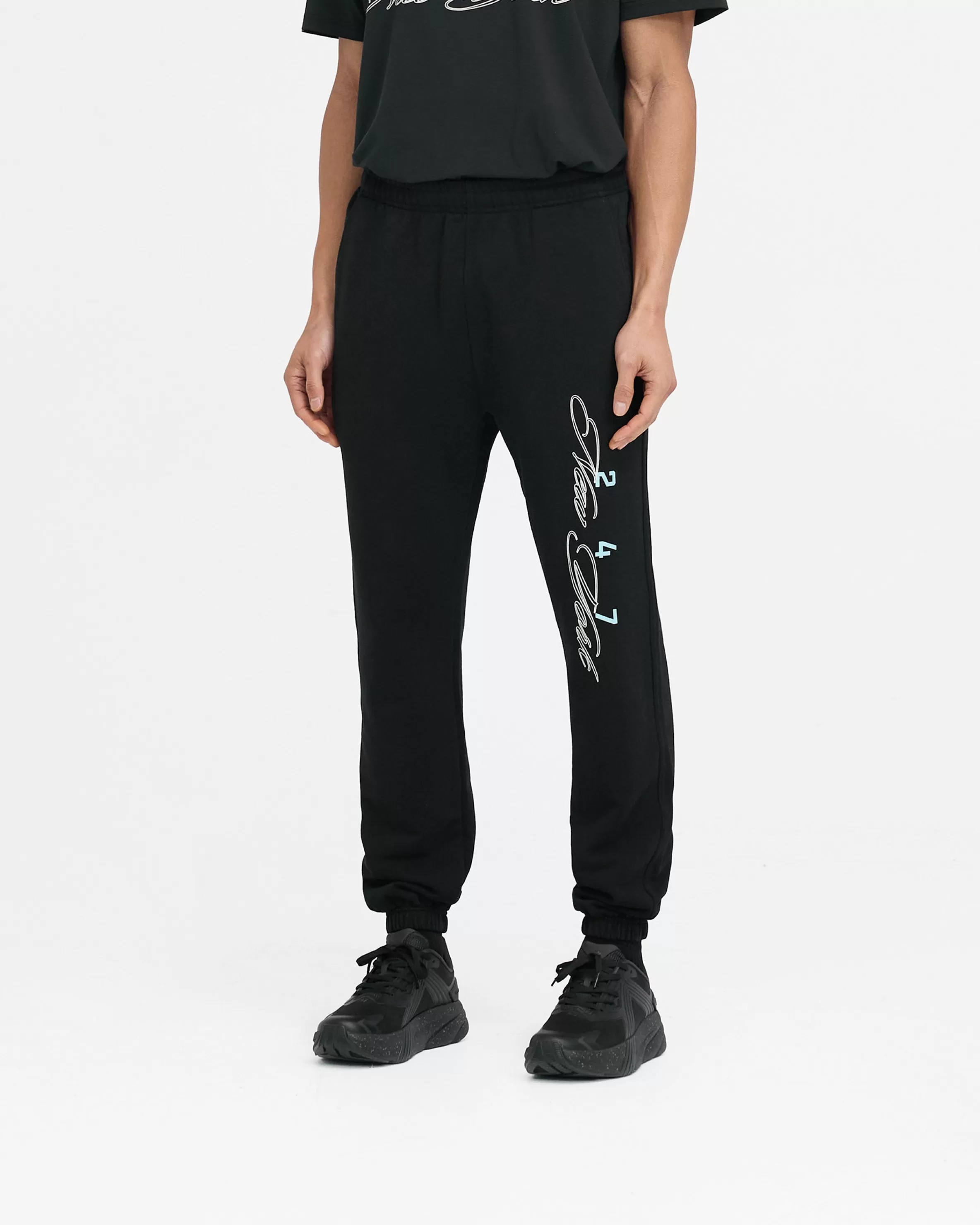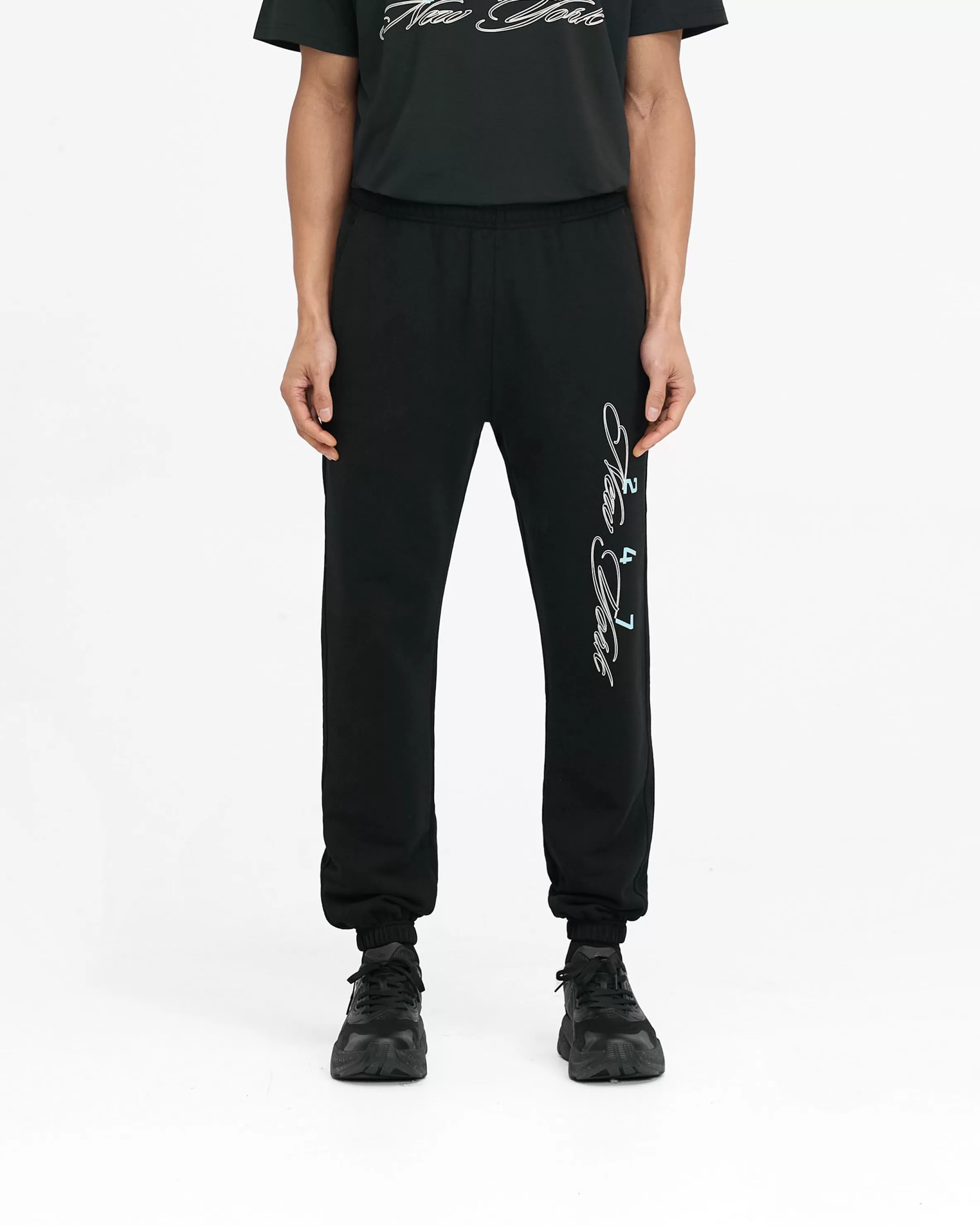 Introducing the 247 New York Sweatpants in Black, a luxury pair of training joggers with elasticated cuffs and internal …