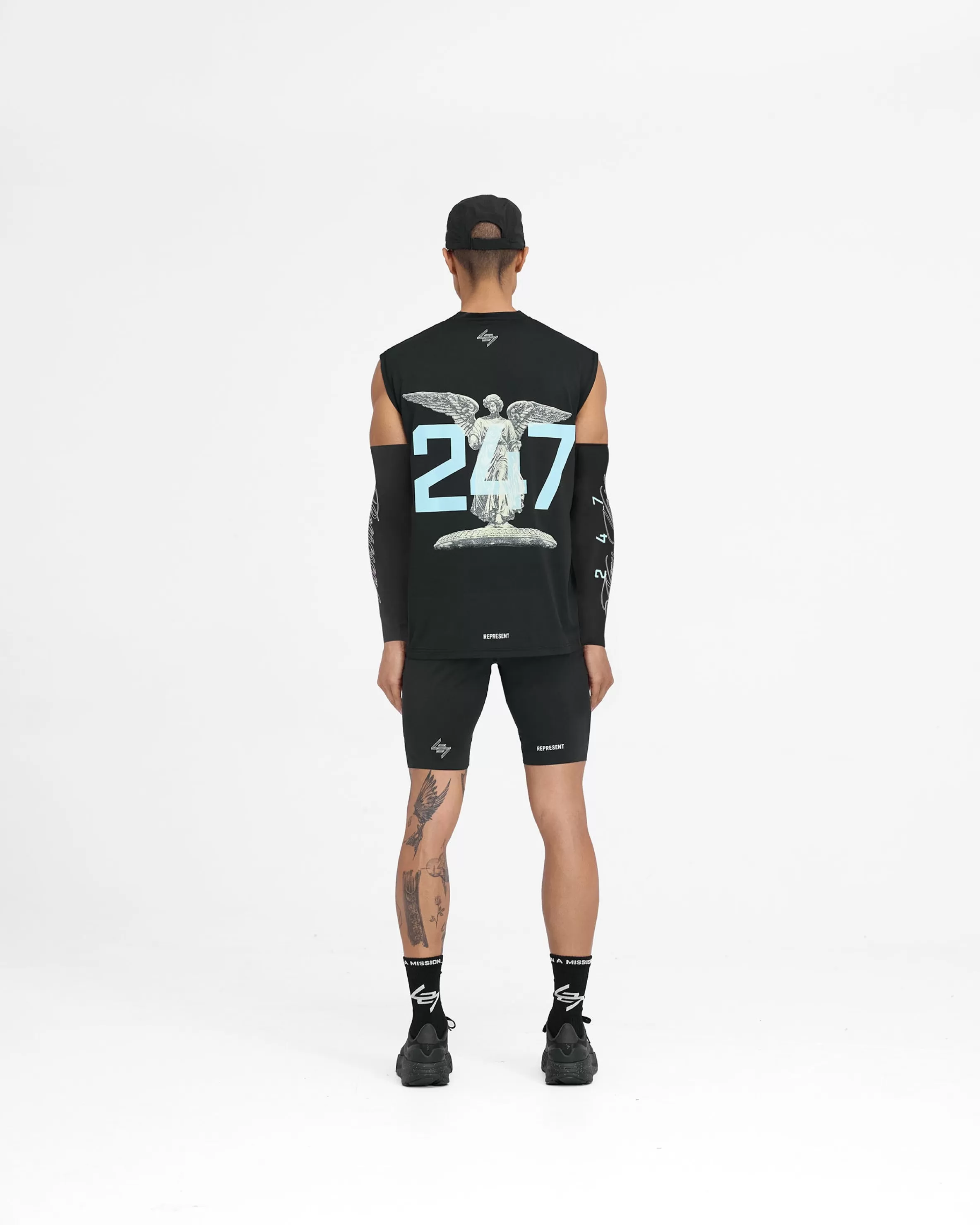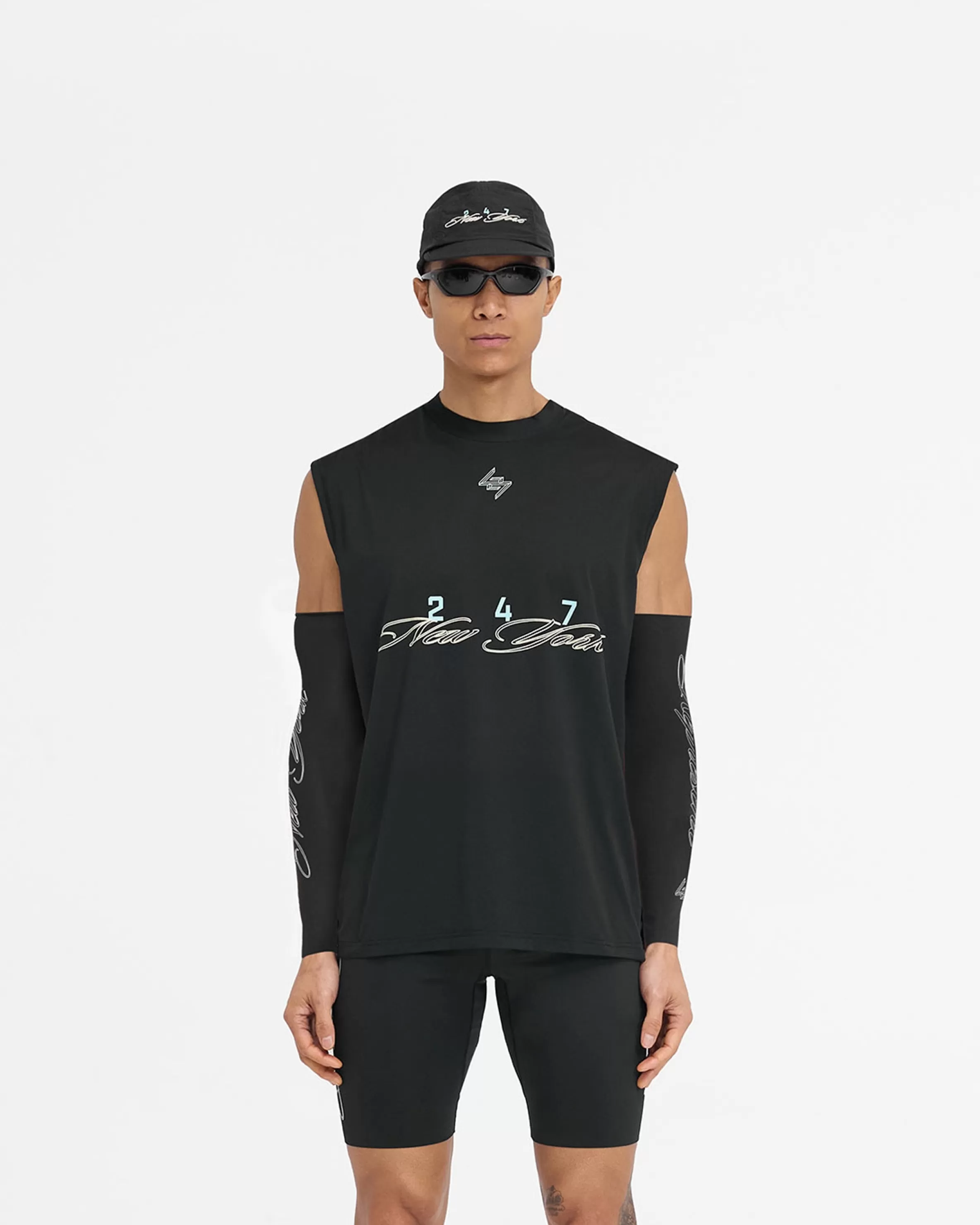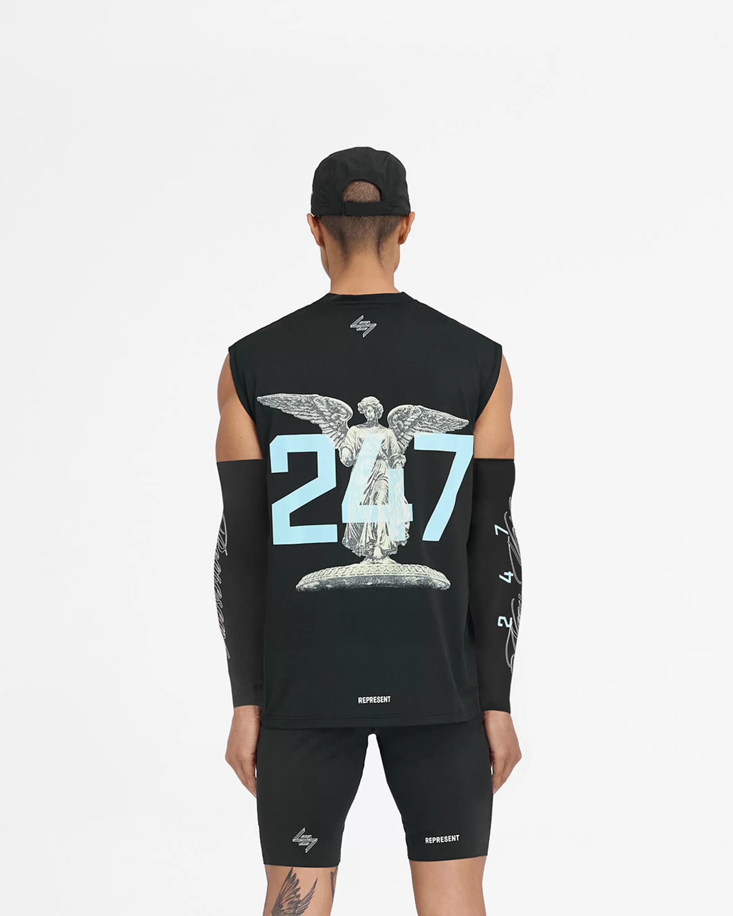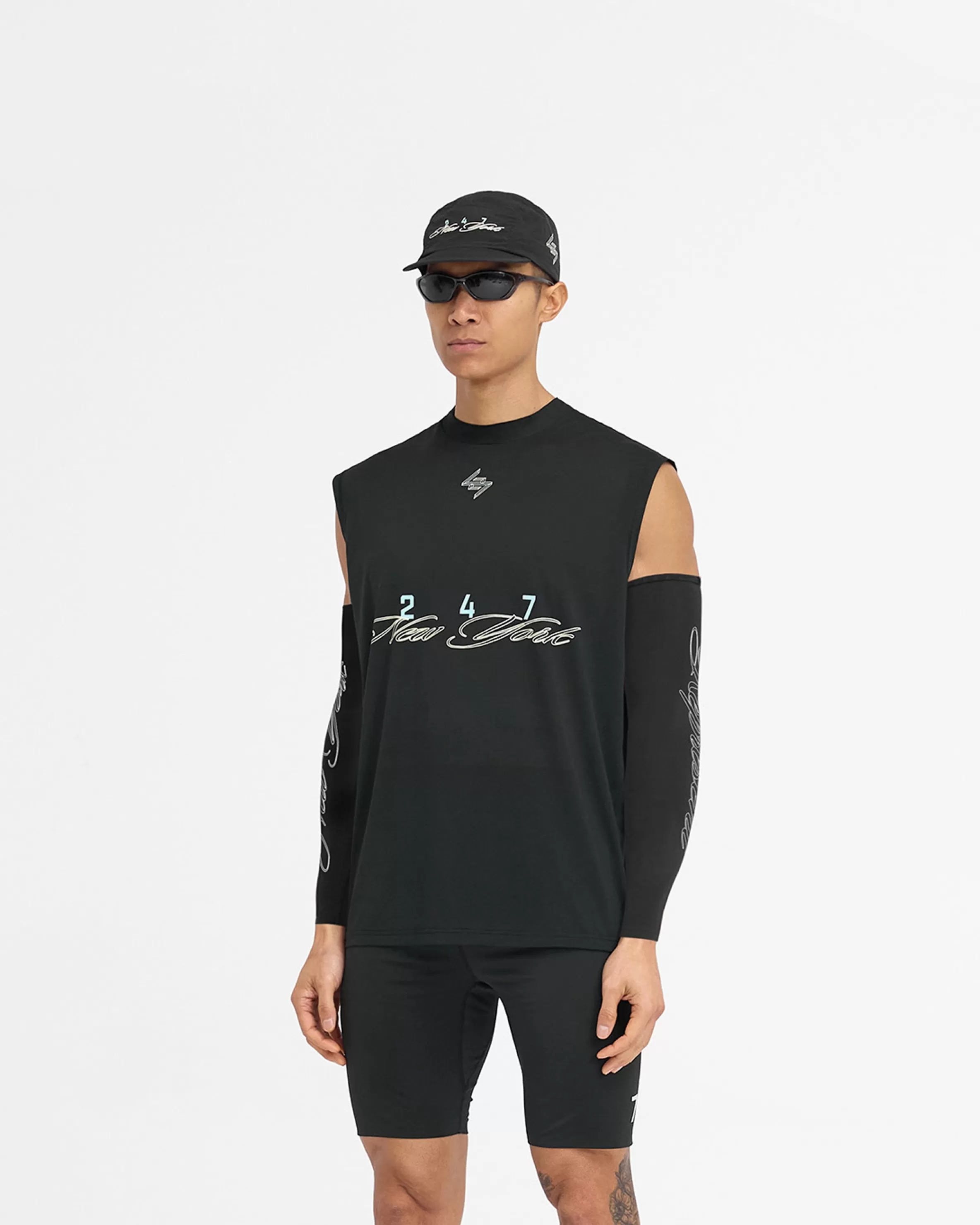 Introducing the 247 New York Tank in Black. Featuring a quick dry, lightweight compact mesh construction and an oversized fit with 4-way stretch, this running tank top offers complete freedom of movement as you train or run.The breathable and cooling fabric works with your body’s thermo-regulation mechanisms to optimise your performance over time. Sweat wicking technology absorbs and evenly re-distributes moisture into the air as you run, helping maintain freshness till the second your workout ends. It also offers UV protection for coverage in every climate.The 247 New York Tank Top features the iconic New York City statue, ‘The Angel of the Waters’, to the back with the 247 numbers, as well as the 247 logo and New York script to the front. 247 New York Tank Top Black Compact Mesh Fabric Oversized Fit Freshfeel Cooling Technology Lightweight u0026amp; Breathable UV Protection Moisture Wicking Quick Drying Self Fabric Collar ‘Angel of the Waters’ Graphic Composition: 86% Polyester, 14% Elastane Model is 187cm and 76kg wearing size MProduct