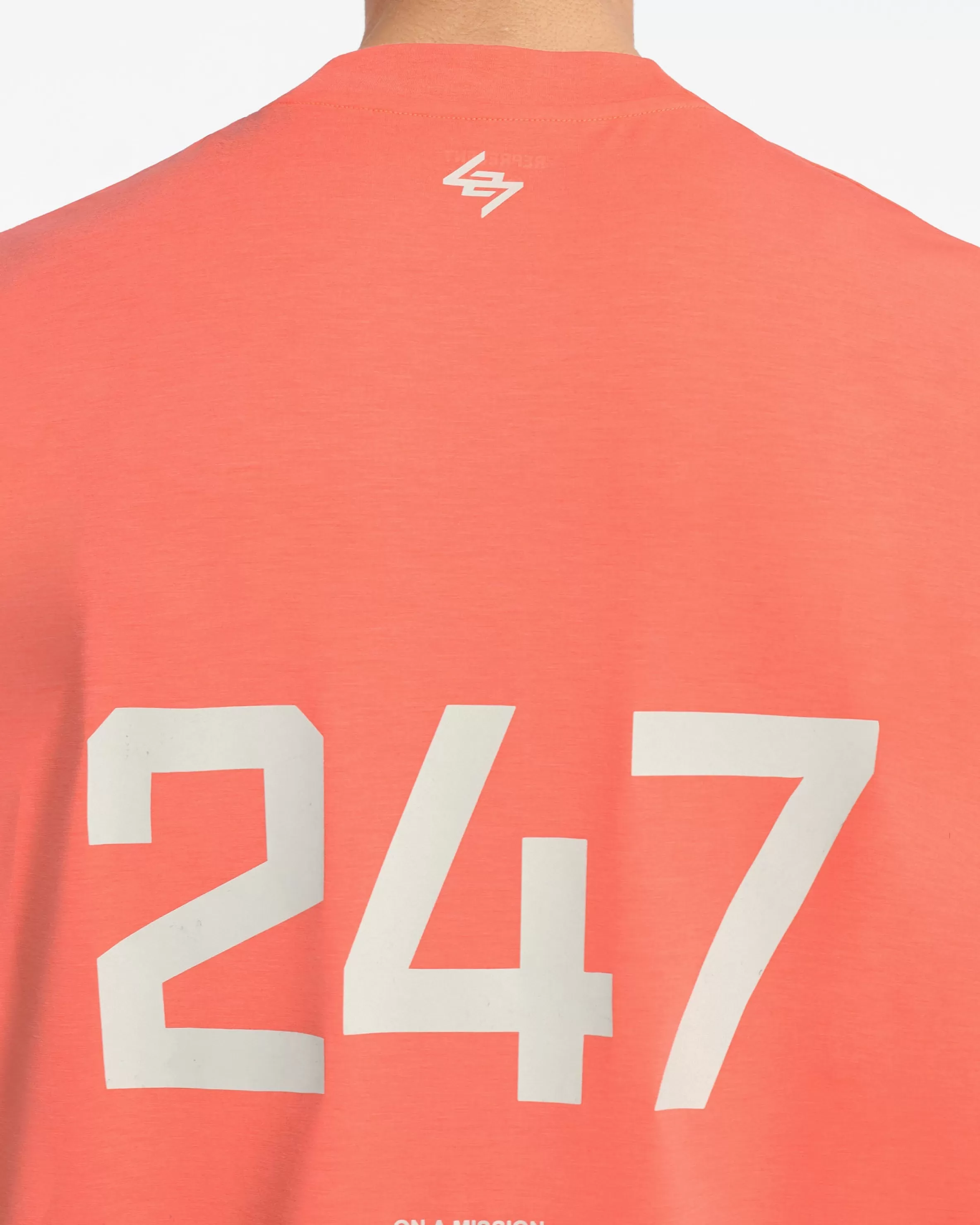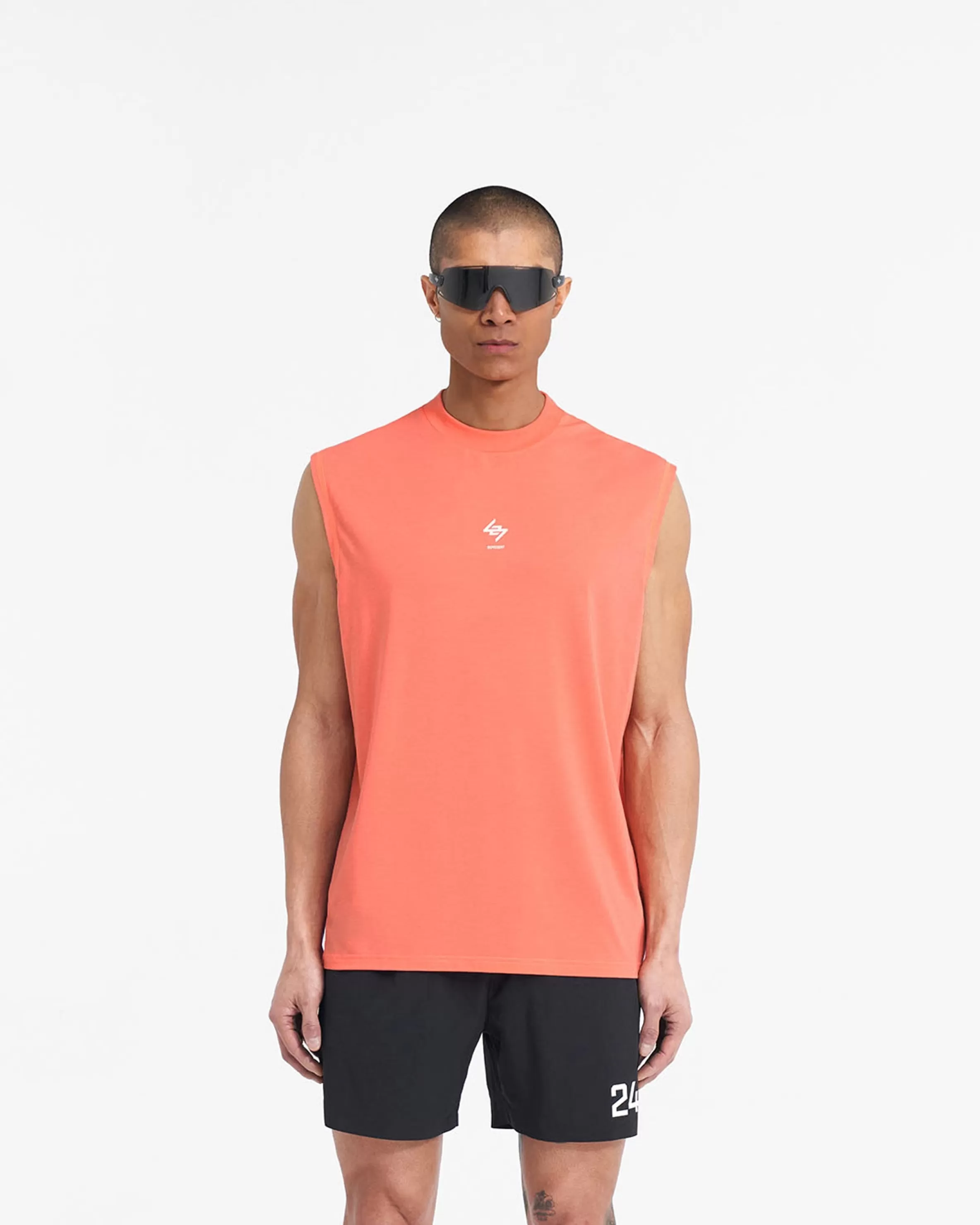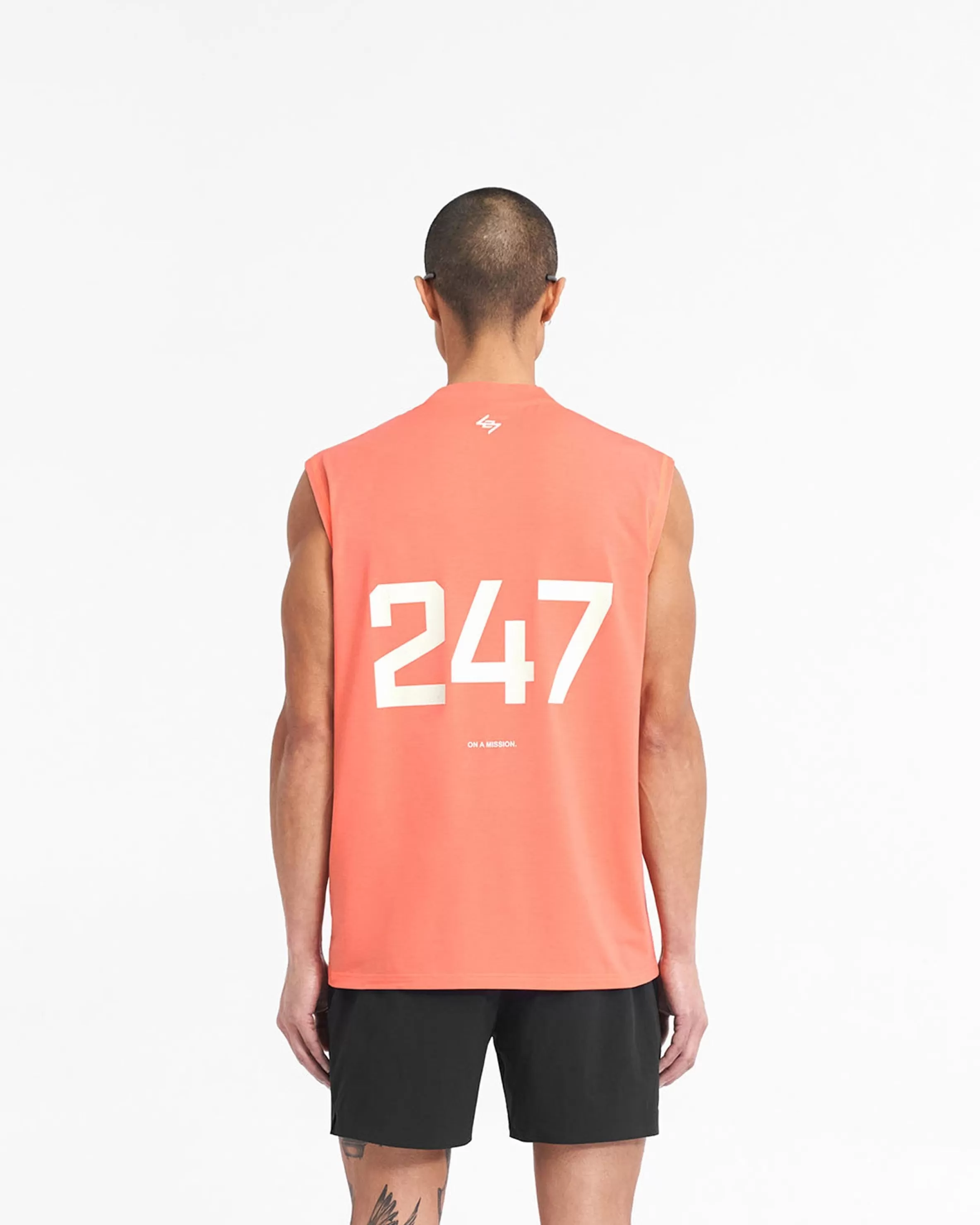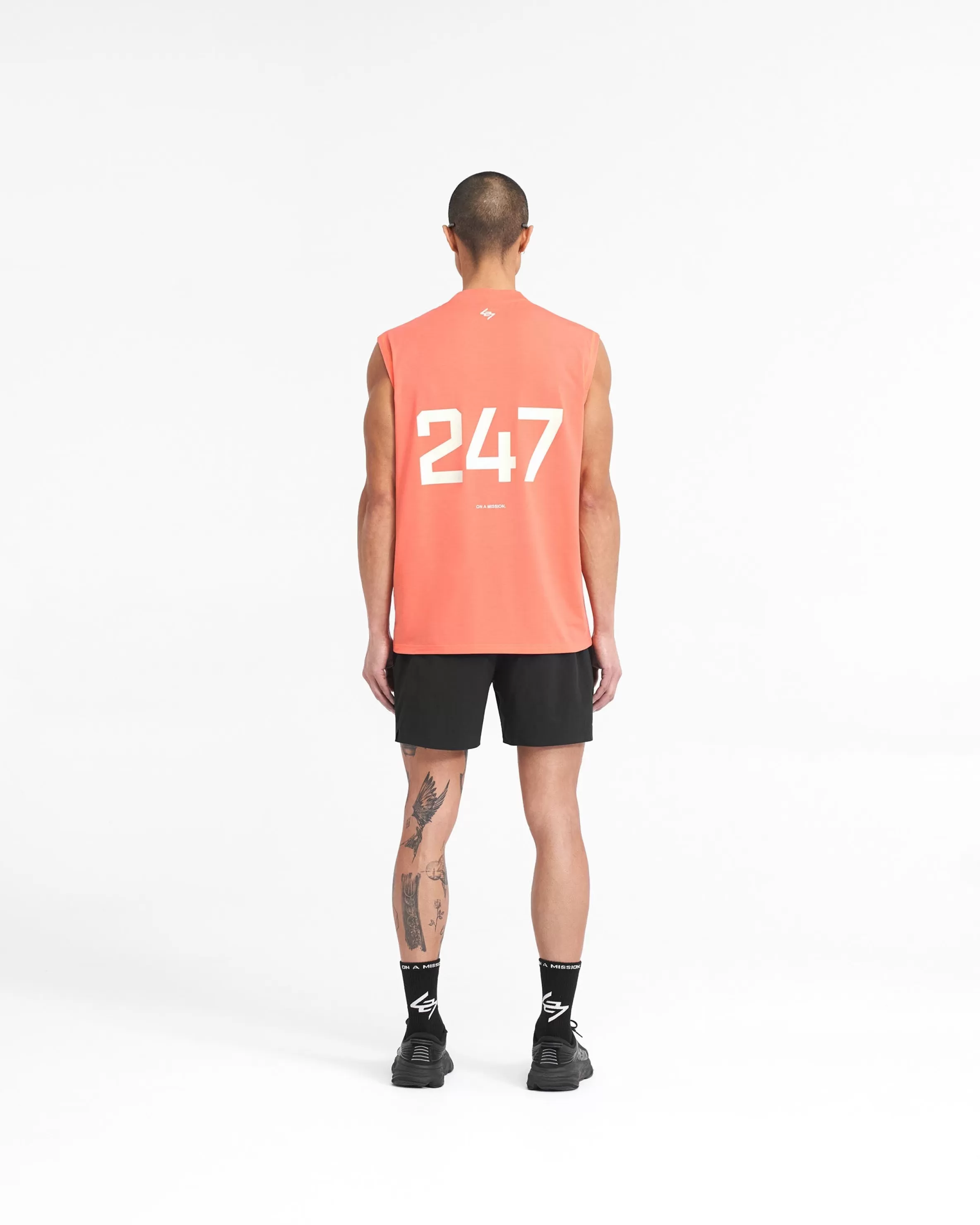 The 247 Oversized Tank in Coral is the ultimate tank top for any of your training sessions. Crafted from a premium technical fabric blend with 4-way stretch, the tank accommodates complete freedom of movement, whilst the breathable nature of the fabric works alongside your body’s thermo-regulation mechanisms to help maintain your performance over time. It also has an antibacterial finish to the fabric for a box fresh feel with every wear. The tank is finished with our 247 Number Branding u0026amp; On a Mission to the back, and 247 Logo to the front. This piece is considered an easy care fabric, meaning that it resists pilling, wrinkling and static cling. It is suitable for everyday use or high intensity workouts. It also dries 4x faster than cotton. Coral Oversized Tank Top Drirelease_® _Fabric Lightweight u0026amp; Breathable 4-Way Stretch 247 Number Branding 247 Logo Quick Drying u0026amp; Antibacterial Moisture Wicking Model is 187cm and 76kg wearing size Medium Composition: 82% Polyester, 11% Lyocell, 7% ElastaneProduct