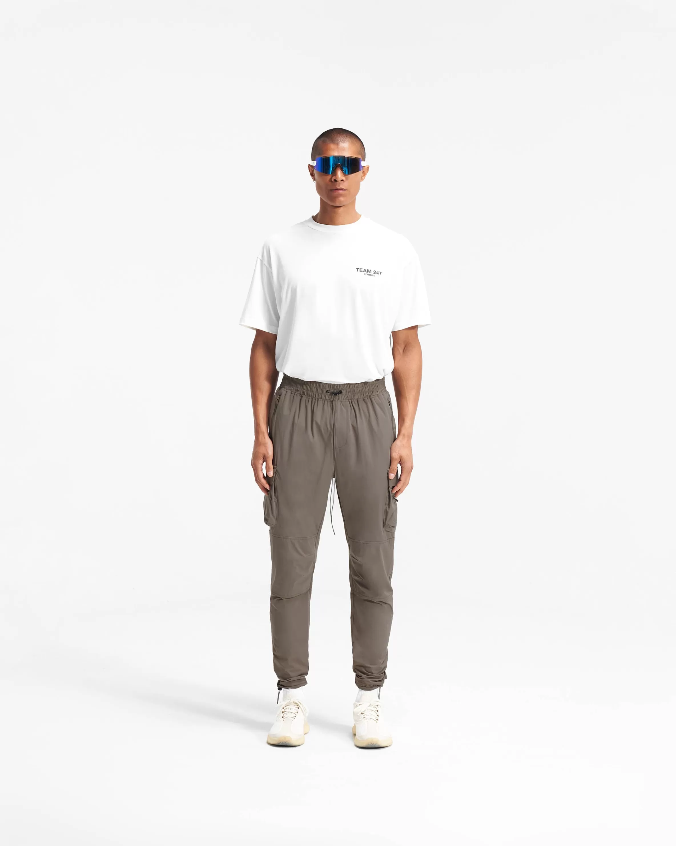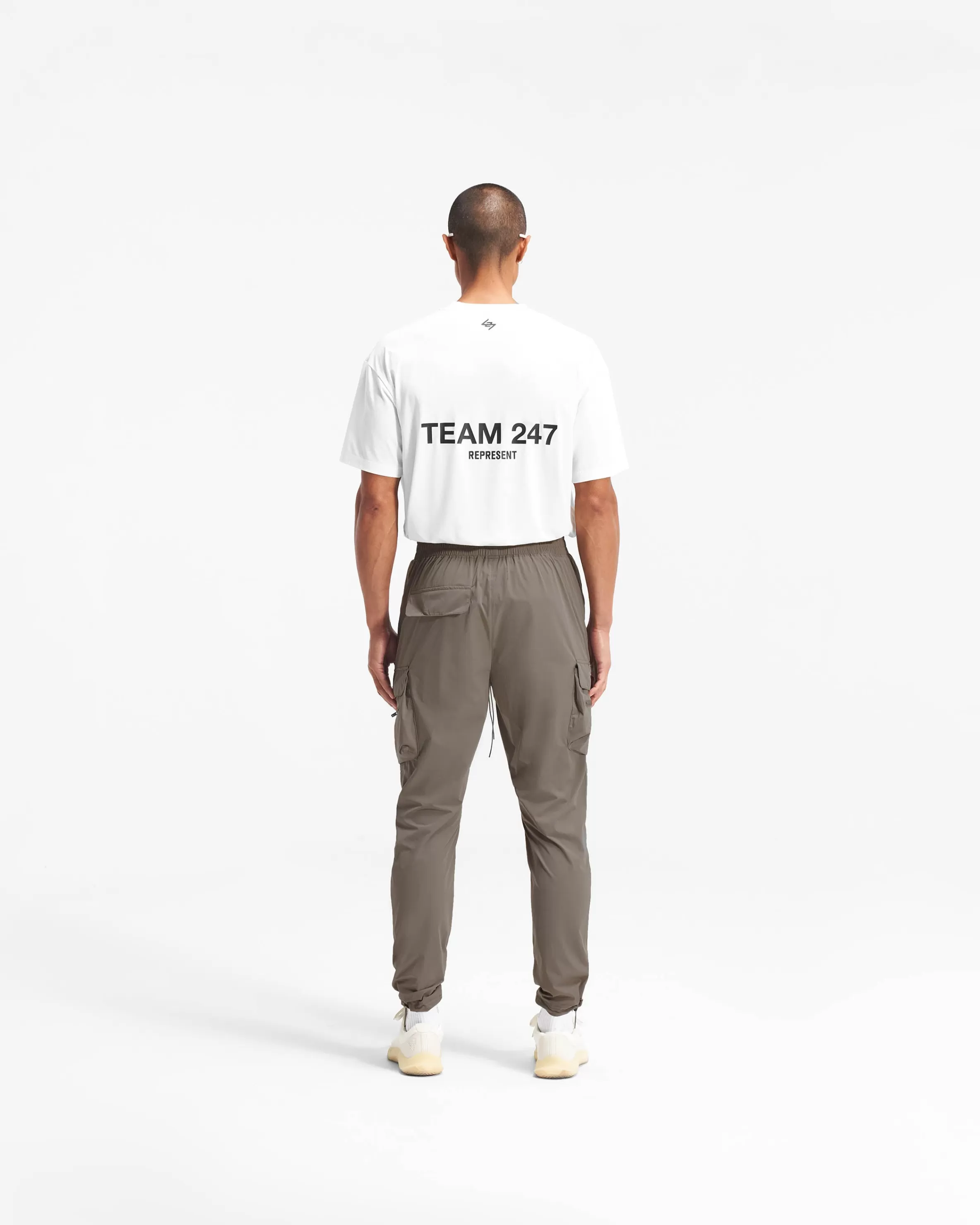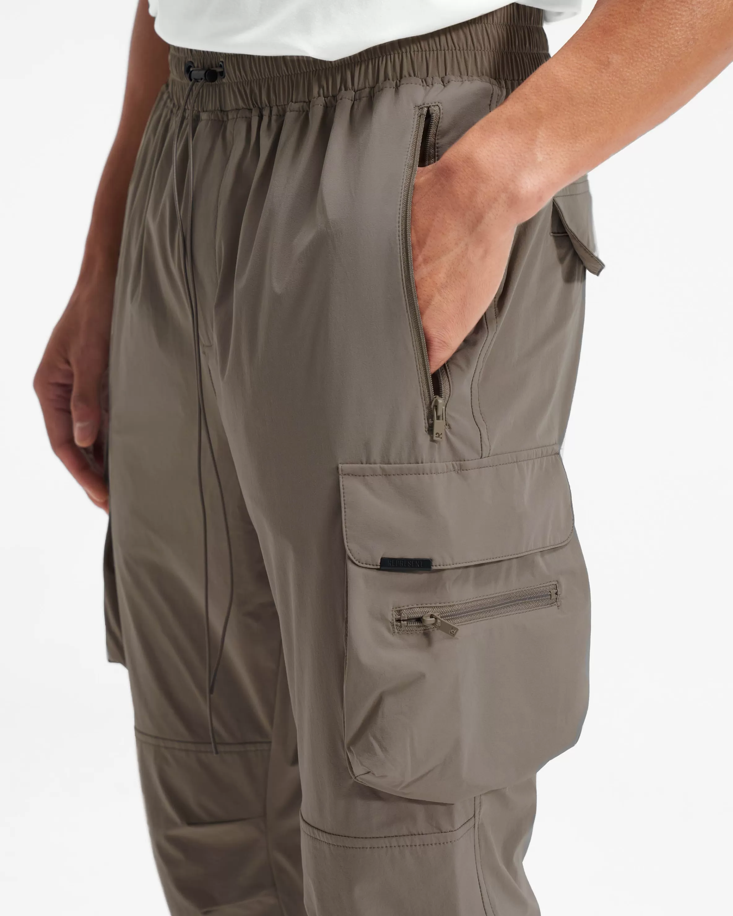 Every day. Every scenario. Every purpose in mind. The 247 collection merges the Represent aesthetics into functionality for multiple reasons. A slim leg cargo pant in a matte Olive, technical 4 way stretch fabric. Cargo pockets on the side and zip pockets to the front. Elasticated drawstring waist and adjustable hem. Mens combat trousers Cargo leg pockets Faux fly Zip side pockets Water repellent XS Fits: 26-29 waist.S Fits: 28-31 waist.M Fits: 30-33 waist.L Fits: 33-35 waist.XL Fits: 34-38 waist. Model is 185cm height and 80kg wearing size Medium Composition: 87% Nylon, 13% Elastane body. Product