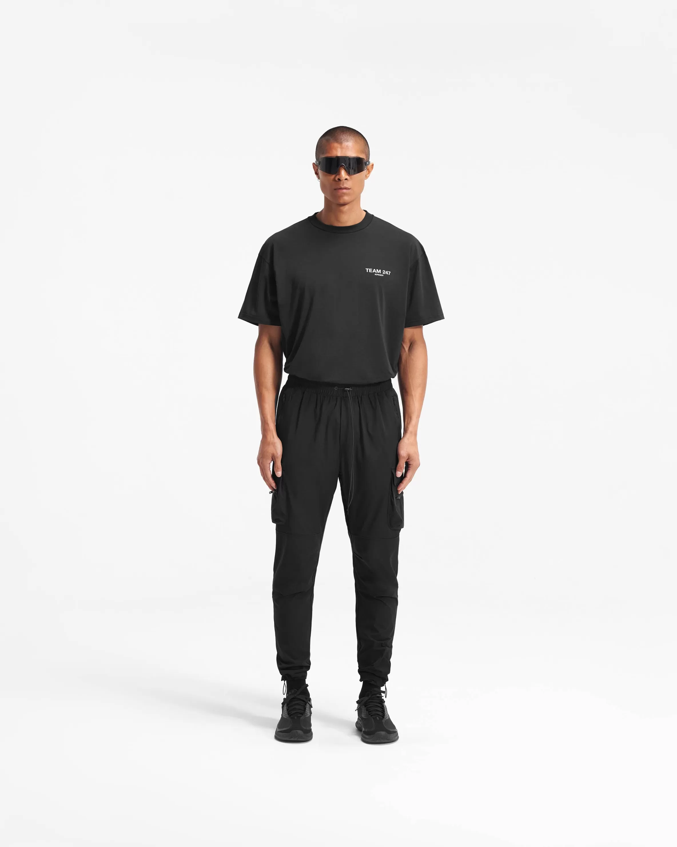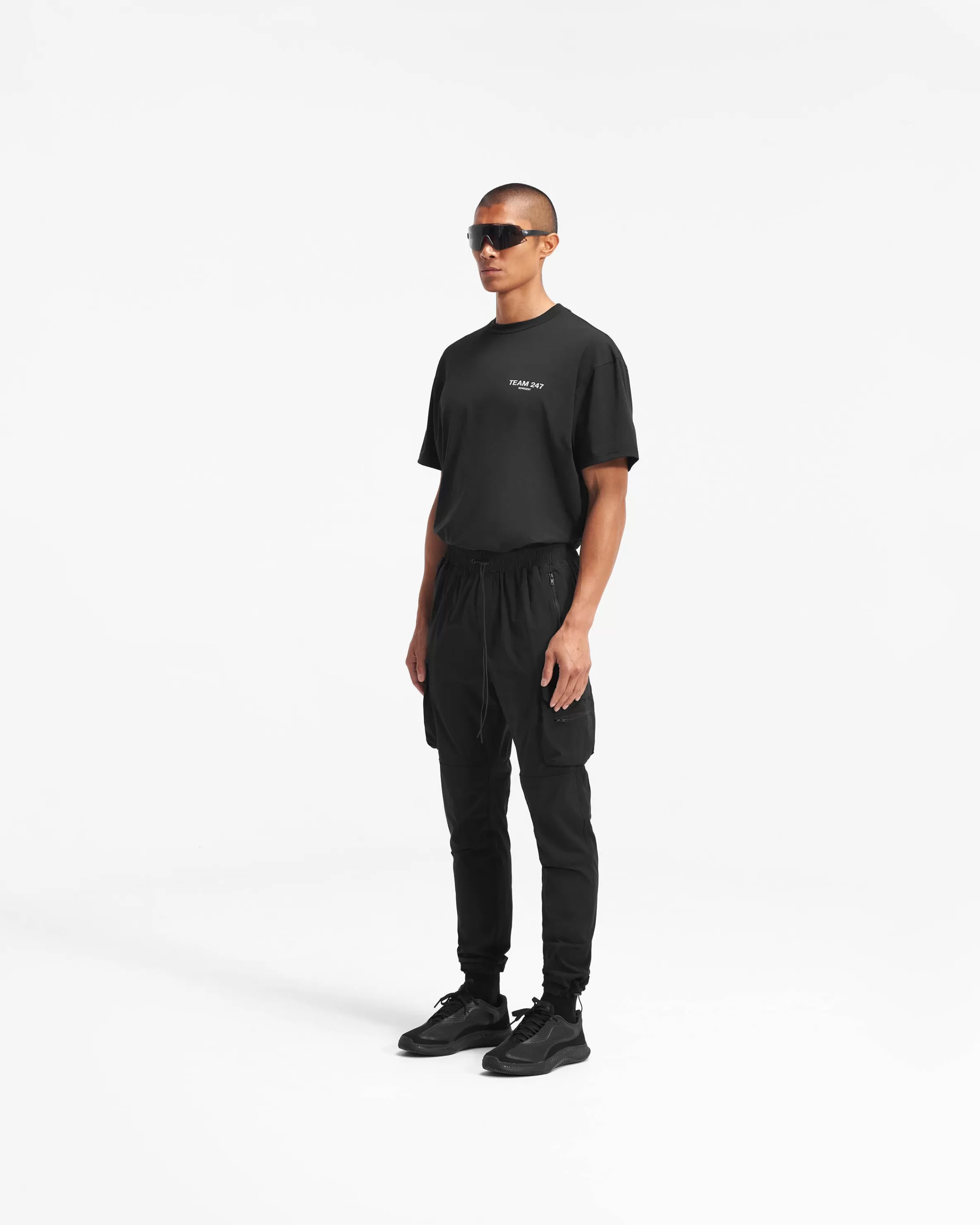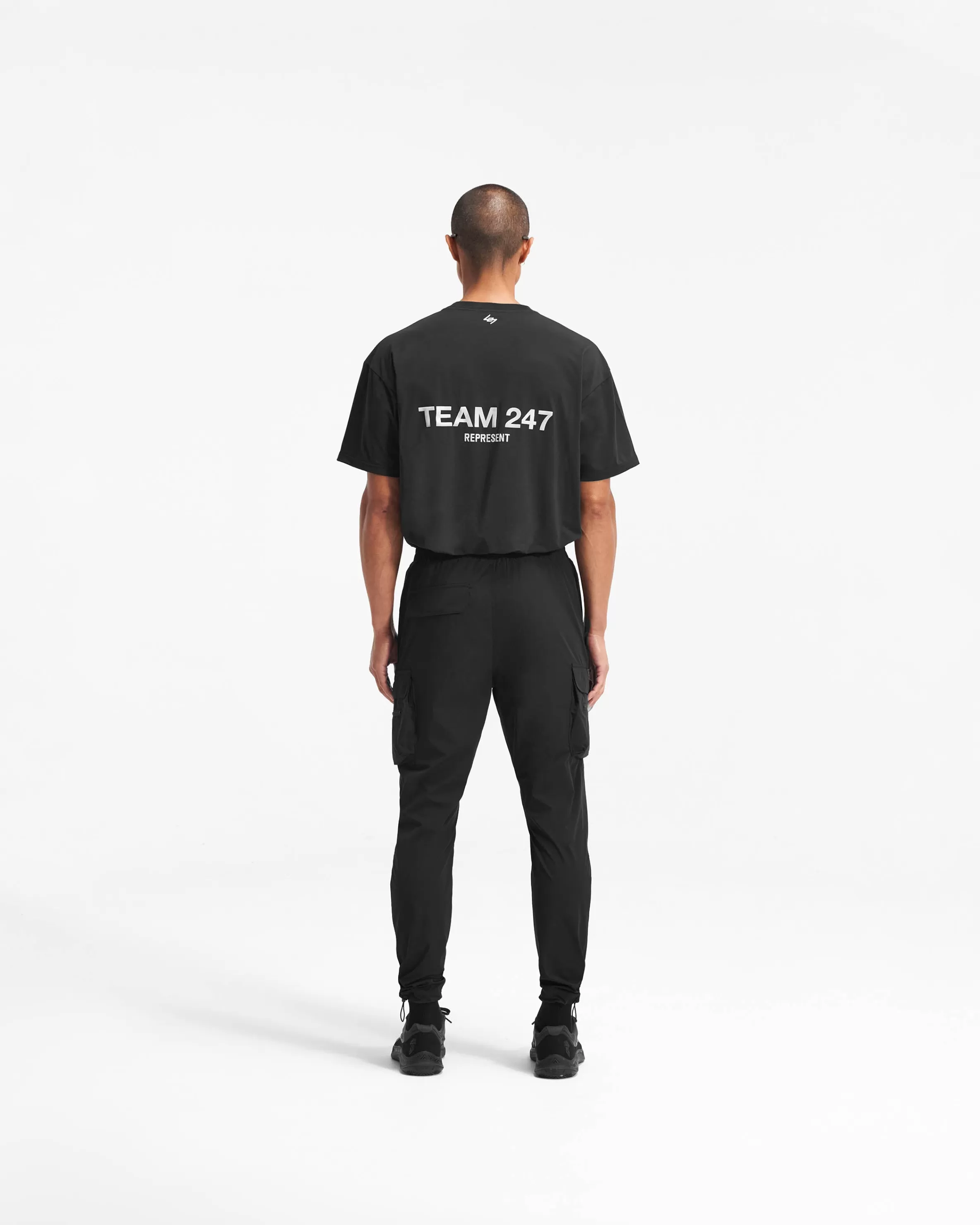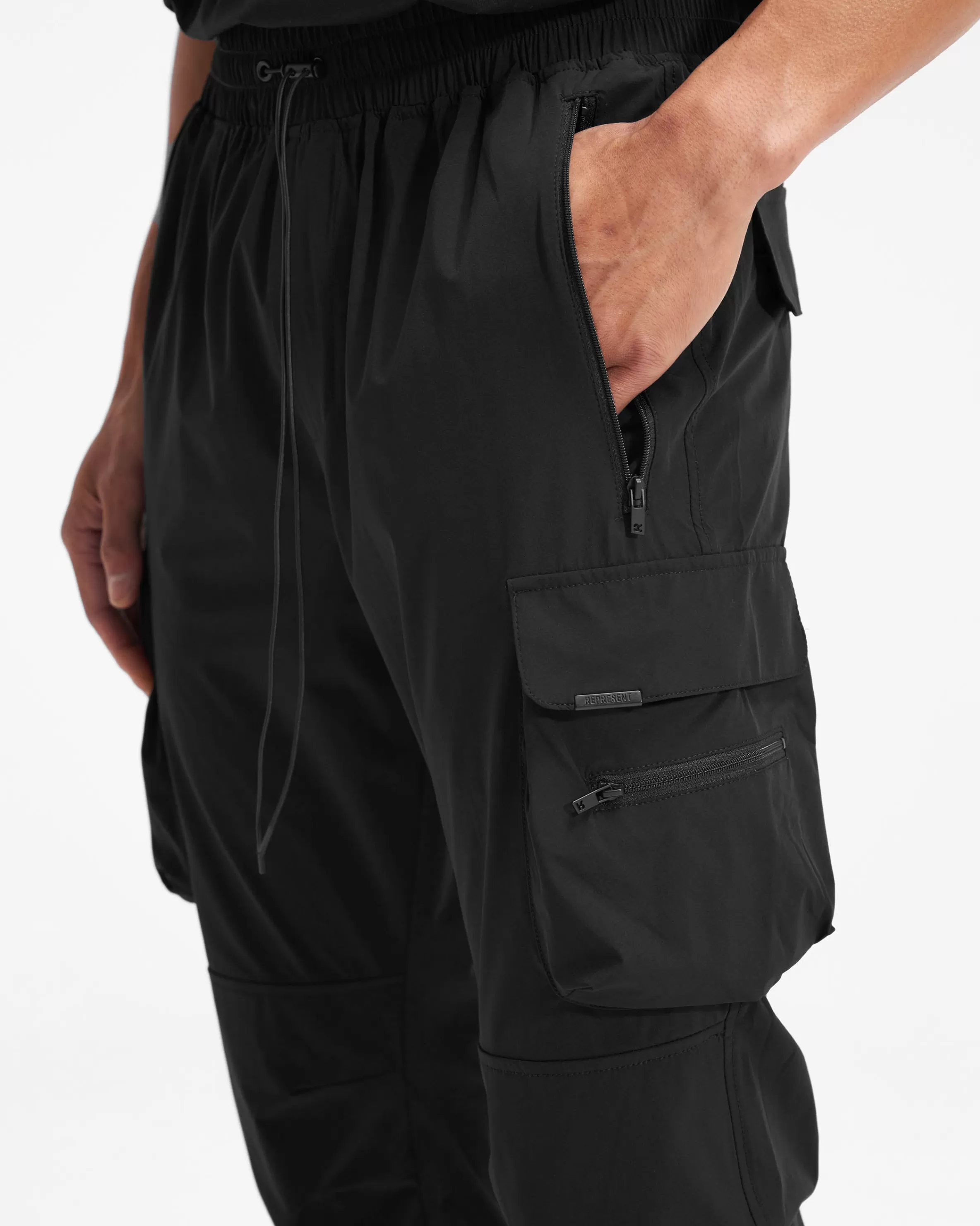 Every day. Every scenario. Every purpose in mind. The 247 collection merges the Represent aesthetics into functionality for every occasion. Matte black nylon cargo pants with technical 4-way stretch fabric. Cargo pockets on the side and zip pockets to the front. Elasticated drawstring waist and adjustable hem. Men’s Nylon Cargo Pants Cargo leg pockets Faux fly Zip side pockets Water repellent XS Fits: 26-29 waist.S Fits: 28-31 waist.M Fits: 30-33 waist.L Fits: 33-35 waist.XL Fits: 34-38 waist. Model is 185cm height and 80kg wearing size Medium Composition: 87% Nylon, 13% Elastane body Product