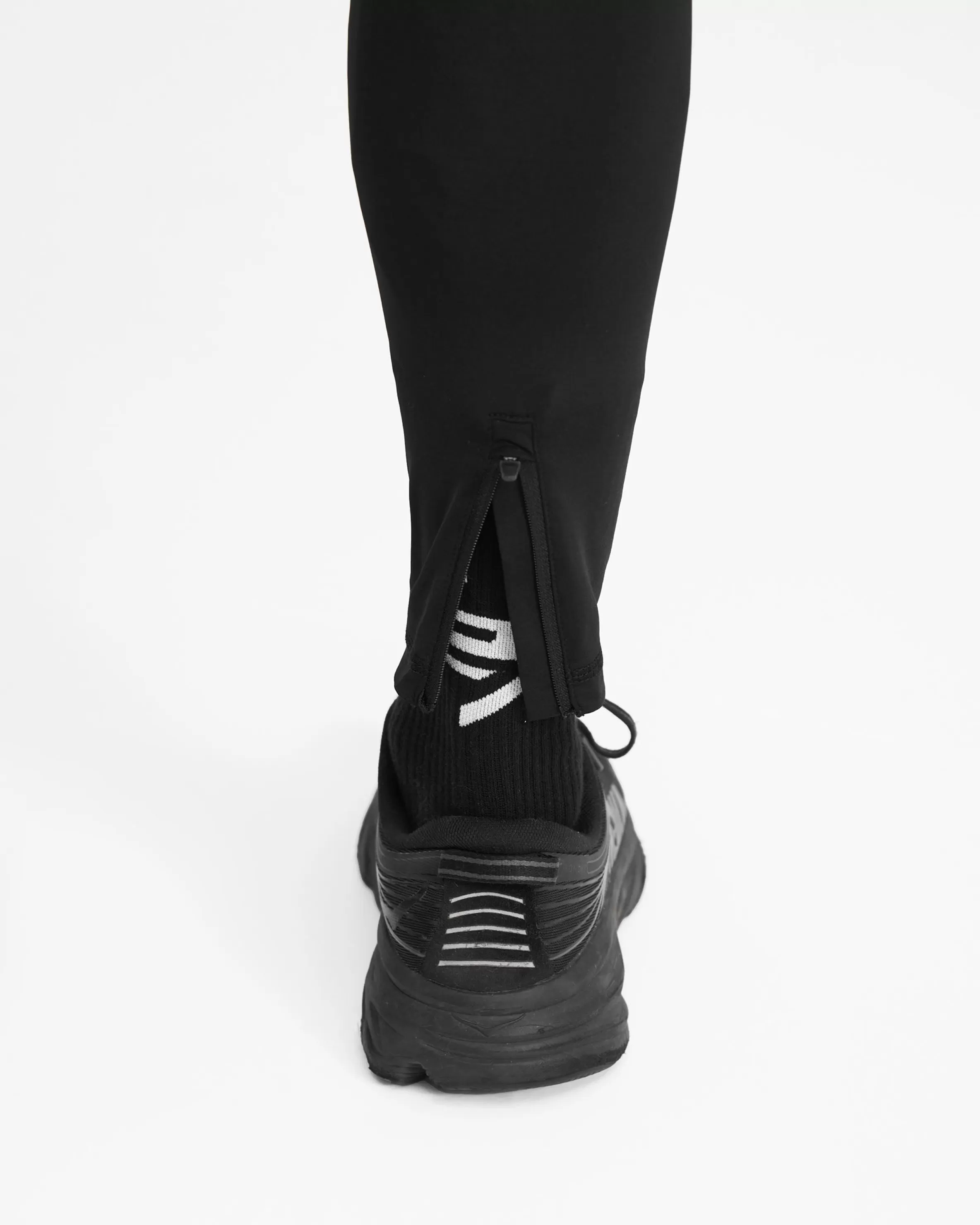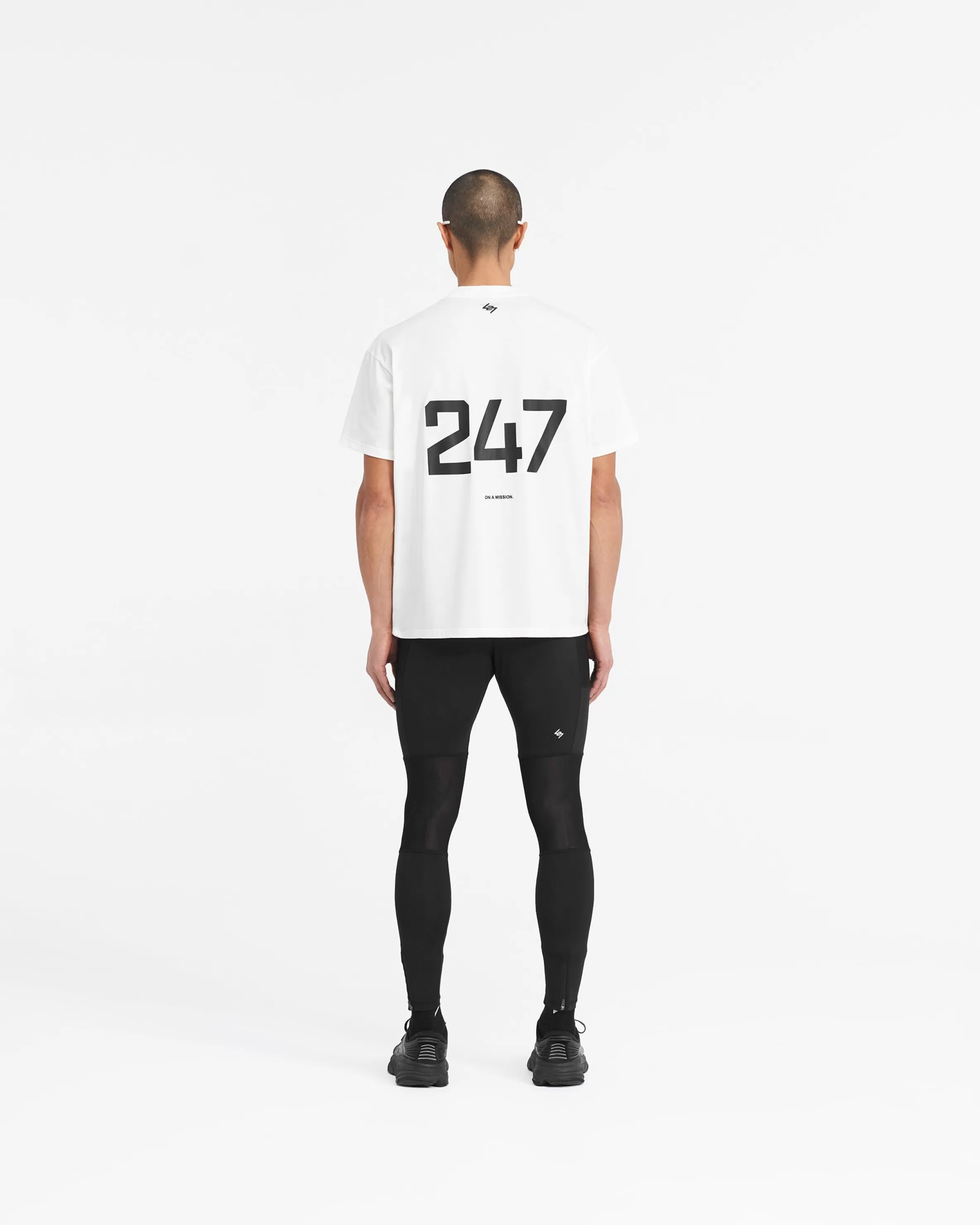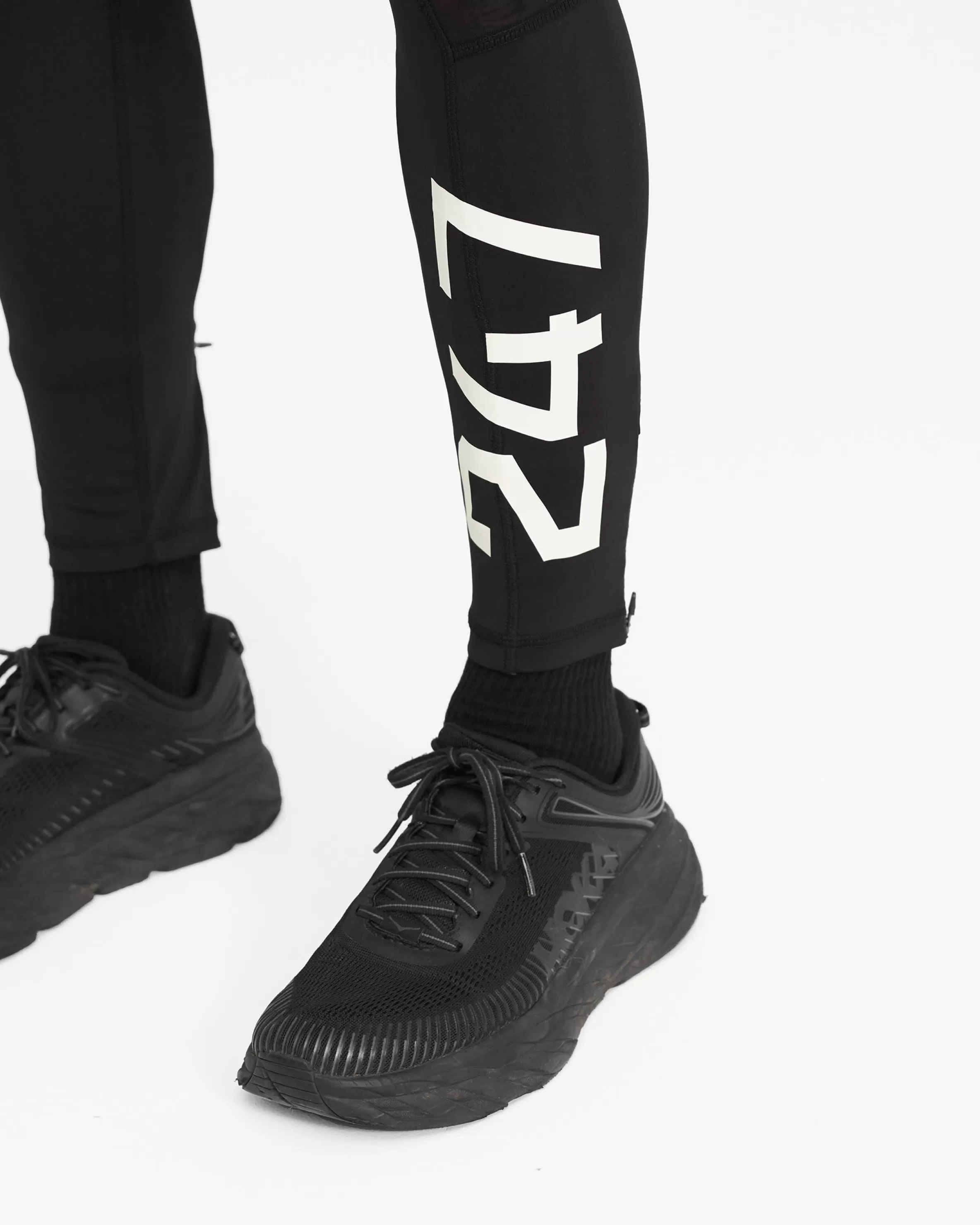 Introducing the 247 Run Tight in Jet Black, the ultimate legwear garment to optimise your performance as you run. The 247 Run Tights feature side stretch ripstop panelling with a perforated finish, a lightweight and breathable fabric incorporated for enhanced durability, breathability and protection against abrasion. They have mesh panelling to the back of the knees for improved thermoregulation and branded, auto-lockable zip openings to the ankle hems. A flatlock construction to the seams ensures complete comfort throughout every movement. The tights also have a single zip pocket to the back for securing valuables, an open pocket with lobster clip for attaching keys to the side and a branded elasticated waistband with the option of an internal/external drawcord for a custom fit. They are finished with our 247 number branding to the bottom leg. We recommend wearing these tights either on their own or under unlined shorts. Jet Black Running Tights Ripstop Panelling Mesh Panels to Knees 247 Branded Waistband with Drawstring Zip Opening to Hems Zip Pocket u0026amp; Open Pocket 247 Number Branding Model is 187cm and 76kg wearing size Medium CompositionMain Body: 85% Polyester, 15% NylonPanelling: 80% Nylon, 20% ElastaneMesh Pocket: 72% Nylon, 28% ElastaneProduct
