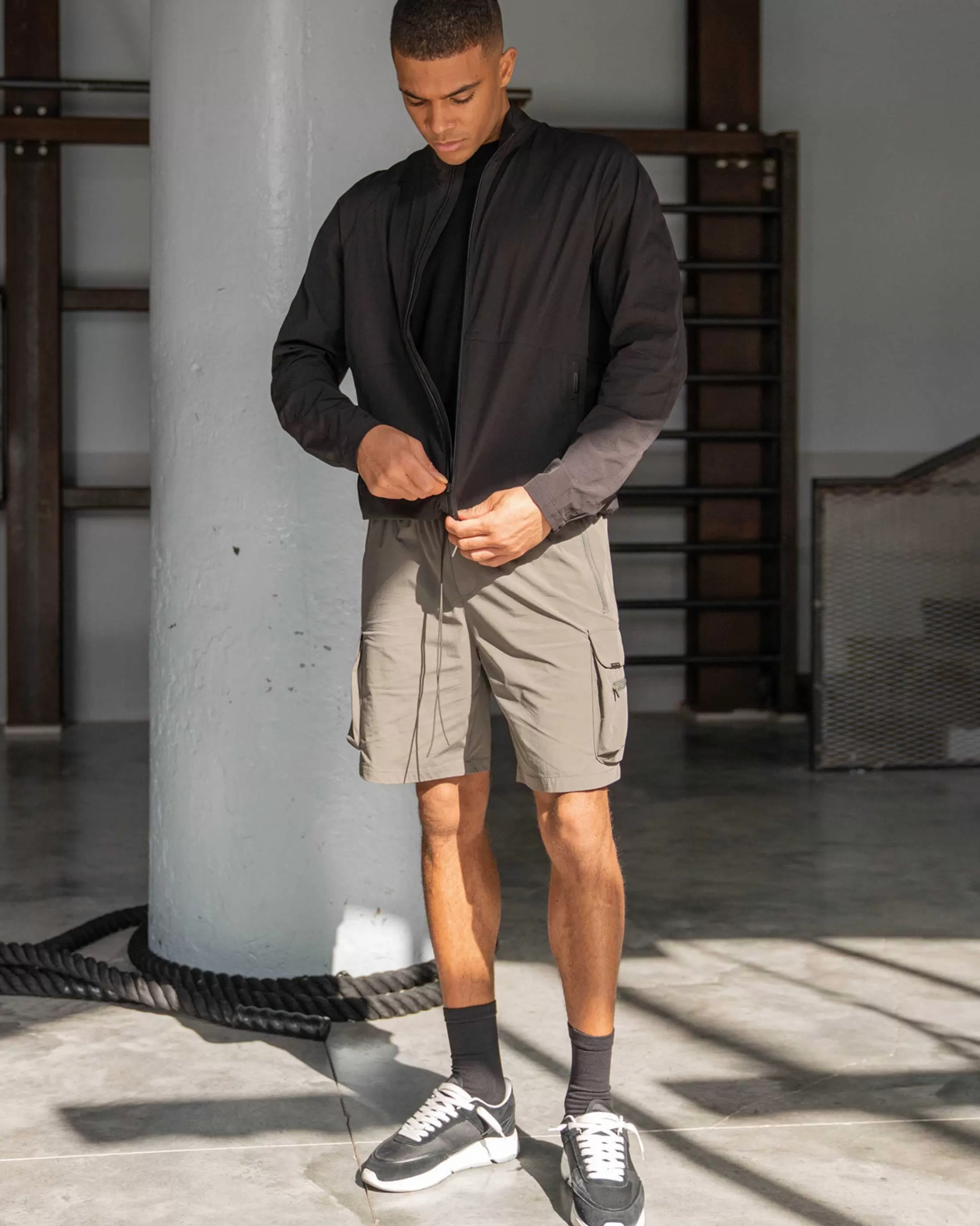 This item purchased in the Black Friday Sale is final sale and cannot be returned or exchanged. Created with the same technical 4-way stretch nylon as the pant. Cargo pockets on the side and zip pockets to the front. Elasticated drawstring waist and adjustable hem. Mens combat shorts Cargo leg pockets Faux fly Zip side pockets Water repellent “Not only do they give off a serious sense of laid-back Los Angeles energy, as the name suggests, they’ll serve you well 24 hours a day, seven days a week, including at the gym.” – GQ Magazine