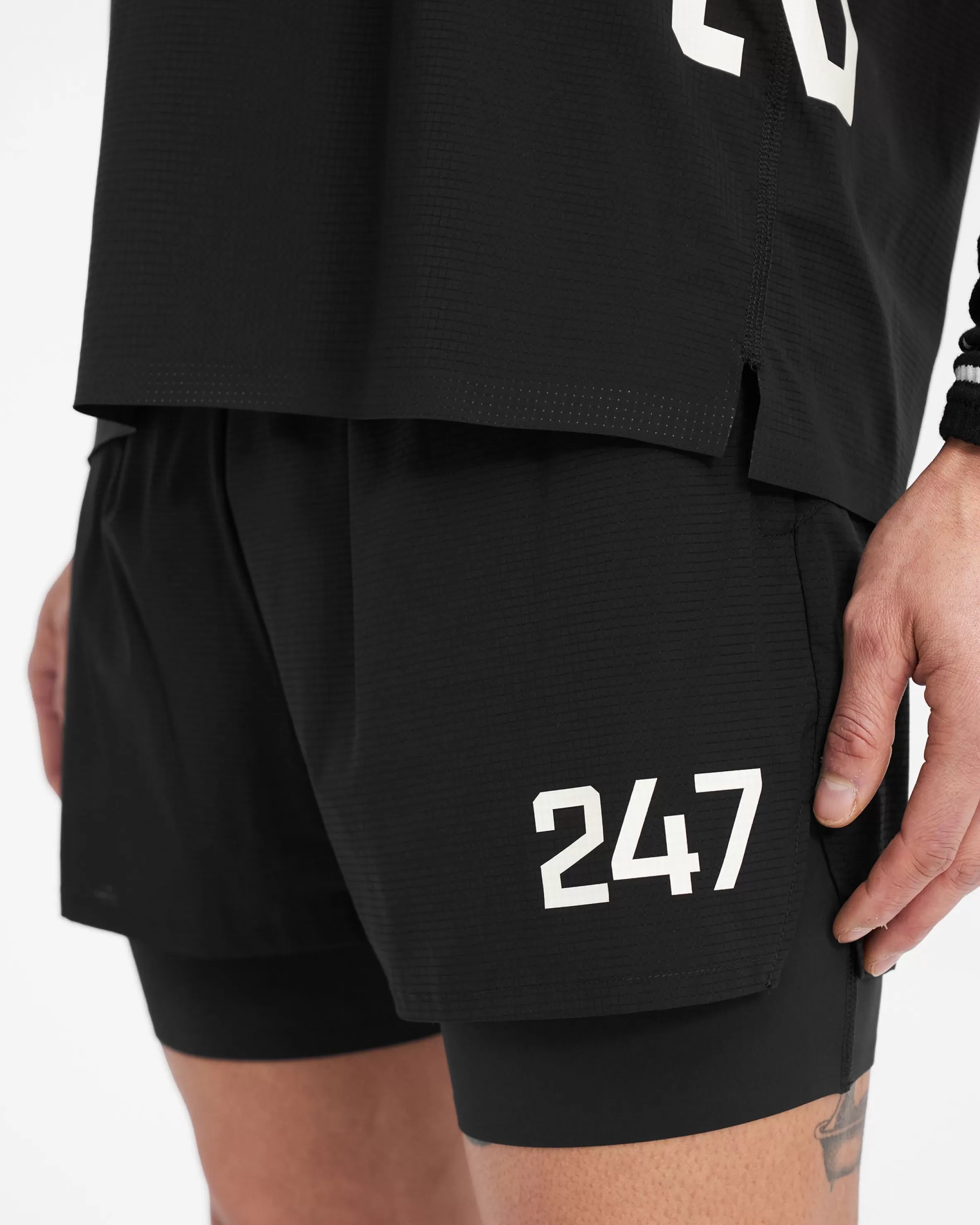 Introducing the 247 Trail Shorts in Jet Black, a luxury 2-in-1 short style with 4-way stretch for unrestricted movement, enhancing your running or training experience throughout every workout session. The 247 Trail Shorts have a stretch ripstop outer, a lightweight and breathable layer with 5-inch inseam for optimal freedom of movement, and a lightweight internal tight. The outer short has our 247 number branding to the front and 247 logo to the back. Bonded hems maintain a clean finish throughout. The Trail Shorts feature a self fabric yoke to hold a t-shirt or our 247 Towel as you train, zip pockets to the side and back, and a rear bonded pocket to the undershort. These shorts were engineered to be worn both on race days and training days. 2-in-1 Trail Shorts Jet Black 4-Way Stretch Stretch Ripstop Outer 5-Inch Inseam Internal Tight 247 Branded Waistband 3 Zip Pockets to Outer Bonded Pocket to Undershort Model is 187cm and 76kg wearing size Medium CompositionOuter: 80% Nylon, 20% ElastaneInner: 85% Polyester, 15% NylonProduct