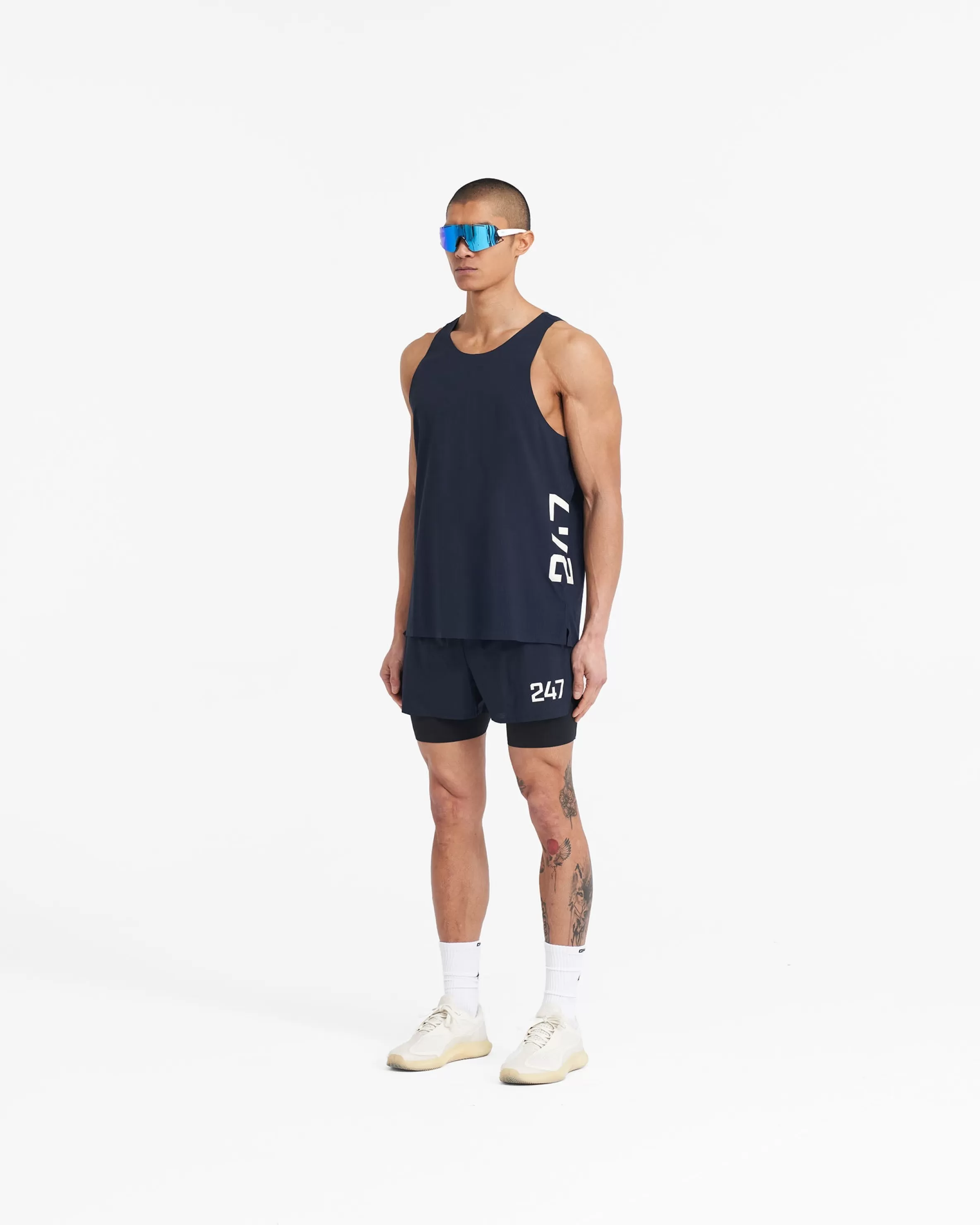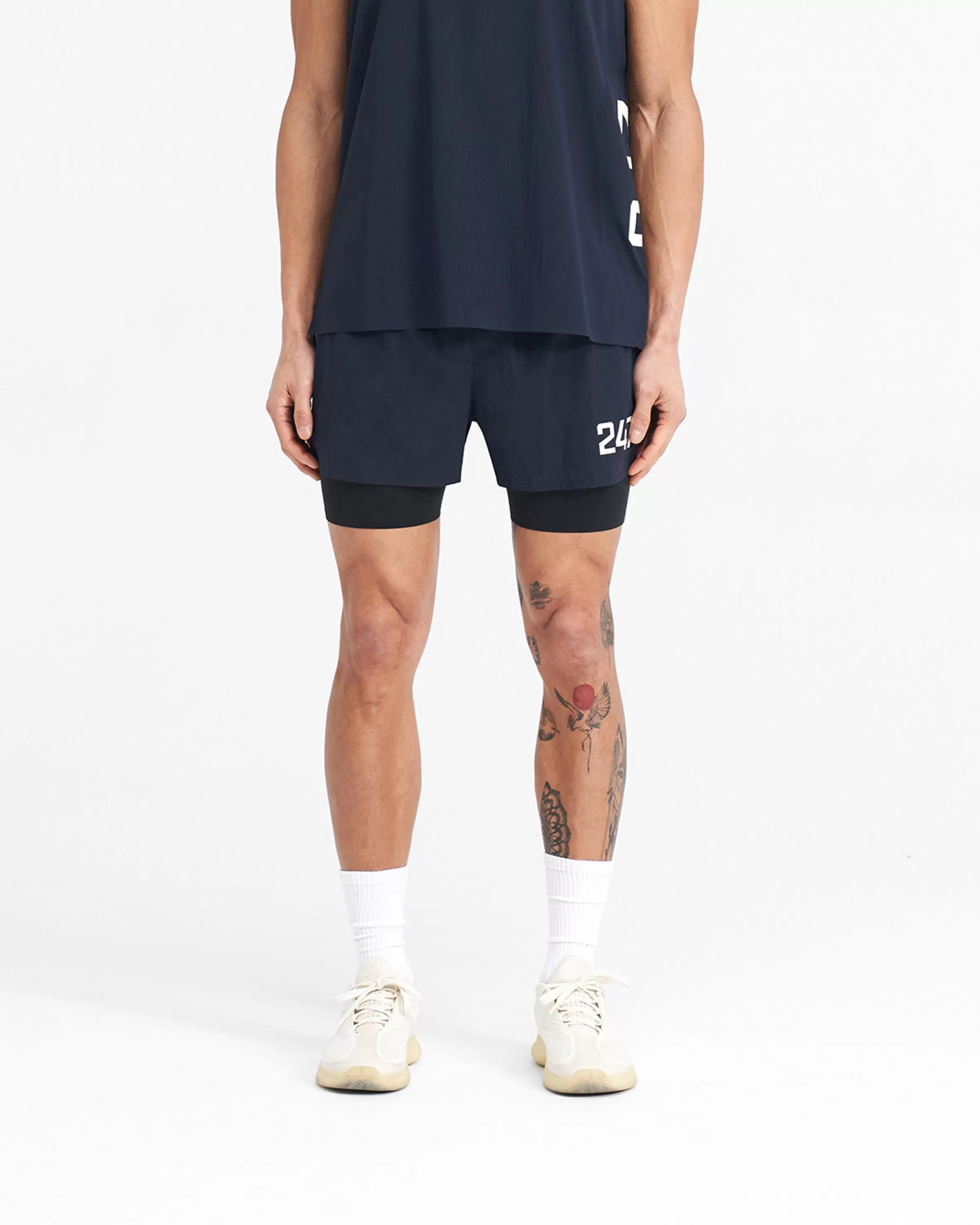 Introducing the 247 Trail Shorts in Navy, a luxury 2-in-1 short style with 4-way stretch for unrestricted movement, enhancing your running or training experience throughout every workout session. The 247 Trail Shorts have a stretch ripstop outer, a lightweight and breathable layer with 5-inch inseam for optimal freedom of movement, and a lightweight internal tight. The outer short has our 247 number branding to the front and 247 logo to the back. Bonded hems maintain a clean finish throughout. The Trail Shorts feature a self fabric yoke to hold a t-shirt or our 247 Towel as you train, zip pockets to the side and back, and a rear bonded pocket to the undershort. These shorts were engineered to be worn both on race days and training days. 2-in-1 Trail Shorts Navy 4-Way Stretch Stretch Ripstop Outer 5-Inch Inseam Internal Tight 247 Branded Waistband 3 Zip Pockets to Outer Bonded Pocket to Undershort Model is 187cm and 76kg wearing size Medium CompositionOuter: 80% Nylon, 20% ElastaneInner: 85% Polyester, 15% NylonProduct