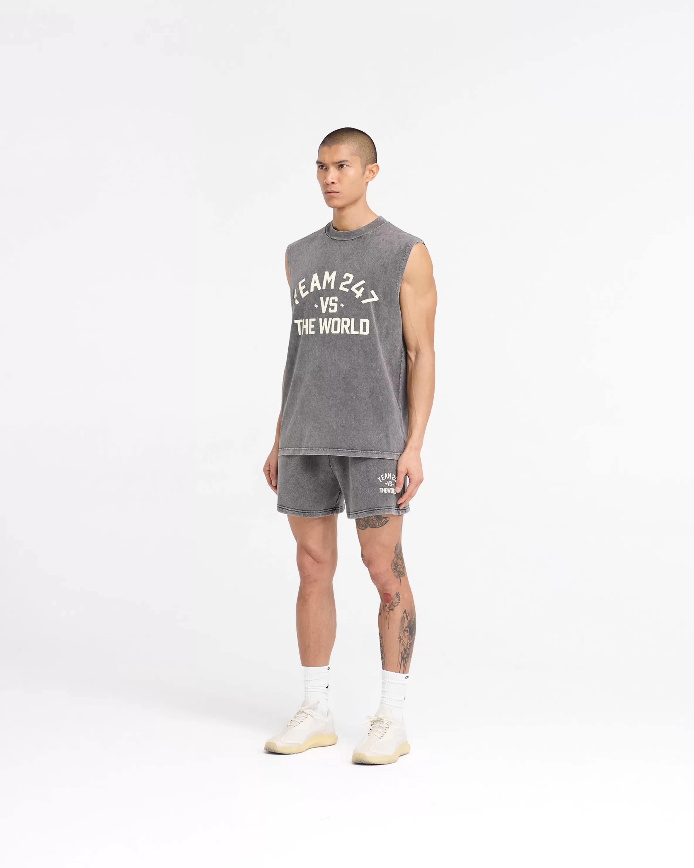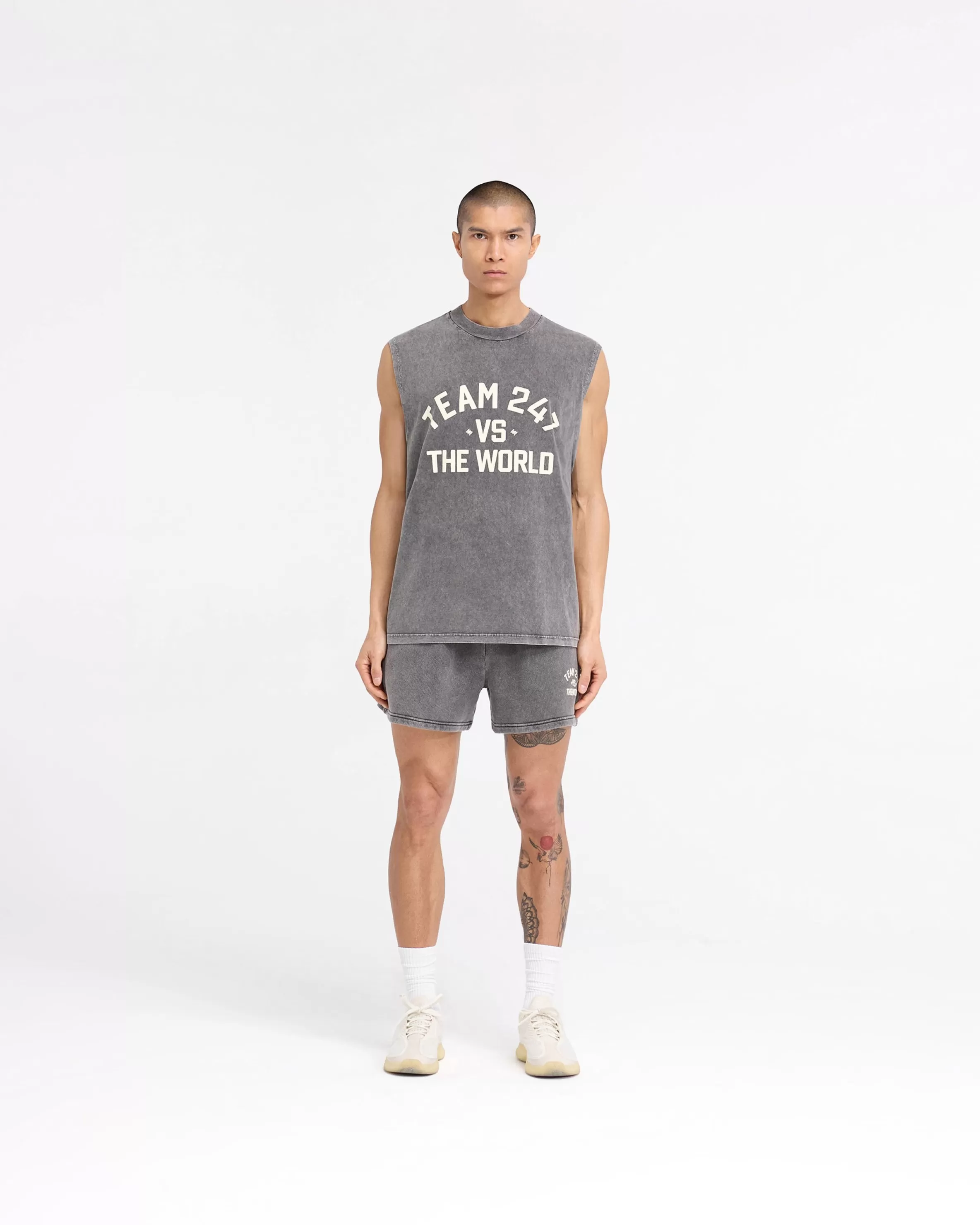 Introducing the 247 Vs The World Tank in Pewter, crafted from a super soft hand feel jersey cotton, with a heavy pigment wash to the fabric, following our oversized mainline fit. The tank has a ribbed collar, with a cracked 247 Vs The World print to the front and back. Pewter Grey Tank Top Heavy Pigment Wash Mainline Oversized Fit Soft Hand Feel Fabric Represent 247 Gymnasium Print Note: Due to the washing technique of this garment, each piece produced will be unique in colour u0026amp; wash. Note: Due to the cracked graphic design, there may be some loss in print with time, wear and washing Composition: 100% Cotton Model is 187cm and 76kg wearing size MProduct
