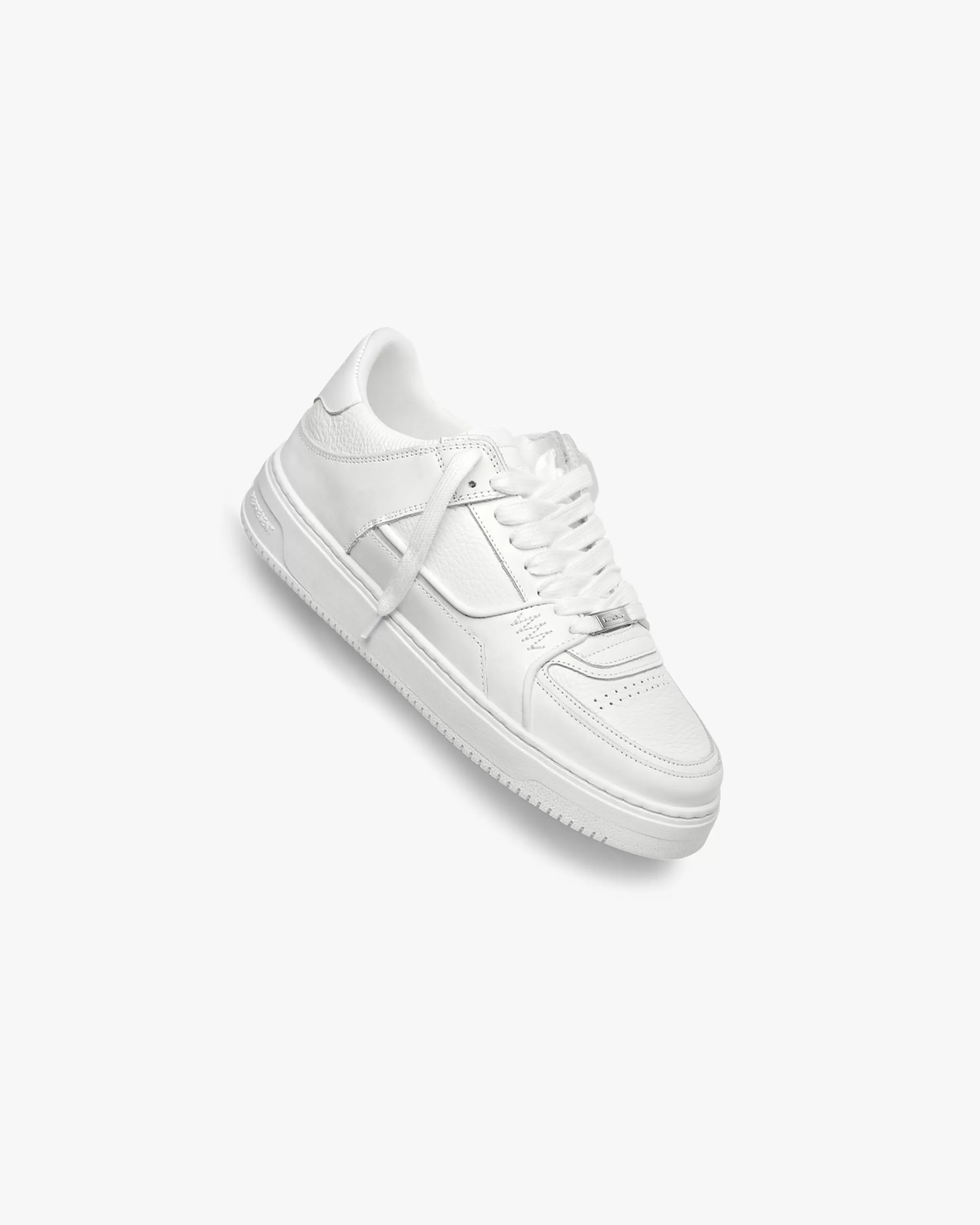 Fits true to size. Take your usual size. The Apex features a mixture of tumbled and flat leather combined with our signature motifs, like the zig-zag stitch and metal bar detailing. Leather Piping details are reminiscent of vintage basketball elements, whilst the upper sits perfectly on top of our custom two-tone skate-inspired sole unit. The Apex is universally fitting and designed for maximum comfort. Mens trainer Suede u0026amp; Leather uppers Rubber outsole Padded Collar Low top Lace up Hand-made in Portugal. Comes with both Vintage White u0026amp; Grey laces.