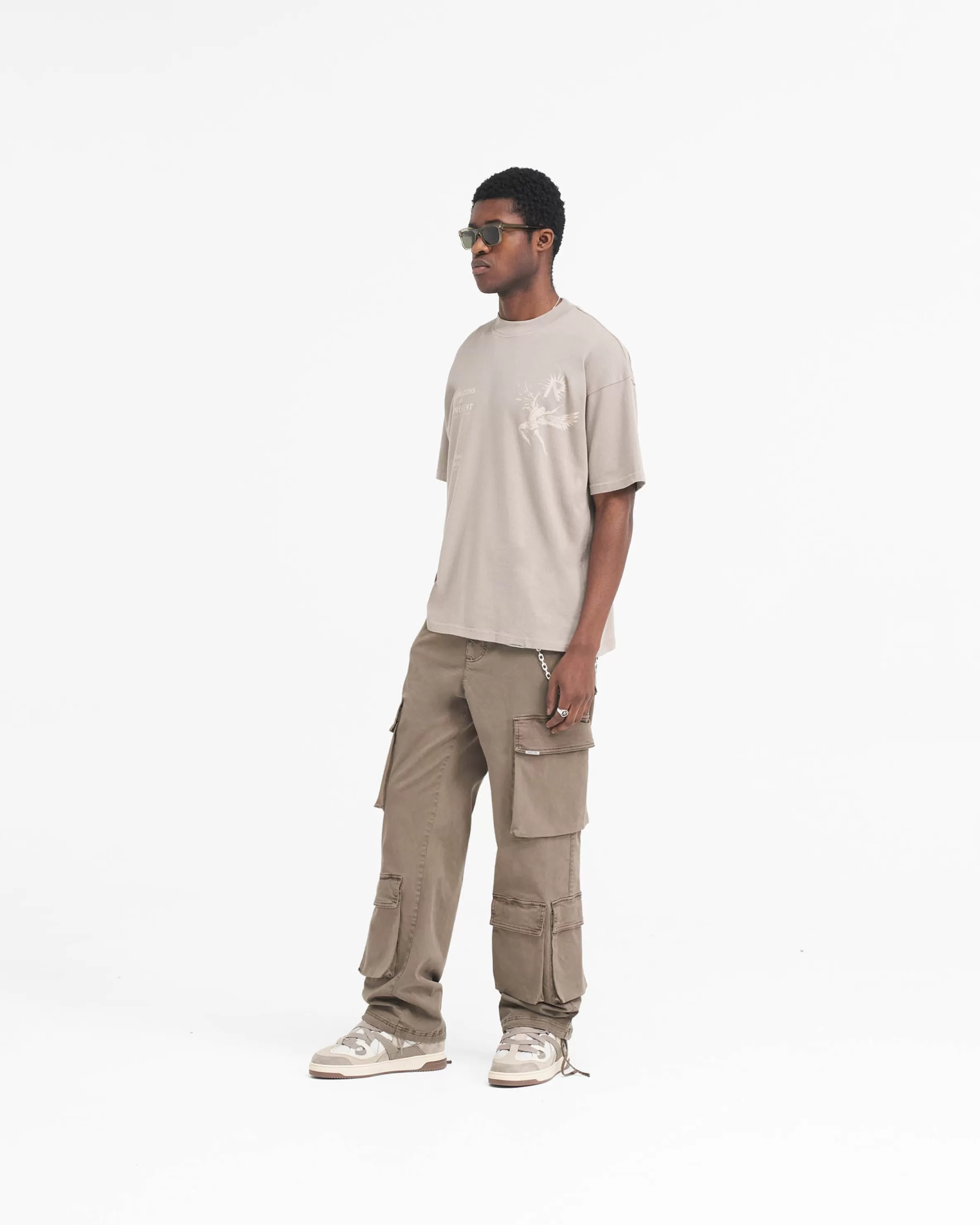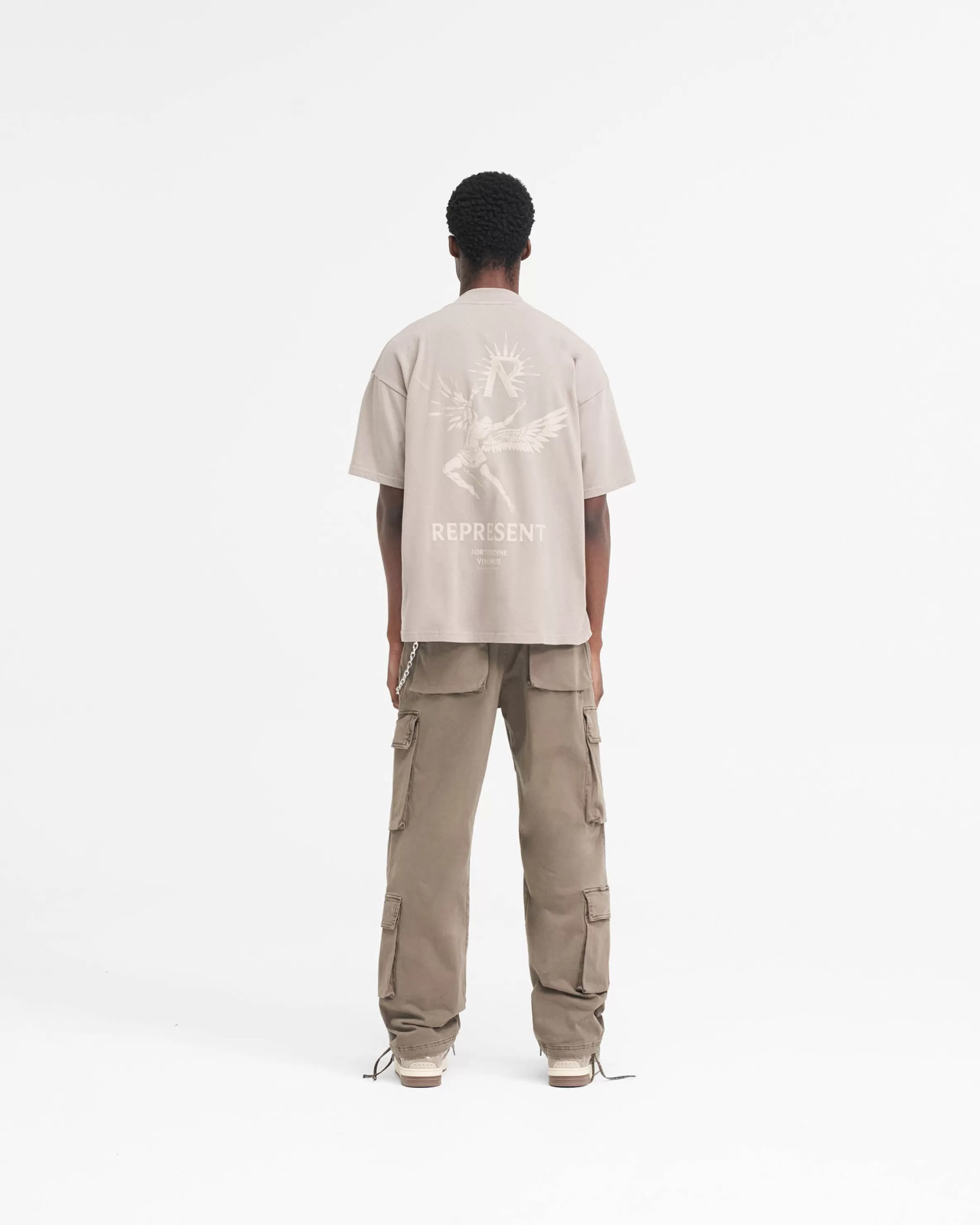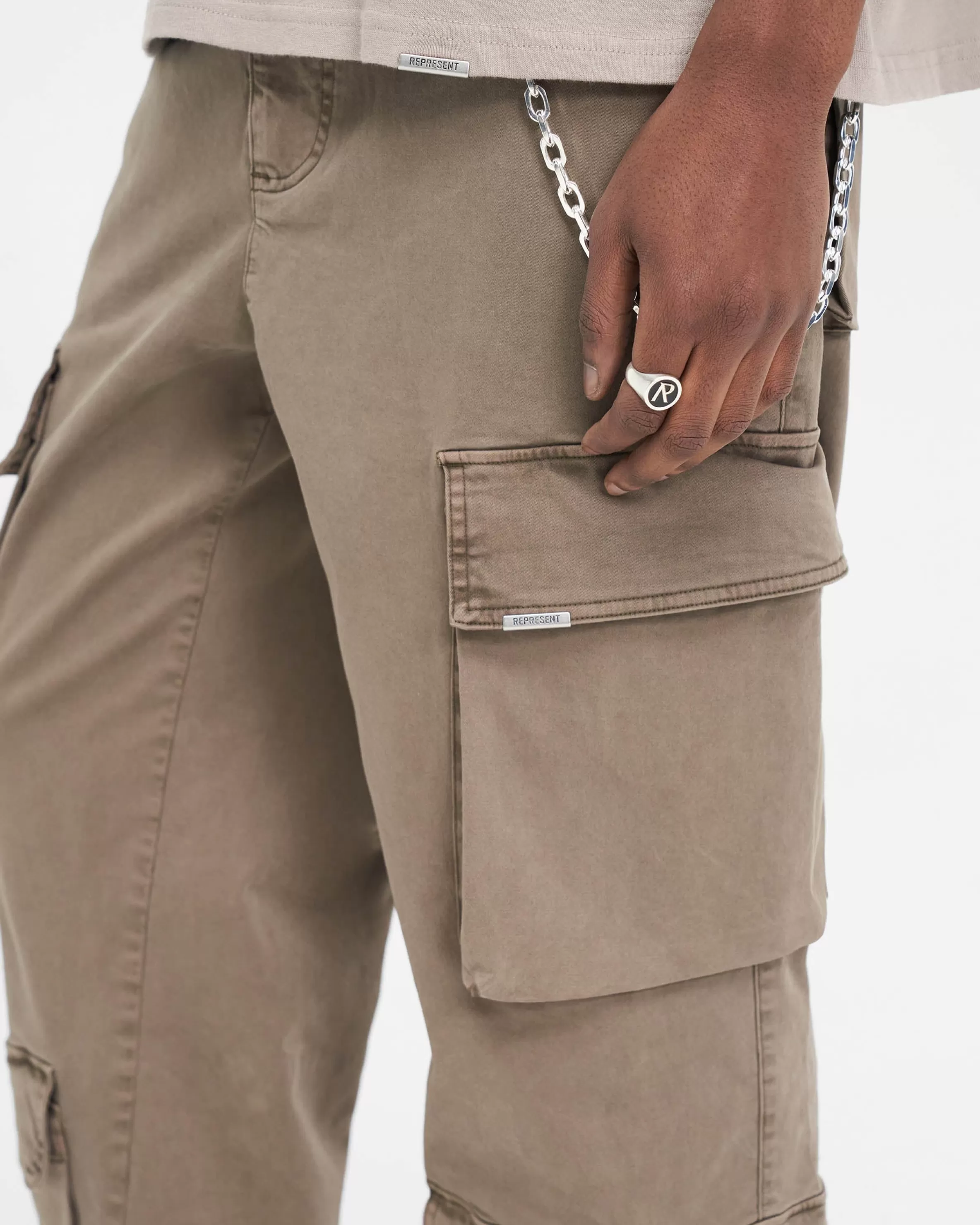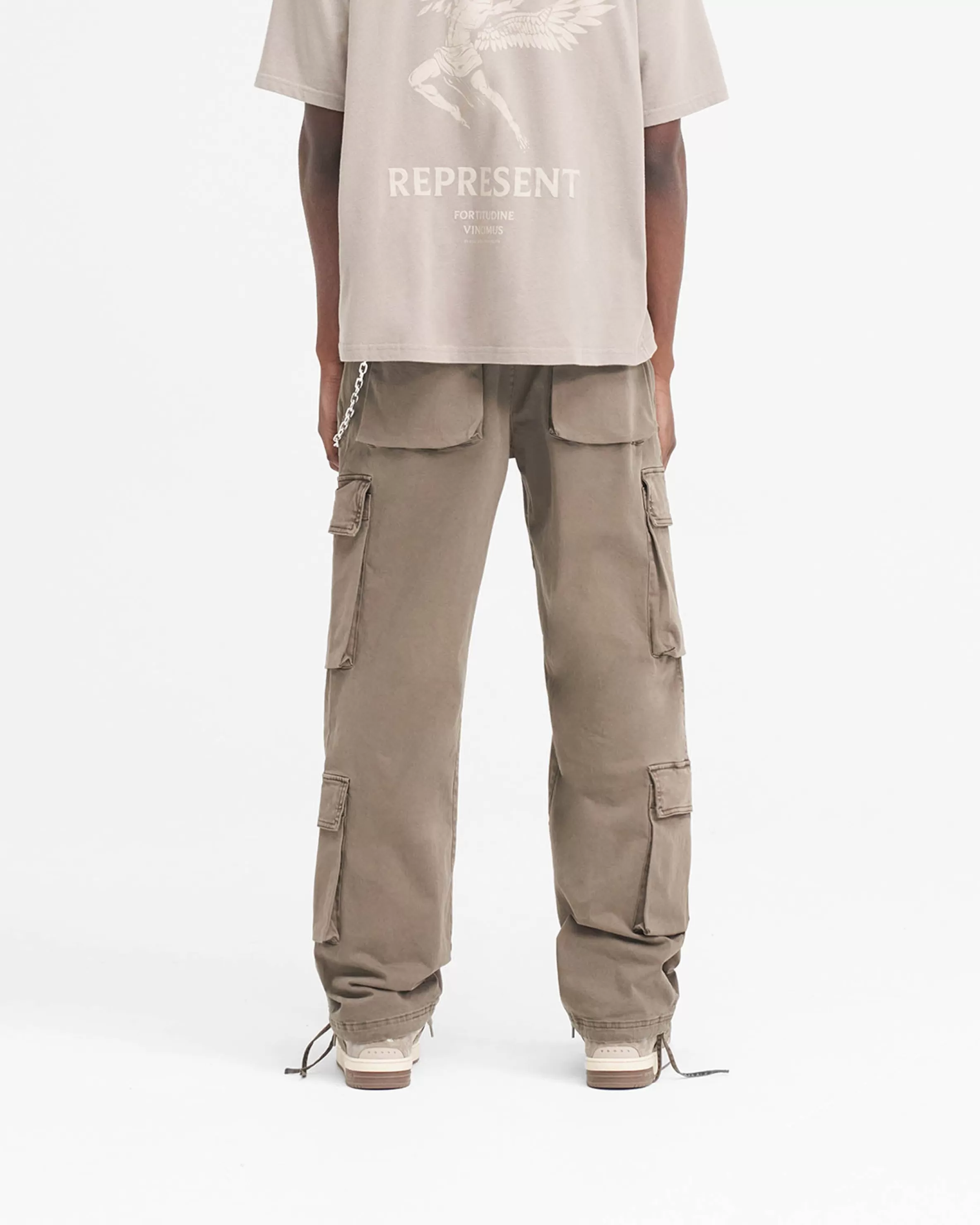 This item purchased in the Black Friday Sale is final sale and cannot be returned or exchanged. Introducing the Baggy Cargo Pant in Dawn, a luxury cargo pant style crafted with a super soft hand feel and super heavy fade out wash. These cargos feature a cut and sew v yoke to the back, with oversized 3D pockets throughout and spray dye effect across the seams. They have a similar baggy fit to our bestselling utility pant, with the addition of an antique silver branded belt loop bar and Represent metal bar to the cargo pocket. Dawn Cargo Pants Heavy Fade Out Wash Baggy Fit 3D Oversized Pockets Antique Silver Metal Hardware Composition: 97% Cotton, 3% Elastane Product