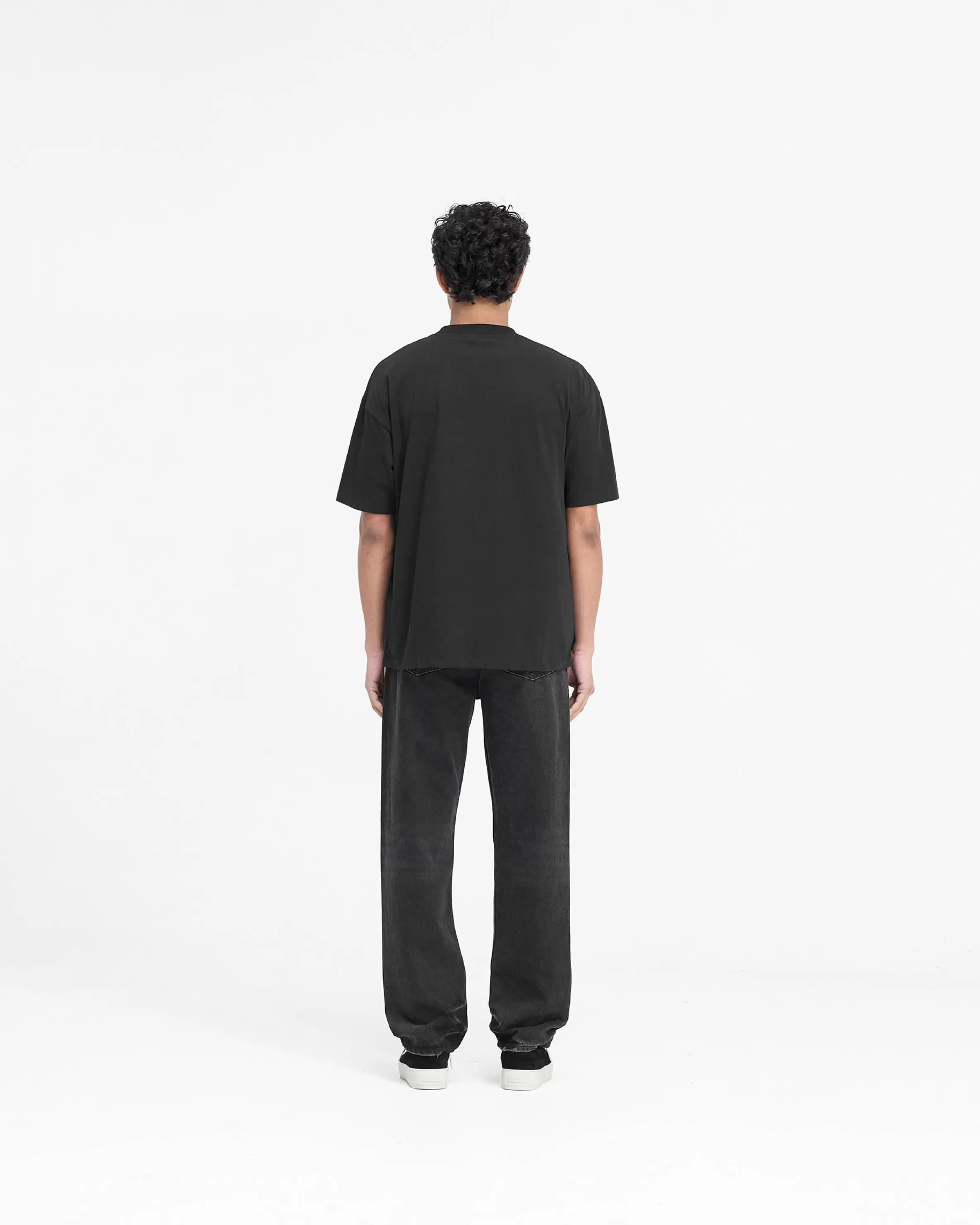 Introducing the Block Logo T-Shirt in Jet Black, a slightly oversized t-shirt crafted from 100% cotton with a carbon fin…