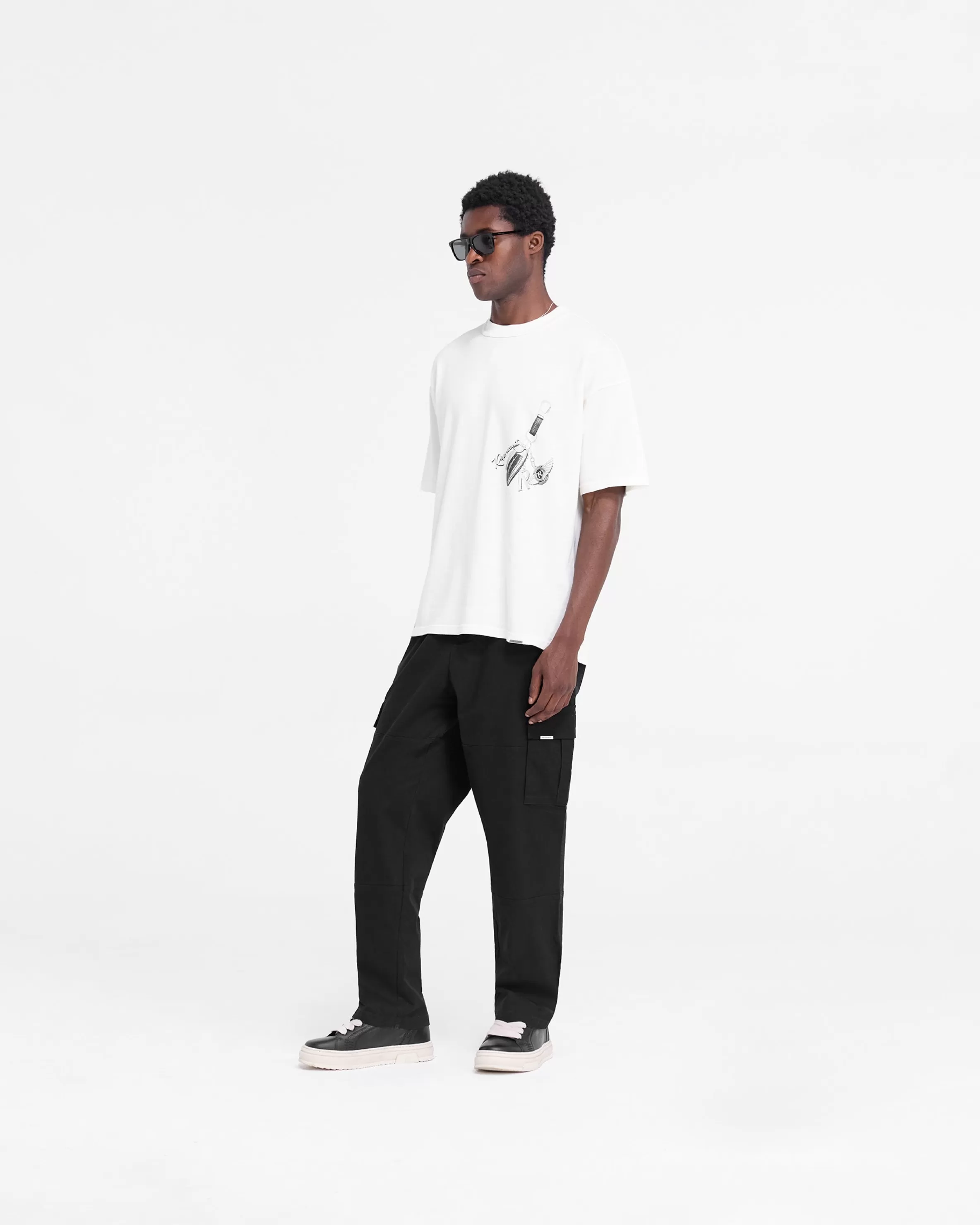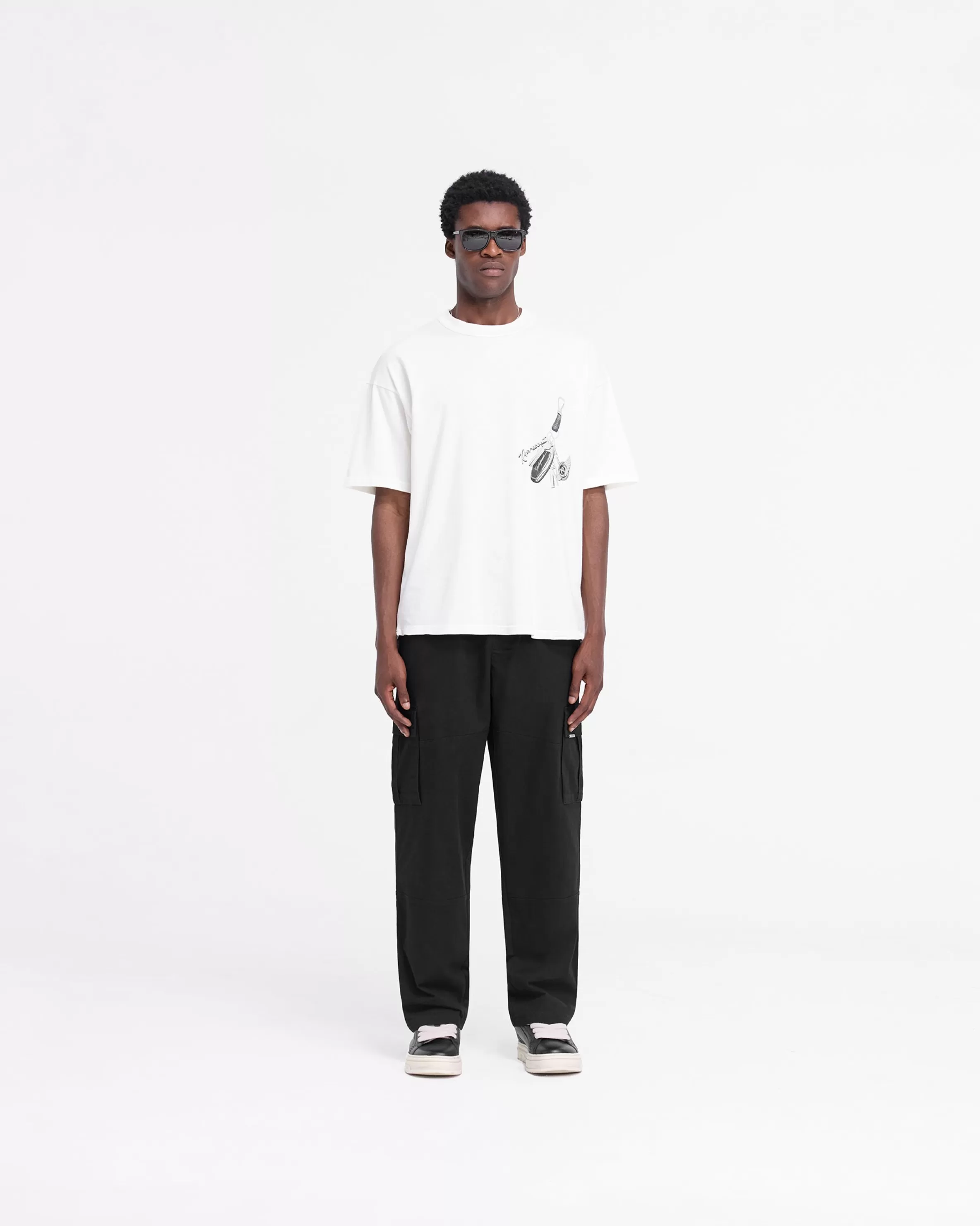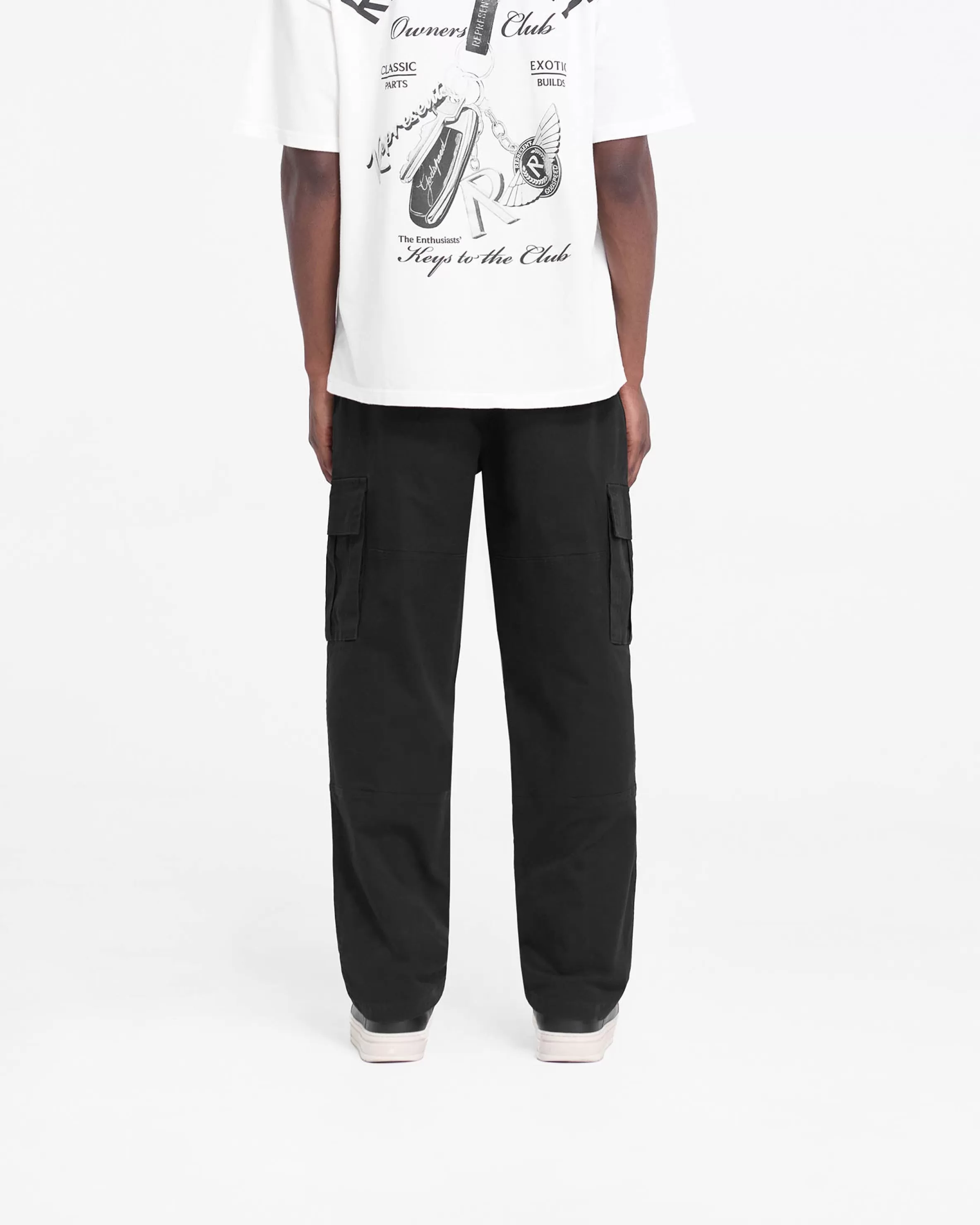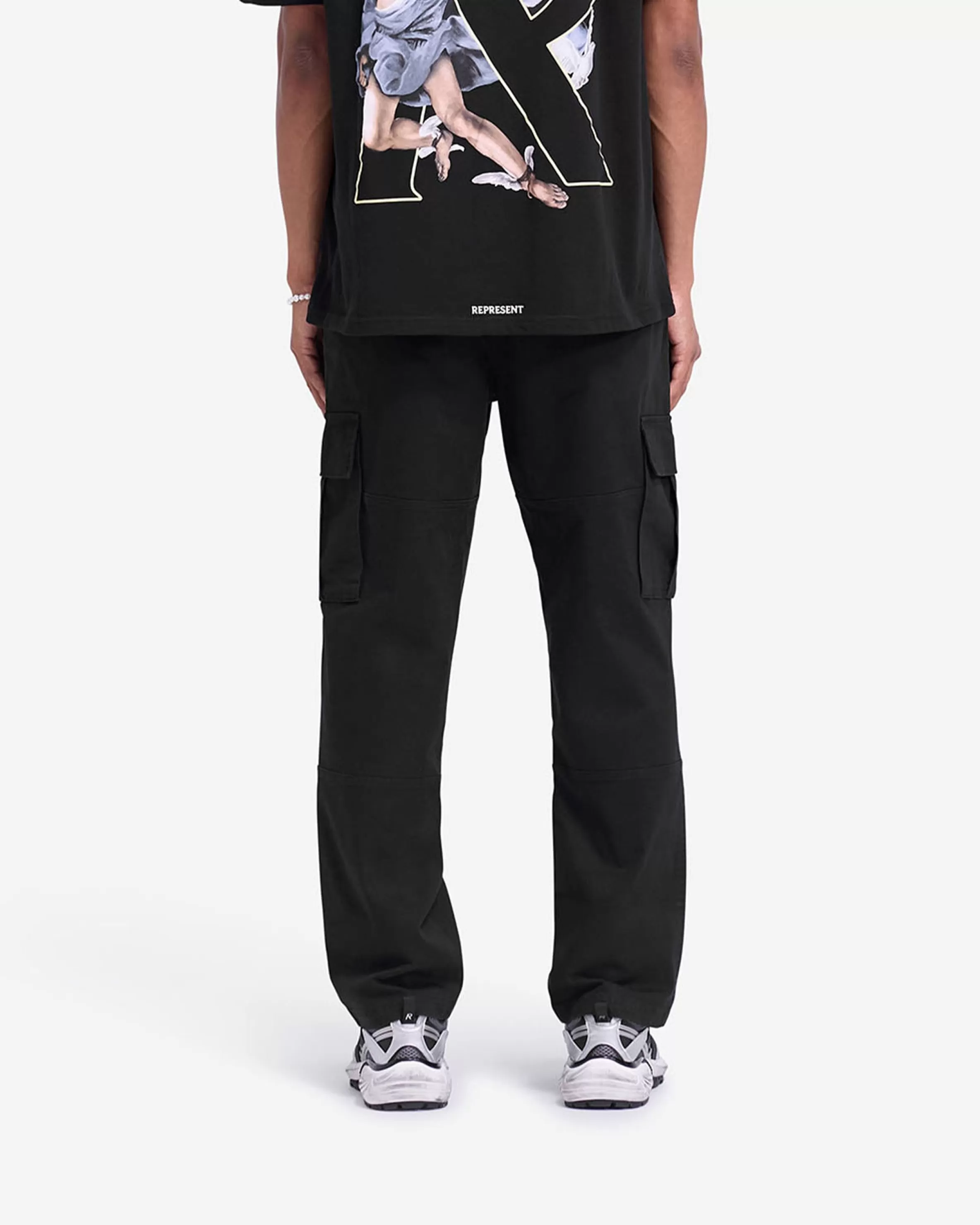 Introducing the new seasonal Cargo Pant in Black. This refined take on the classic silhouette showcases a slimmer, more regular fit from our typical cargo styles. The lightly washed effect and super soft cotton construction afford a vintage look and feel, while flap pockets with metal bar detailing add an element of further refinement. The elasticated waistband with internal drawcord ensures ultimate comfort, making these cargo pants an everyday essential. Black Cargo Pants Regular Fit Lightly Washed Flap Pockets Metal Bar Detailing Elasticated Waistband with Internal Drawcord Composition: 100% Cotton Excluding Trims Product Care: Machine wash at 30 degrees celsius. Do not bleach, tumble dry or dry clean. Iron at medium temperature. Wash with similar colours inside out. Do not pile whilst damp or rub isolated stains. Model is 188cm and 75kg wearing size MProduct