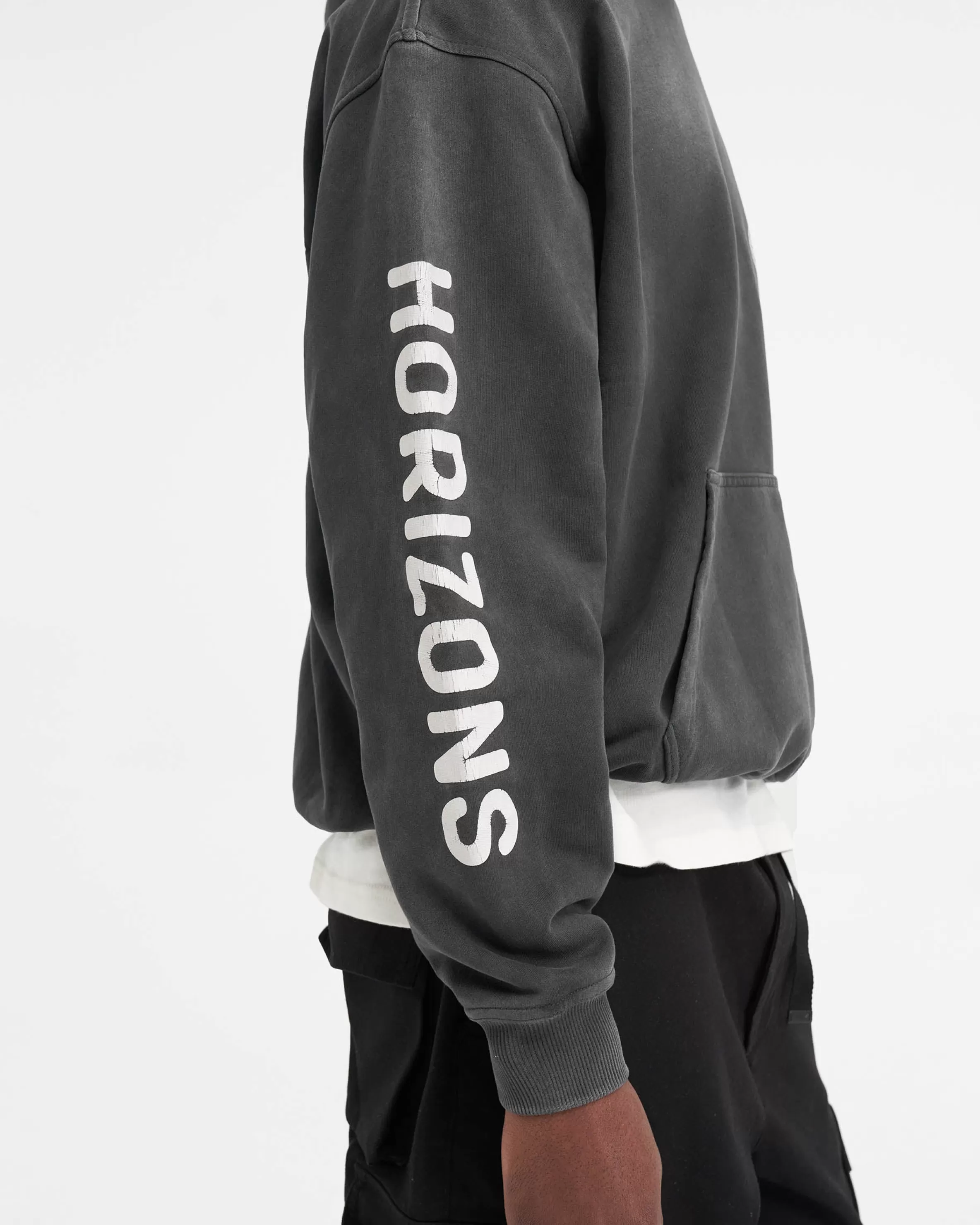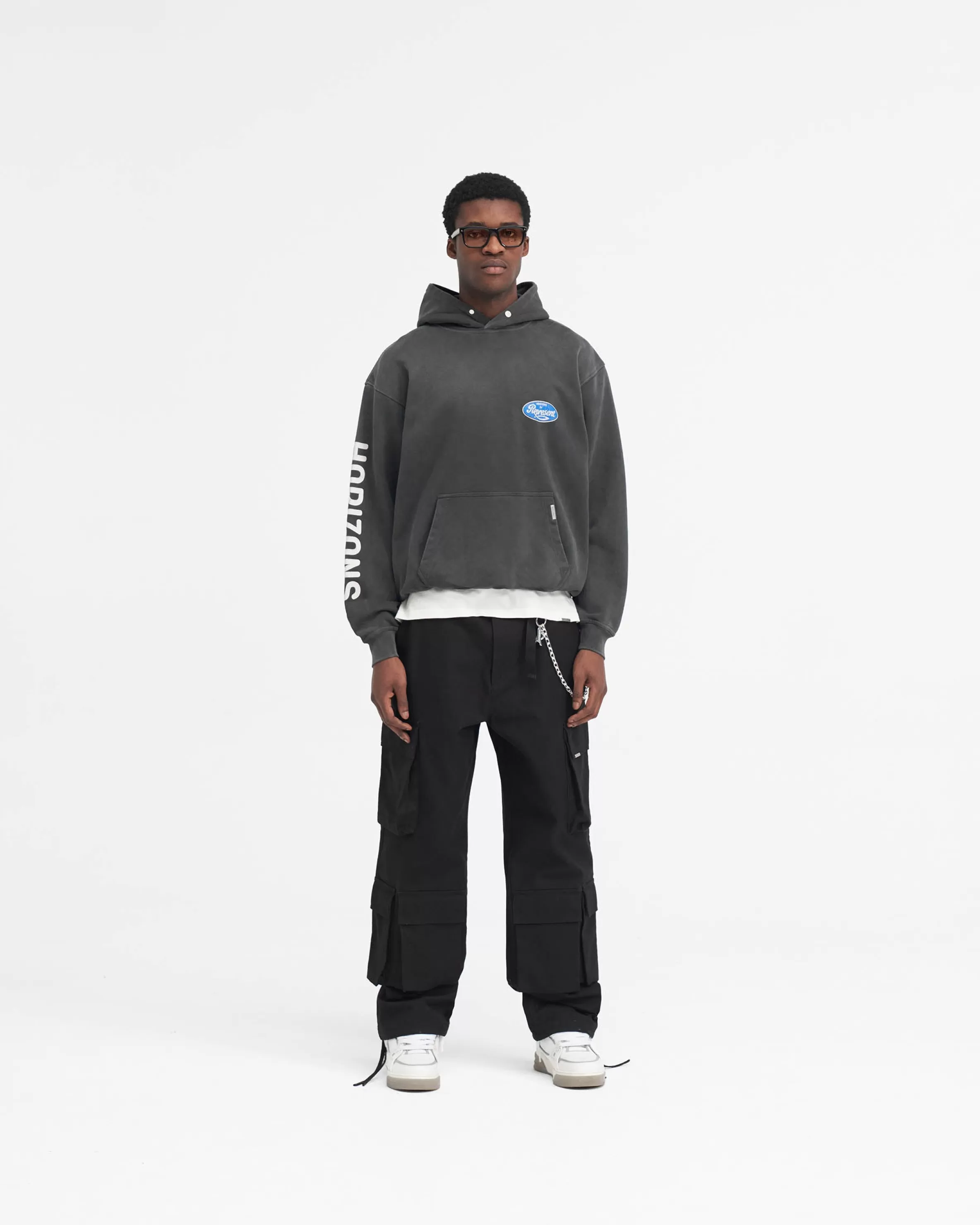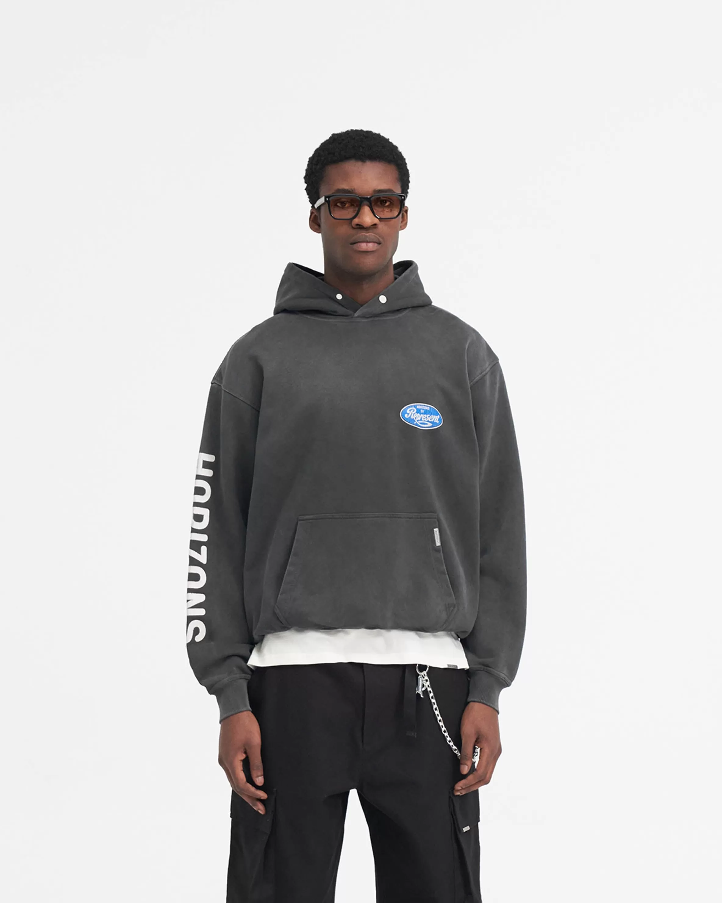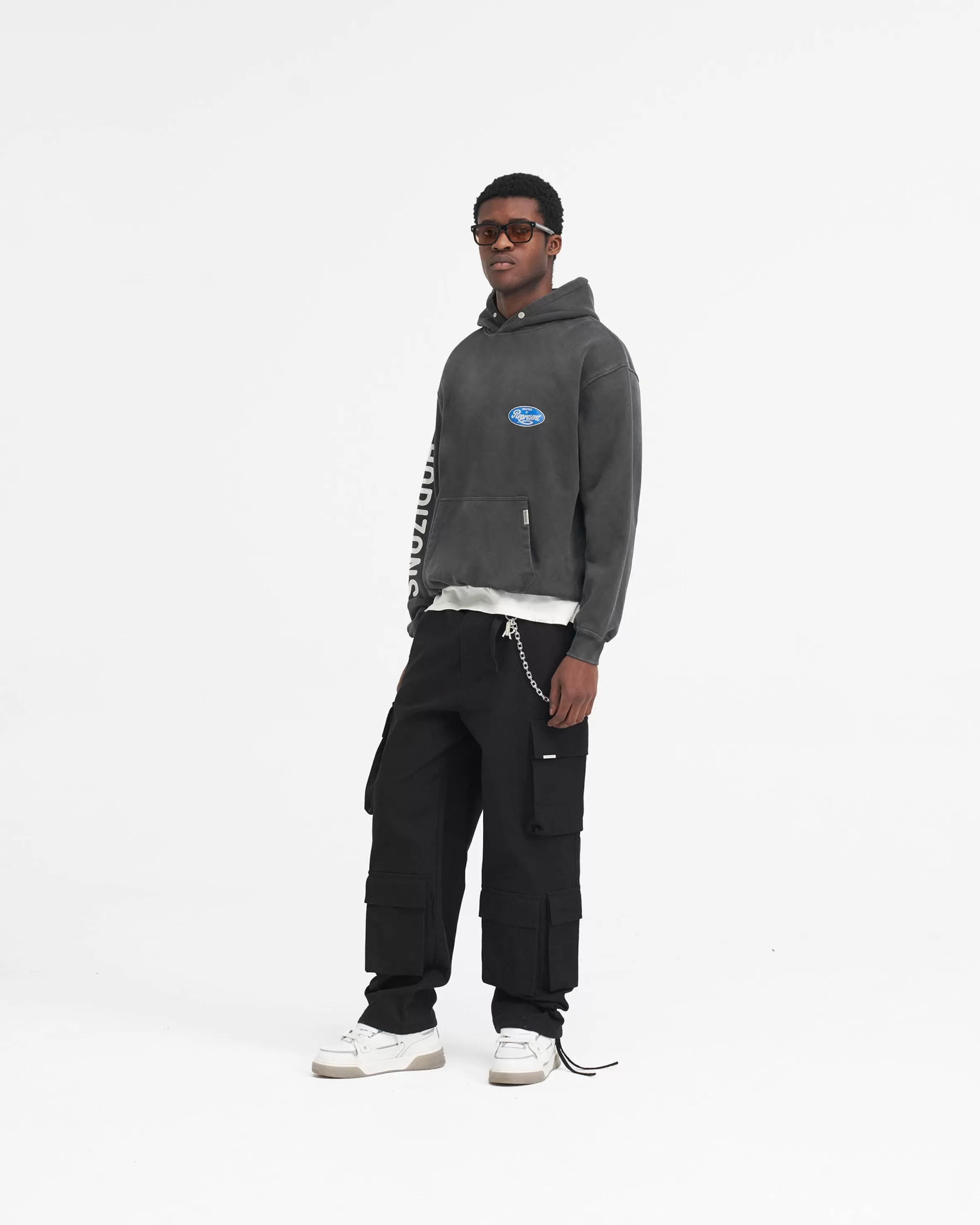 Introducing the Classic Parts Hoodie in Aged Black, a luxury hoodie crafted with an oversized fit. The hoodie has ribbed hem and cuffs and is finished with a Represent metal bar to the pocket and Cobrax popper to the hood. The Classic Parts Hoodie features our distressed Horizons motorsport inspired graphic to the front and back, with a cracked Horizons graphic to the right sleeve. Aged Black Hoodie Oversized Fit Ribbed Hem and Cuffs Cobrax Popper to Hood Horizons Motorsport Graphic Composition: 100% Cotton480gsm Product
