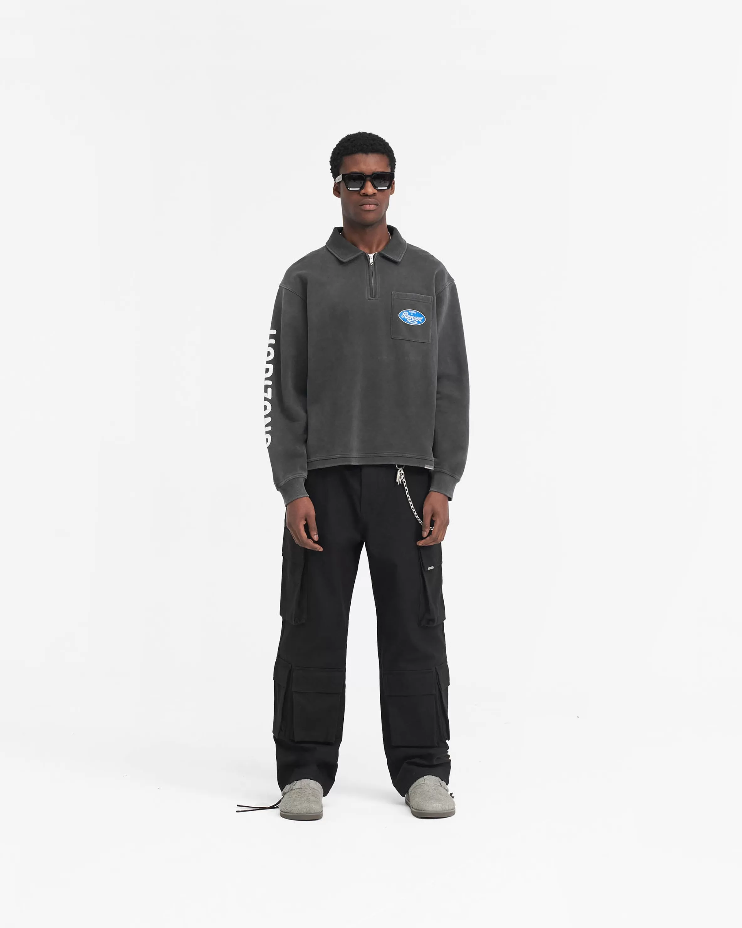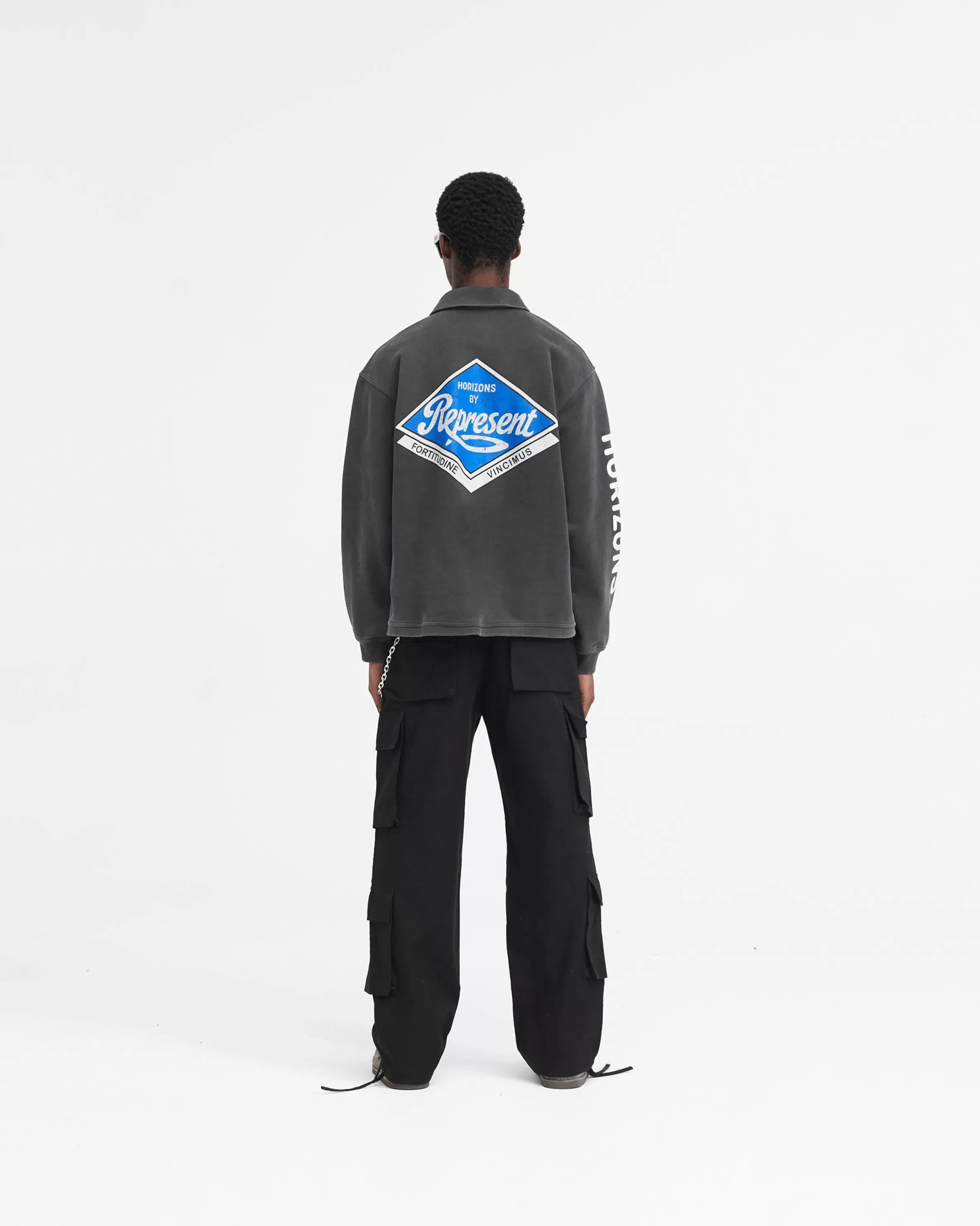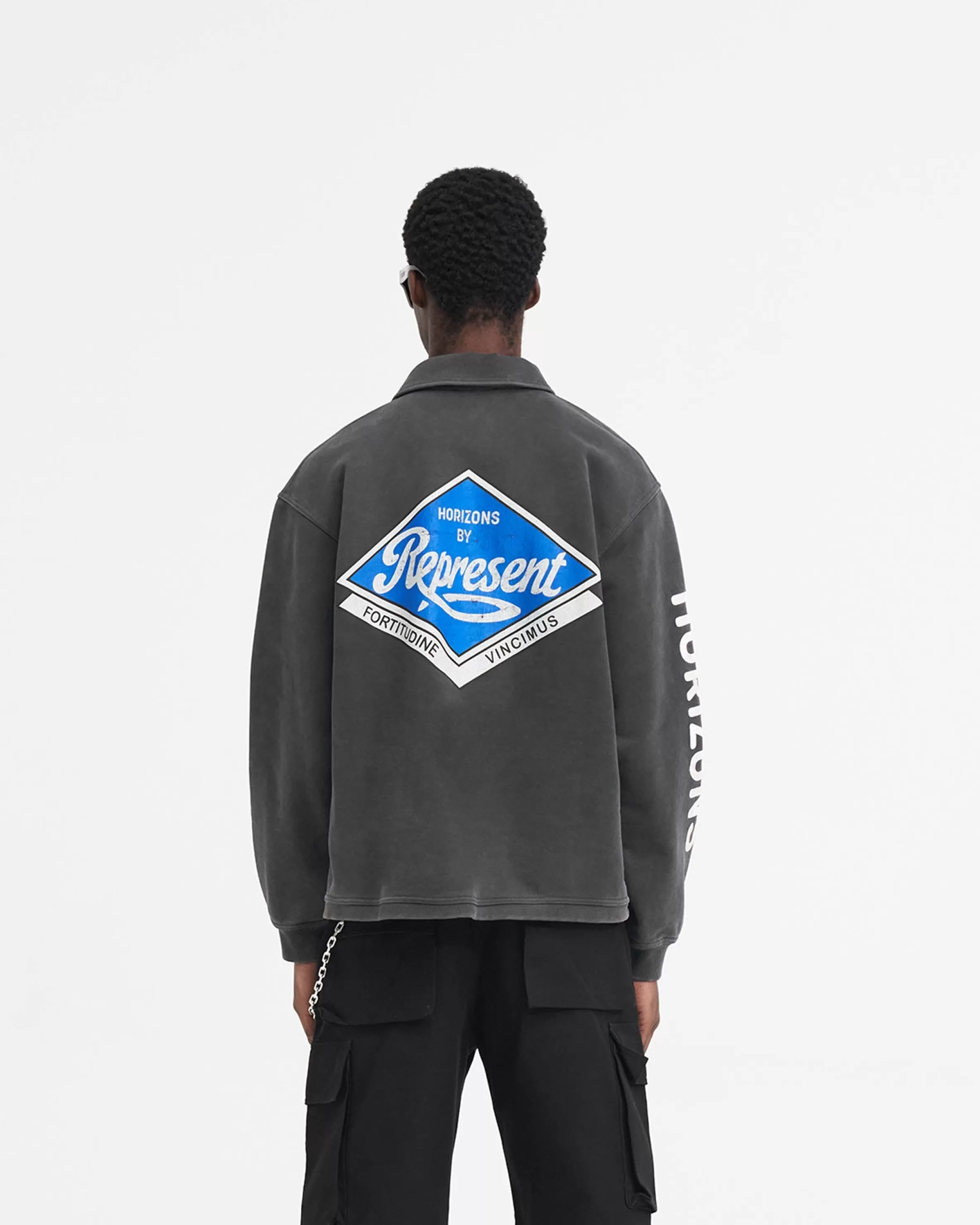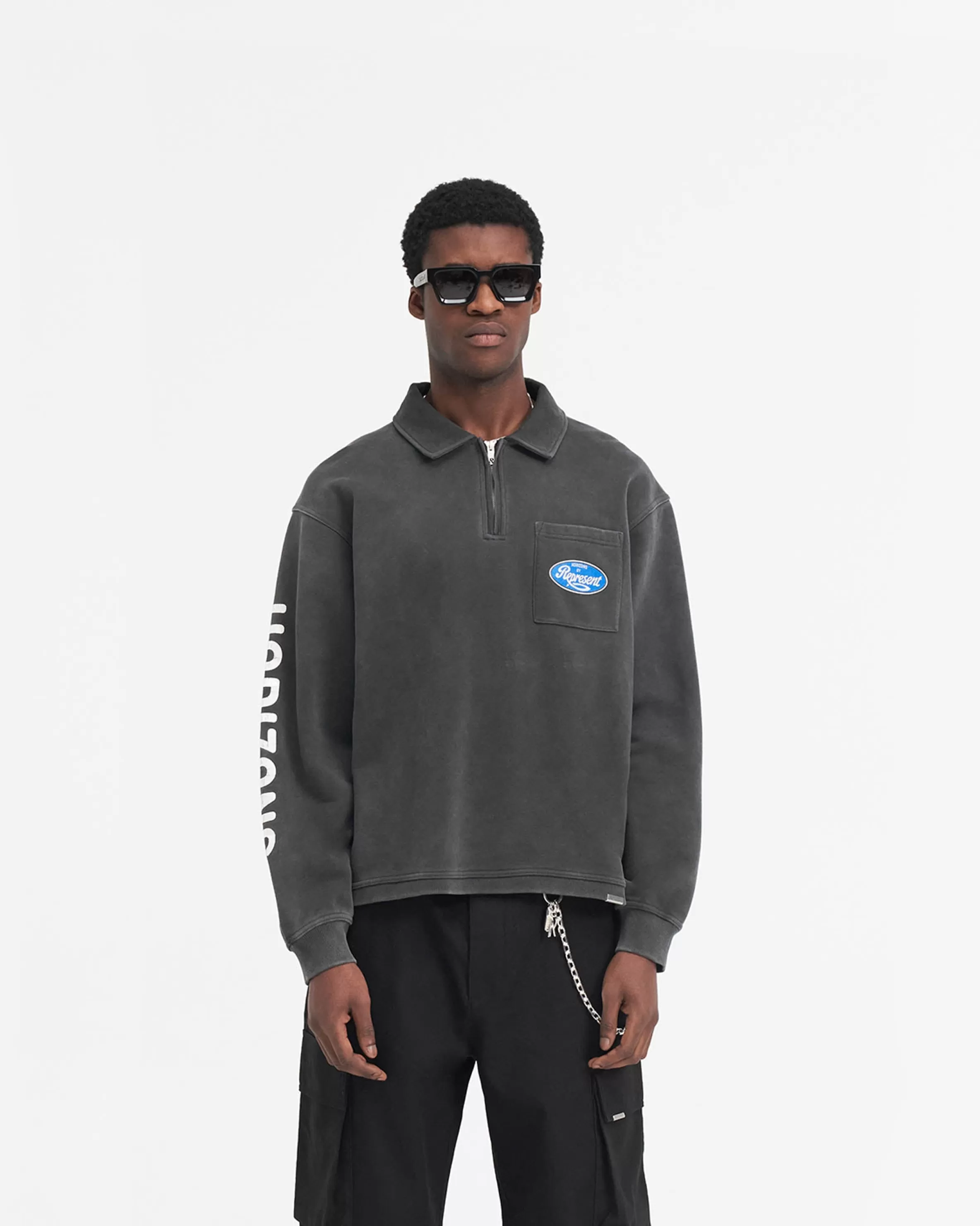 Introducing the Classic Parts Quarter Zip in Aged Black, a luxury quarter zip top crafted from 100% jersey cotton with a slightly oversized fit. This quarter zip has a ribbed hem and cuffs, with a single chest pocket. It features our distressed Horizons motorsport inspired graphic to the front and back, with a cracked Horizons graphic to the right sleeve. It is finished with a Represent metal bar logo to the hem. Aged Black Quarter Zip Slightly Oversized Fit Chest Pocket Ribbed Hem u0026amp; Cuffs Horizons Motorsport Inspired Graphic Composition: 100% Cotton480gsm Product