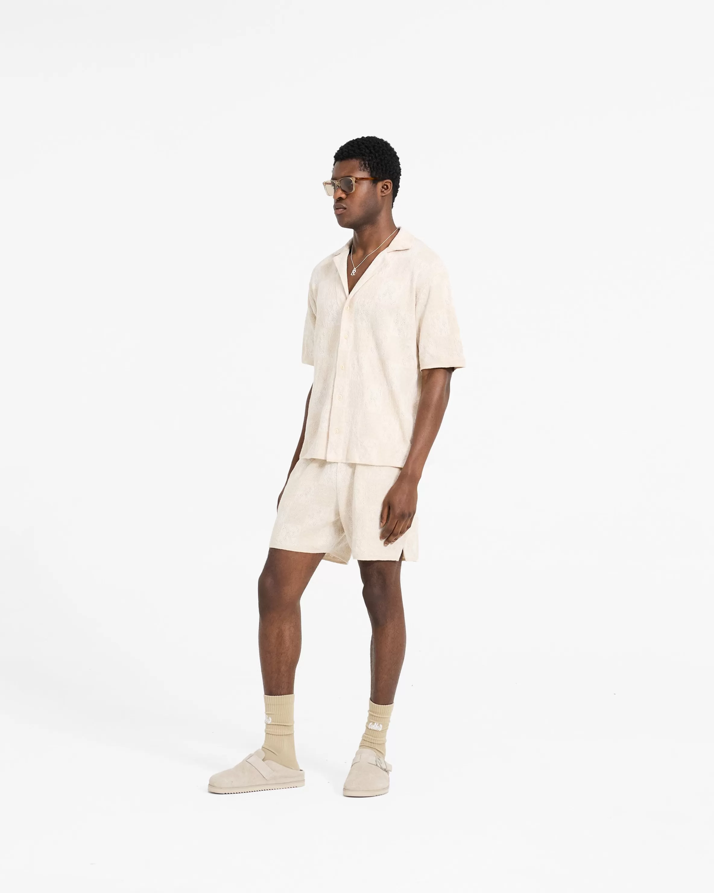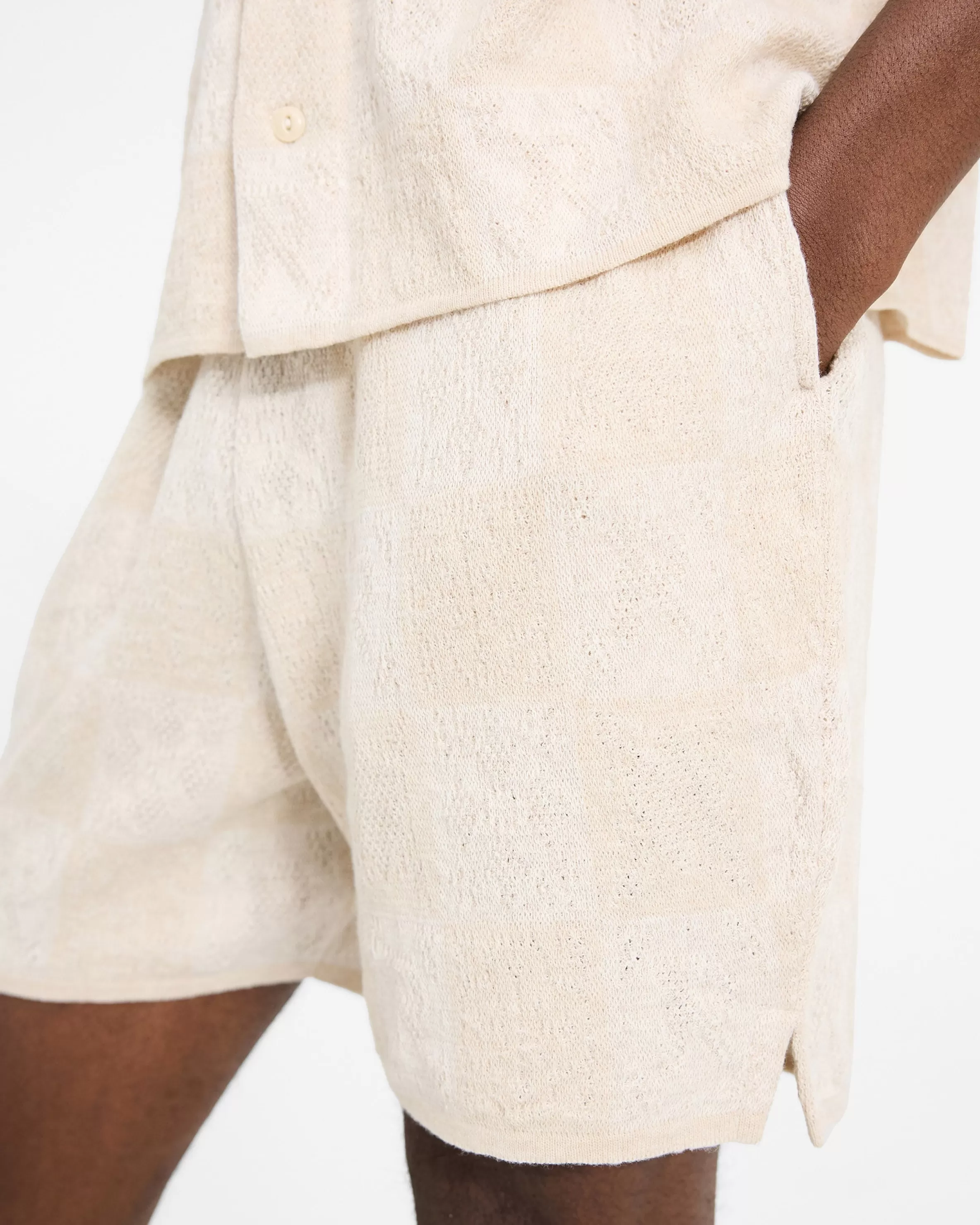 Introducing the Crochet Knit Shorts, a relaxed and drapey short style, crafted from a lightweight crochet knit fabric. T…