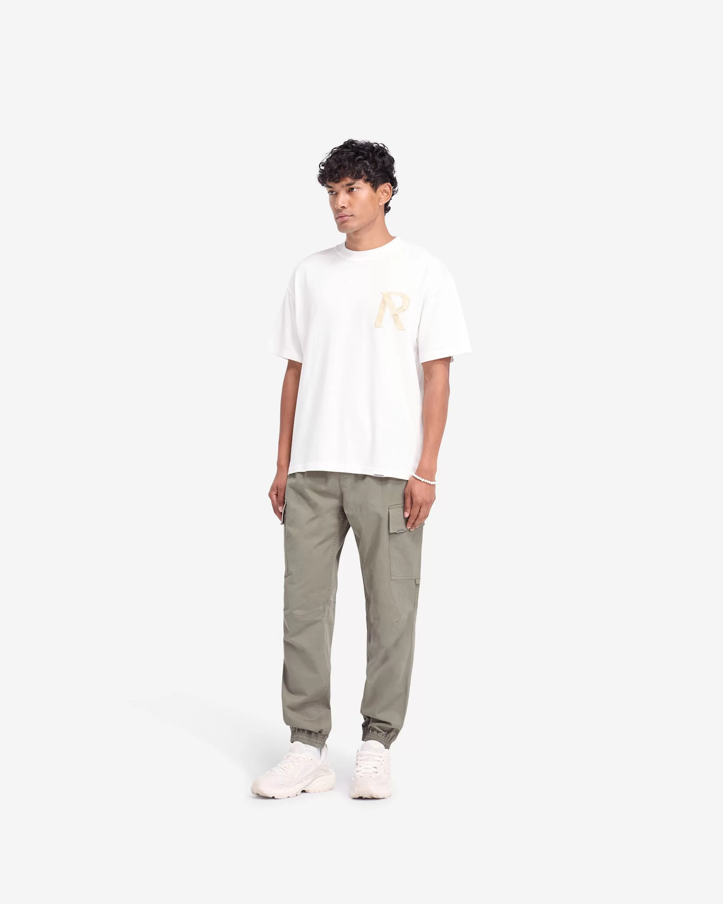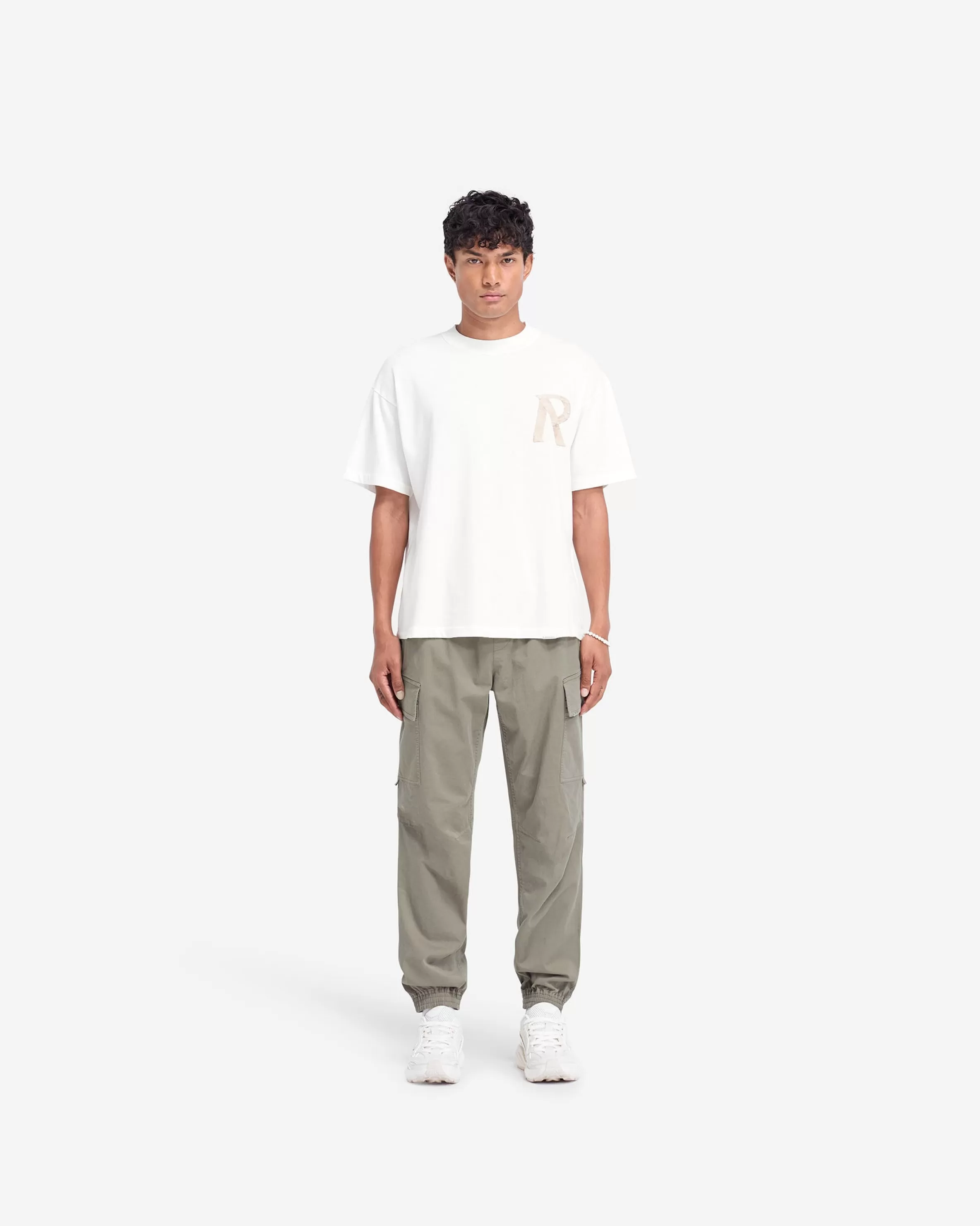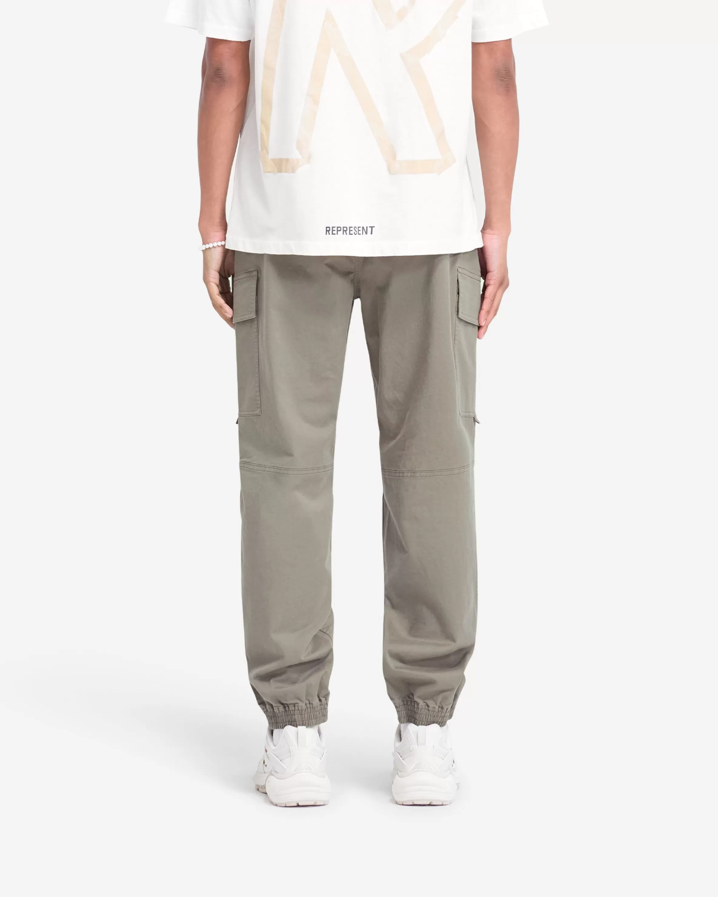 Introducing the Cuffed Cargo Pant in Olive, a contemporary take on the classic cargo silhouette, with a more regular fit from our baggier styles. These cargos feature an elasticated waistband with an internal drawcord. They have side pockets and cargo pockets with a Represent metal bar logo to the pocket flap. The cargos are finished with elasticated cuffs. Olive Cargo Pants Elasticated Cuffs Elasticated Waistband Cargo Pockets Metal Bar Logo Composition: Outer: 97% Cotton, 3% ElastaneLining: 100% Cotton Product Care: Machine wash at 30 degrees celsius. Do not bleach, tumble dry or dry clean. Iron on medium heat. Wash with similar colours inside out. Do not pile whilst damp. Iron on reverse. Do not rub isolated stains. Model is 188cm and 75kg wearing size MProduct