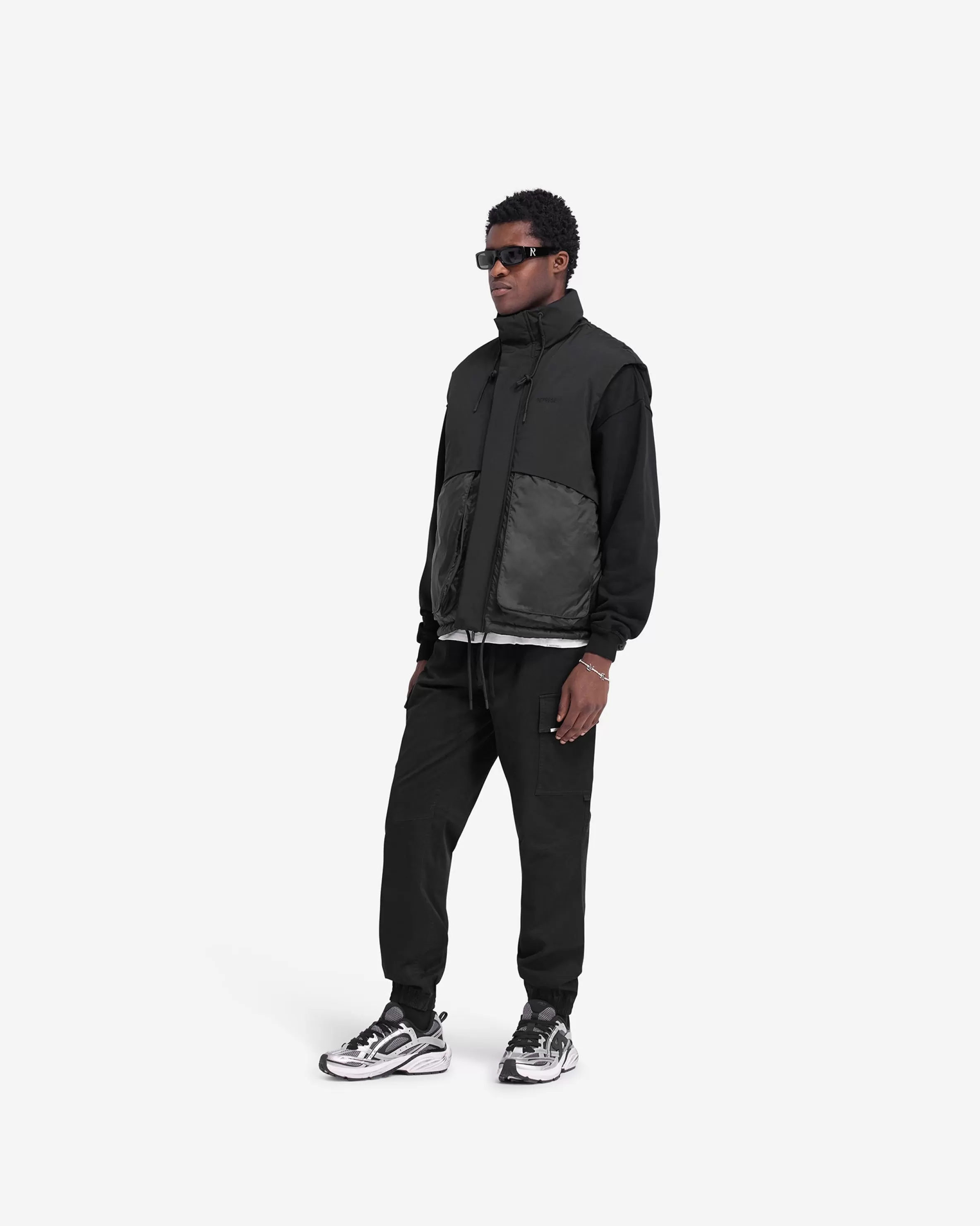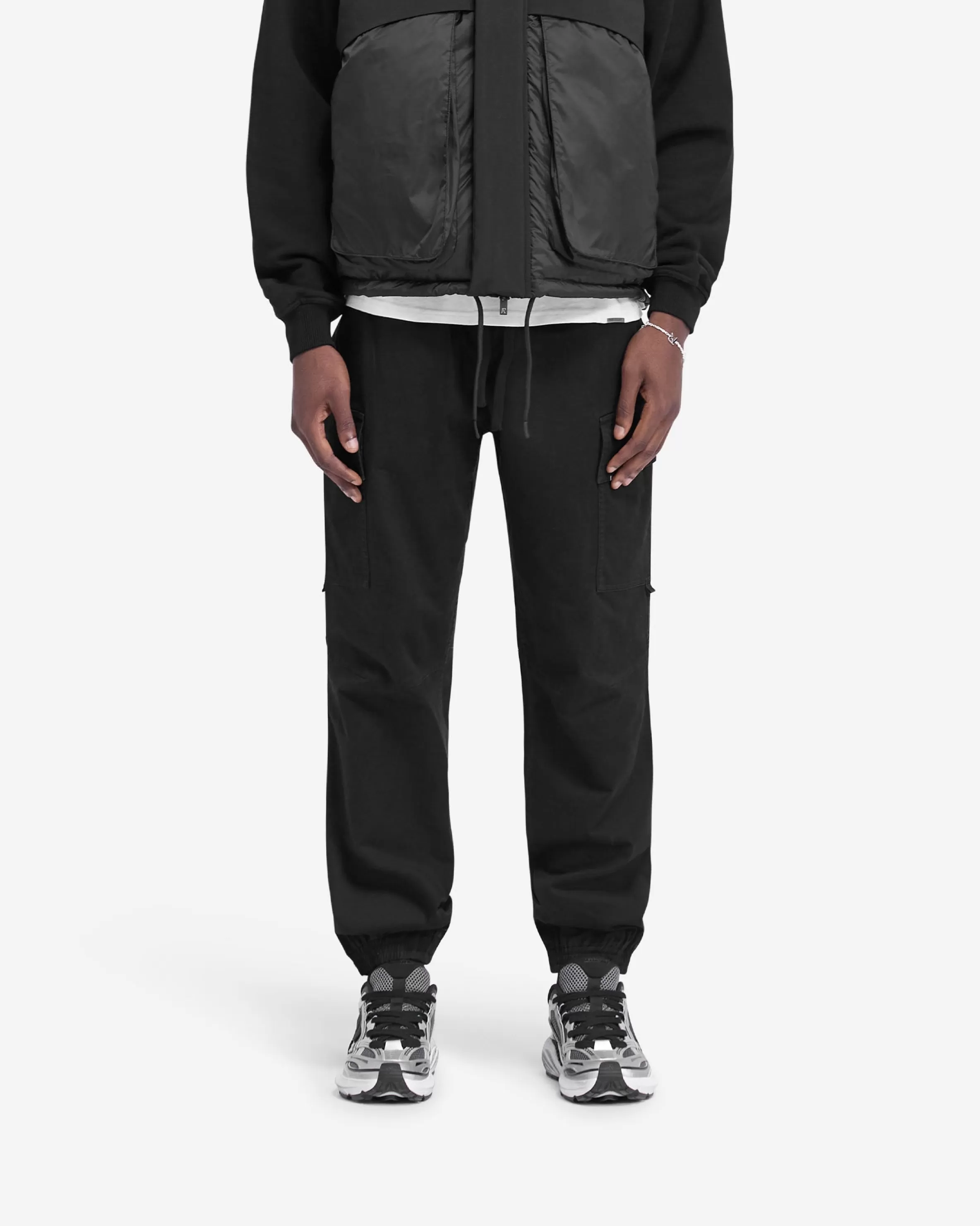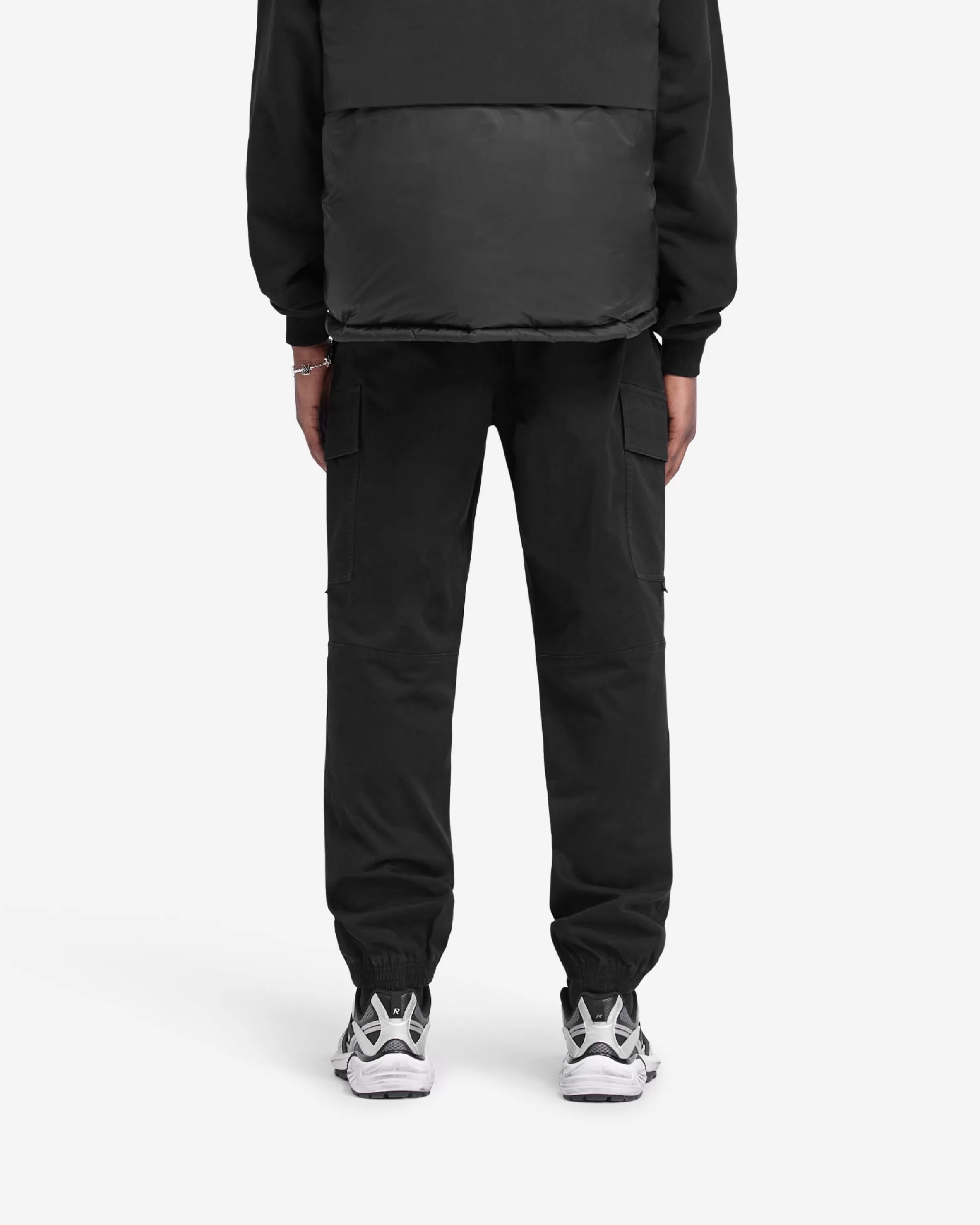 Introducing the Cuffed Cargo Pant in Black, a contemporary take on the classic cargo silhouette, with a more regular fit…