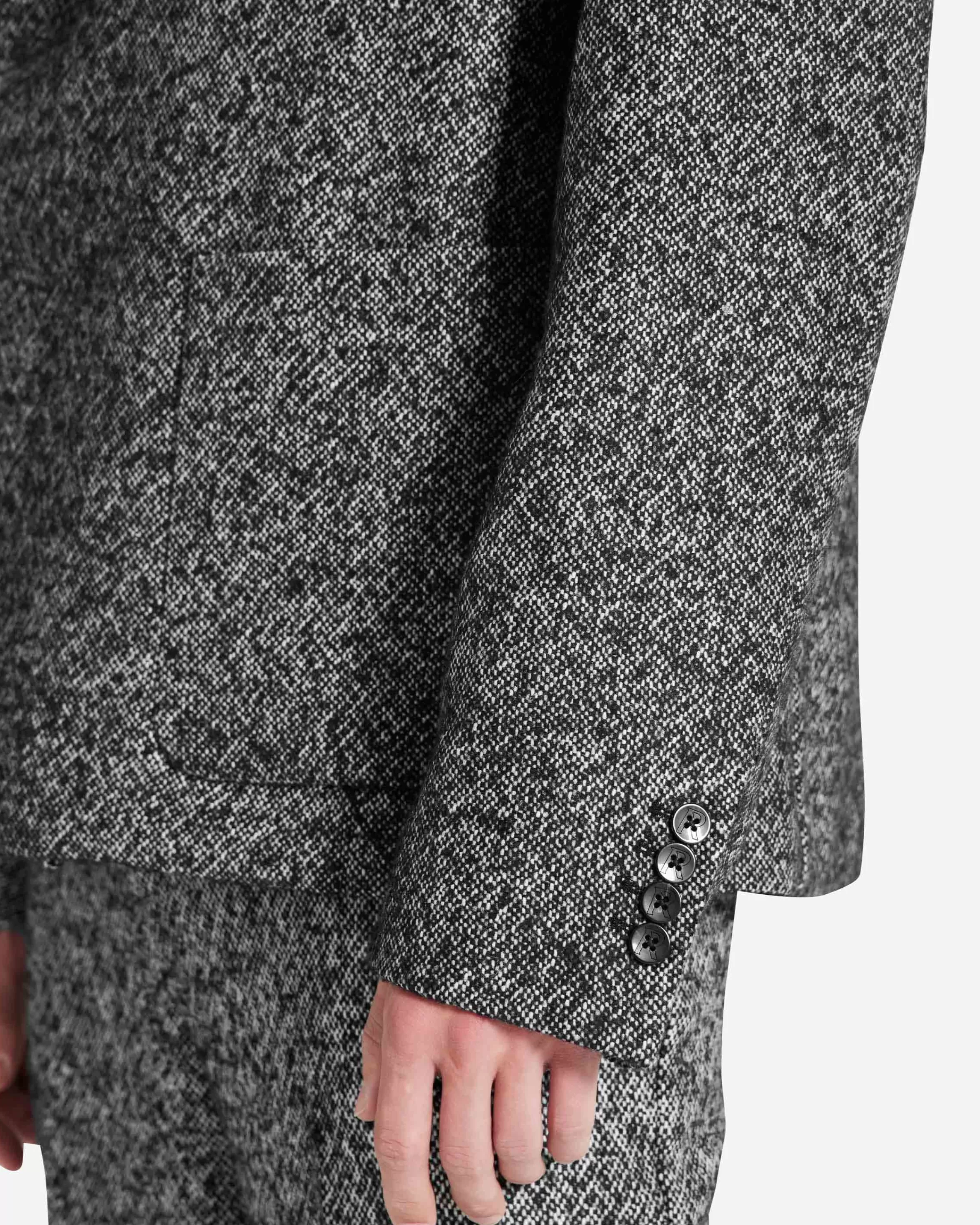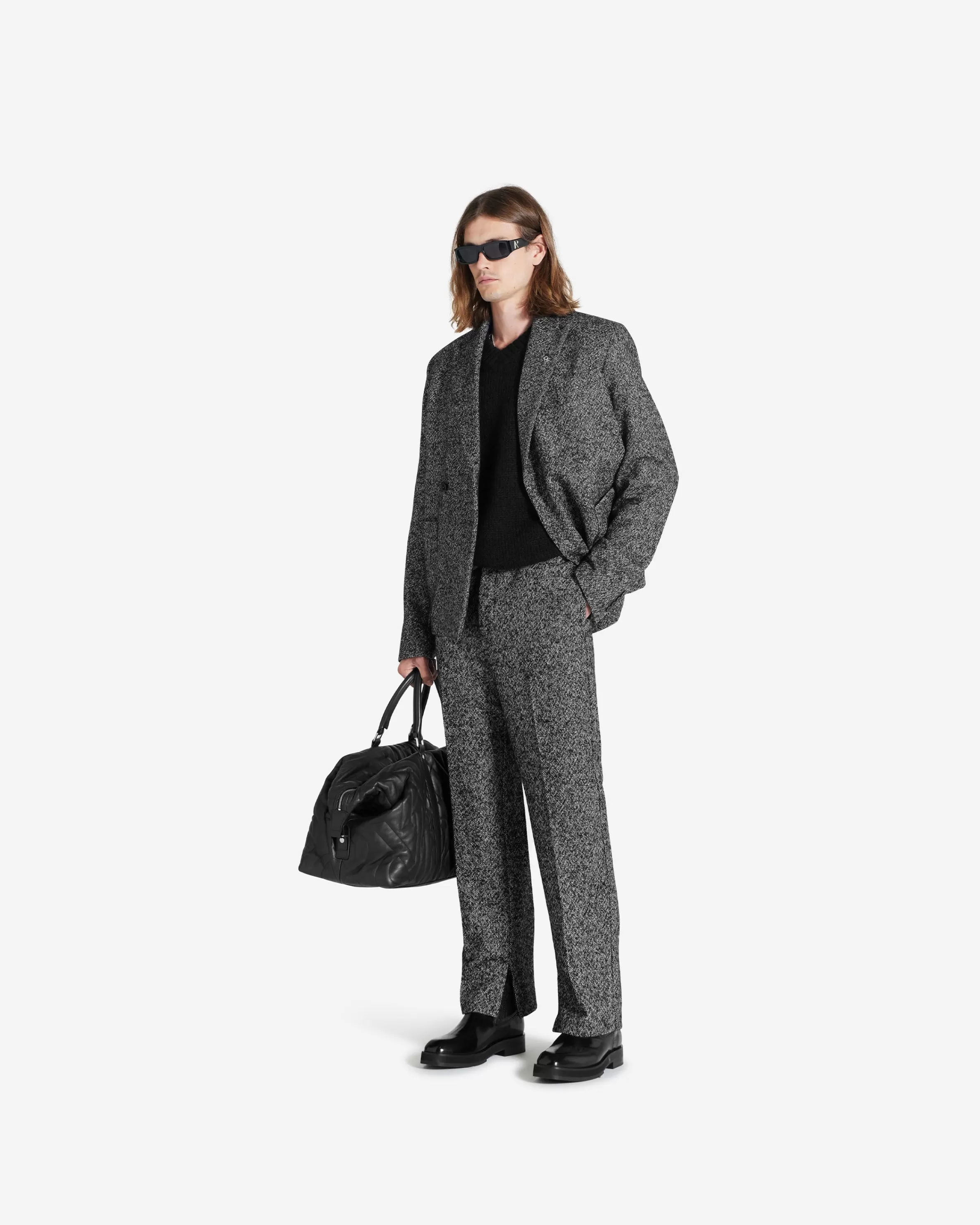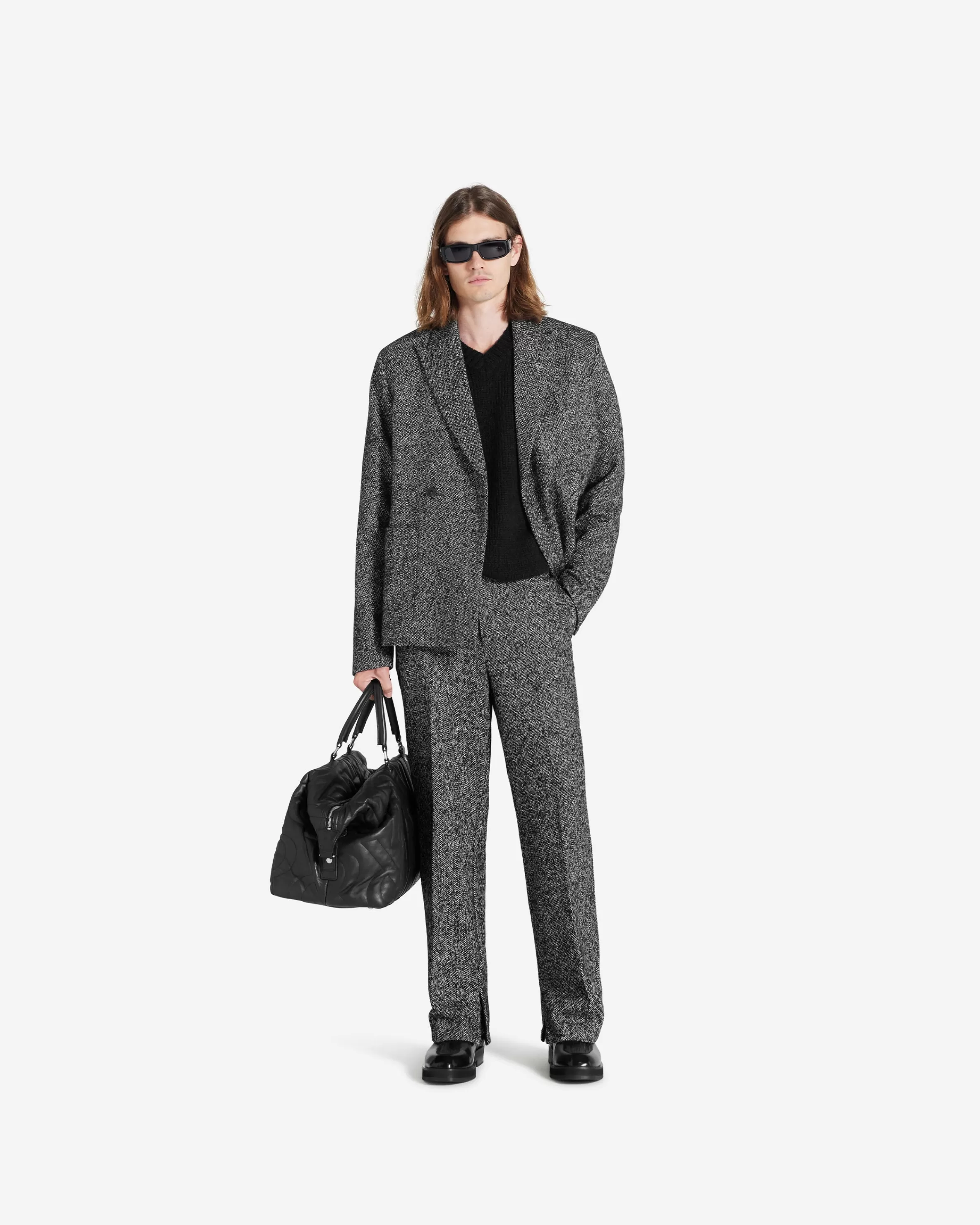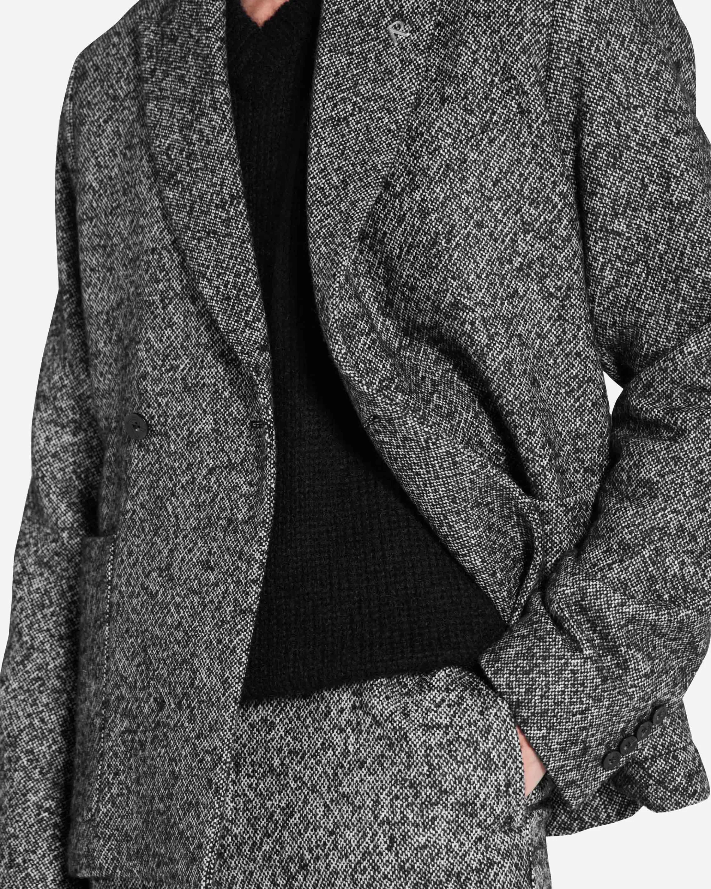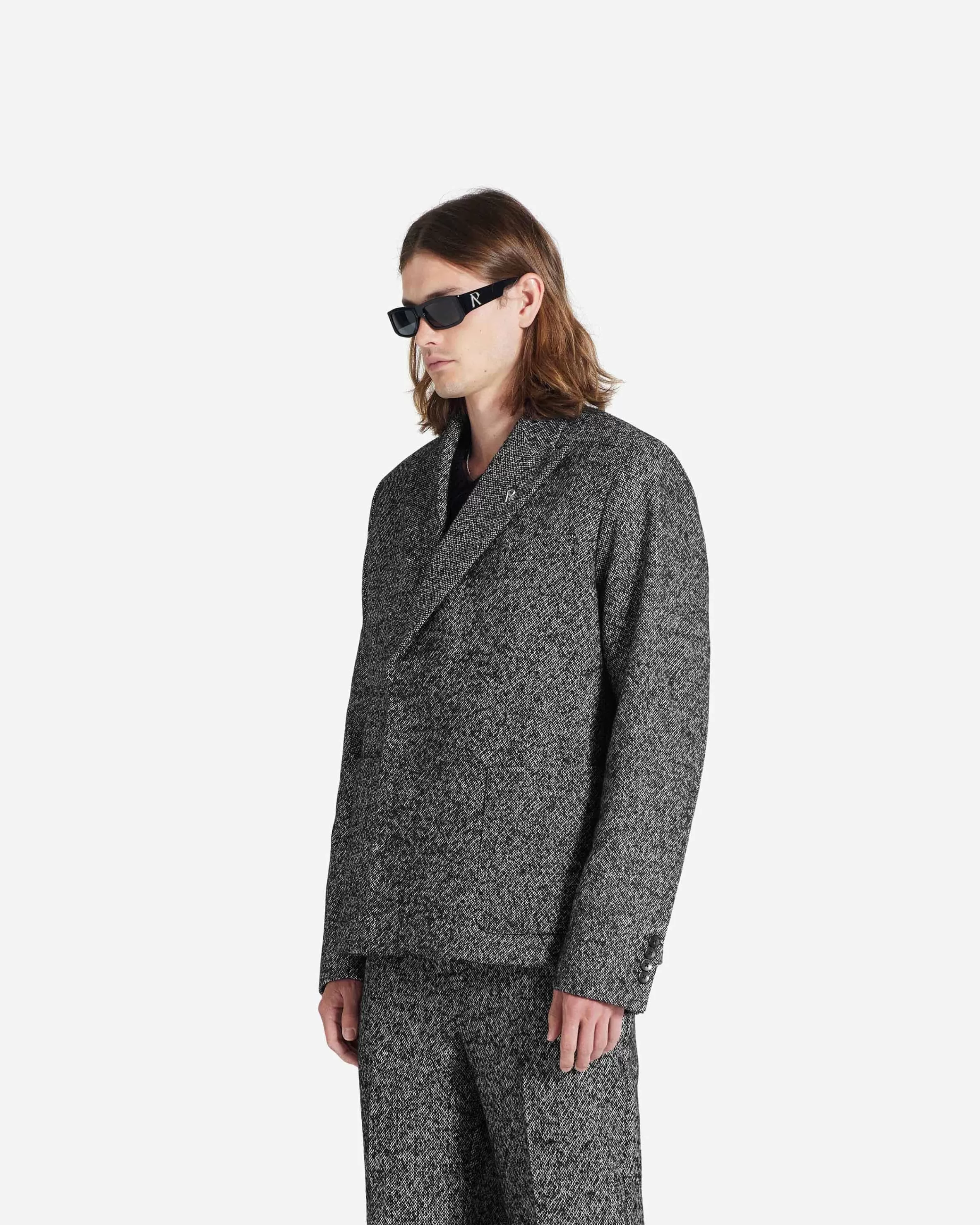 This item purchased in the Black Friday Sale is final sale and cannot be returned or exchanged. The Double Breasted Blazer in woven black and white Marble yarn has a natural tailored fit with a peak lapel. It has Initial engraved buttons to the front. The blazer is lined with Represent jacquard viscose and is finished with an Initial logo pin to the lapel. Double Breasted Blazer Jet Black Tailored Fit Initial engraved Buttons Represent Jacquard Viscose Lining Initial Logo Pin Composition:Outer: 48% Acrylic, 30% Wool, 14% Polyester, 4% Alpaca, 4% Other FibresLining: 100% ViscoseSpecialised Dry Clean Only Model is 188cm and 78kg wearing size Large.Product