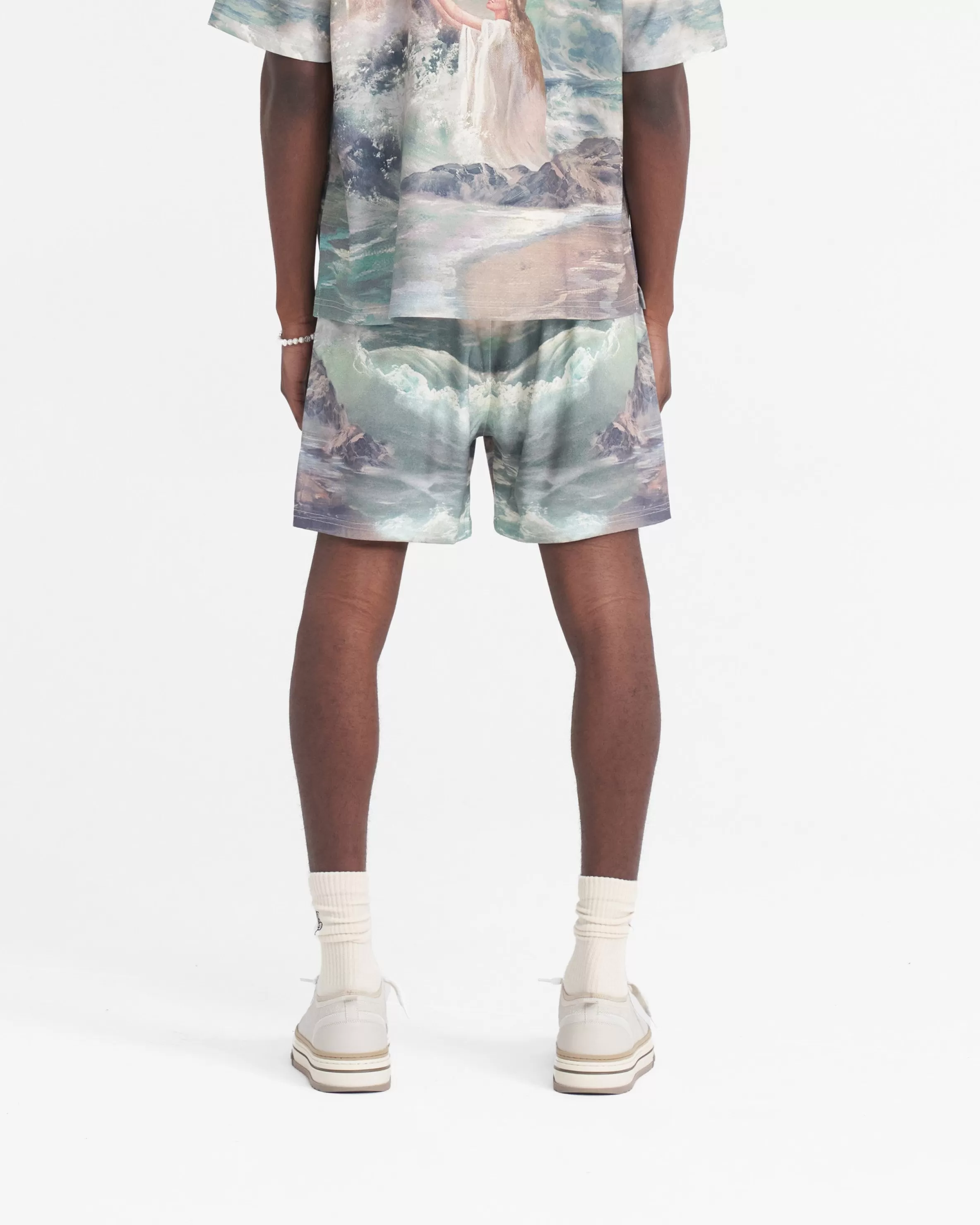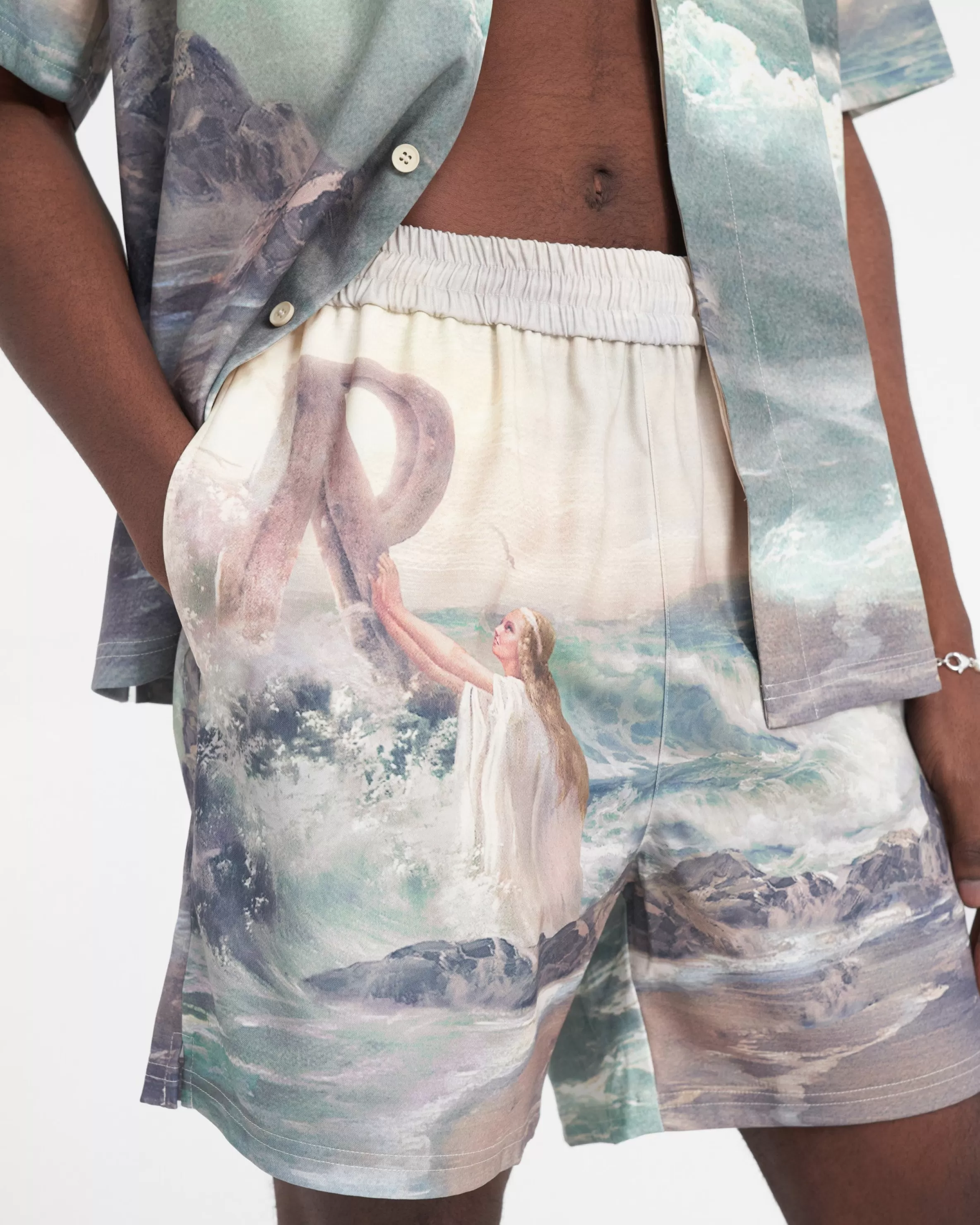 Introducing the Higher Truth Shorts, a relaxed fit short style featuring our full Higher Truth artwork print to the garment, depicting an otherworldly figure reaching to a stone Initial sculpture. The Higher Truth shorts have an elasticated waistband with internal drawcord for an easy adjustable fit, and hand pockets to the side seams. Relaxed Fit Shorts Full Print Artwork Elasticated Waistband Internal Drawcord Composition: 93% Polyester, 7% Elastane Care: We recommend hand washing only in mild detergent and hang dry only. Cool iron on the reverse side. Do not bleach, tumble dry or dry clean. Do not pile whilst damp. Model is 182cm and 73kg wearing size MediumProduct