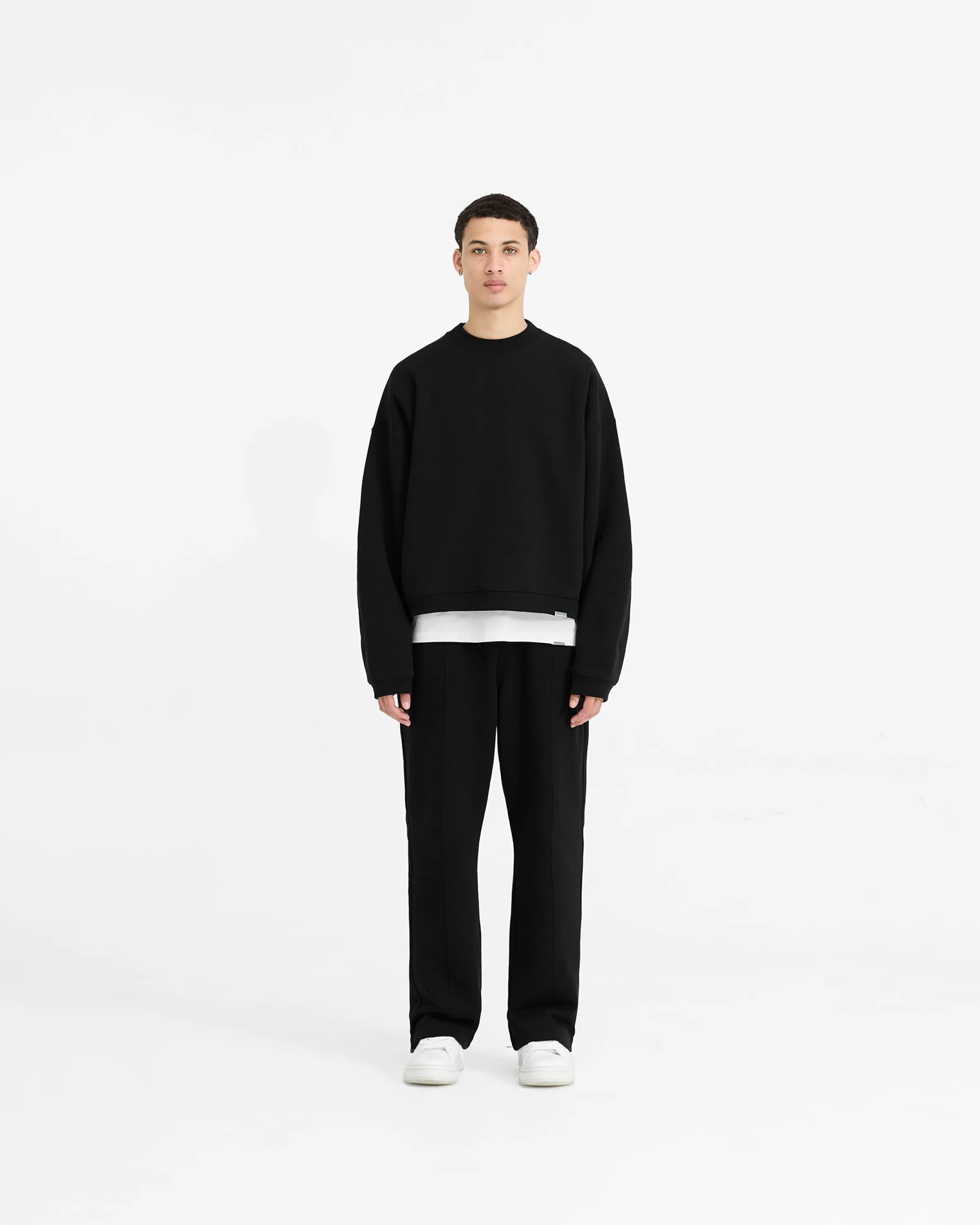 The Initial Boxy Sweater in black is crafted from a heavyweight (500gsm) brushed back fleece cotton. It is a new fit sty…