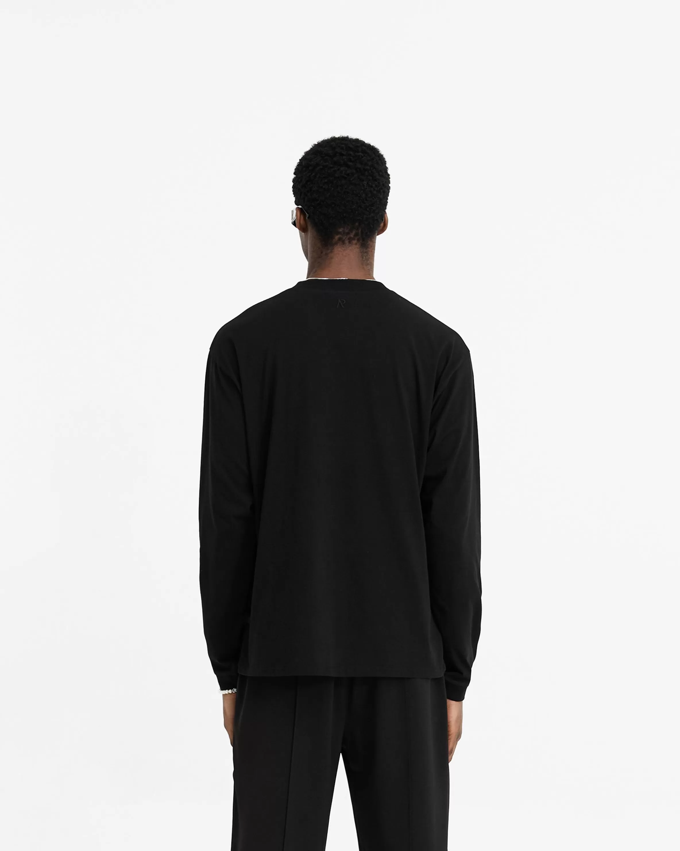 The Initial Long Sleeve T-Shirt in black has a regular fit to the chest and hem, crafted from 180gsm jersey cotton. It h…