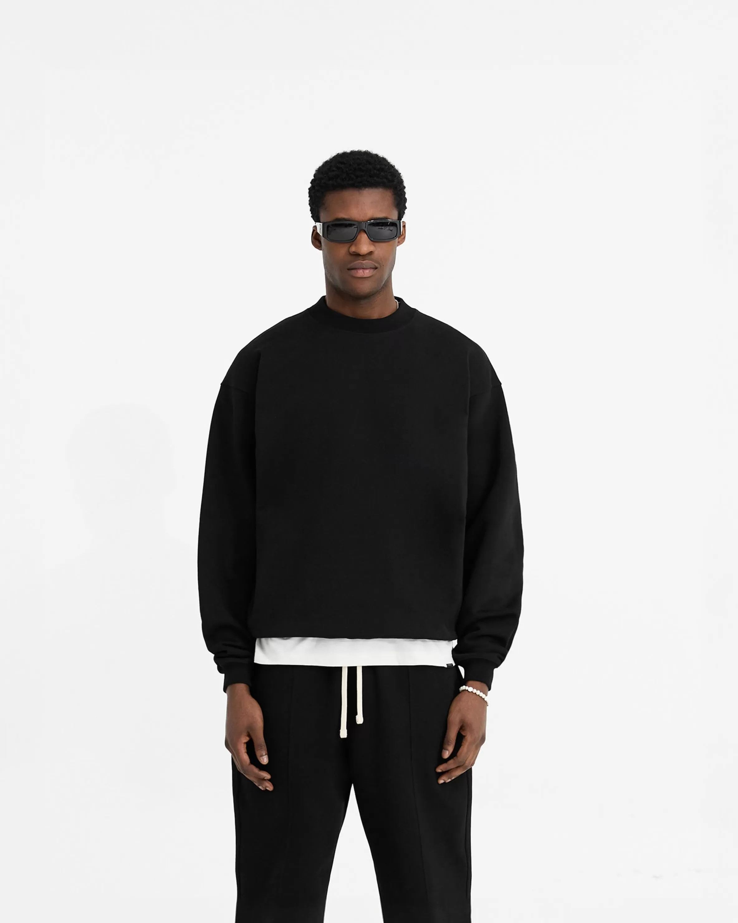 The Initial Oversized Sweater in black is crafted from a heavyweight 100% loopback jersey organic cotton. It has the sam…