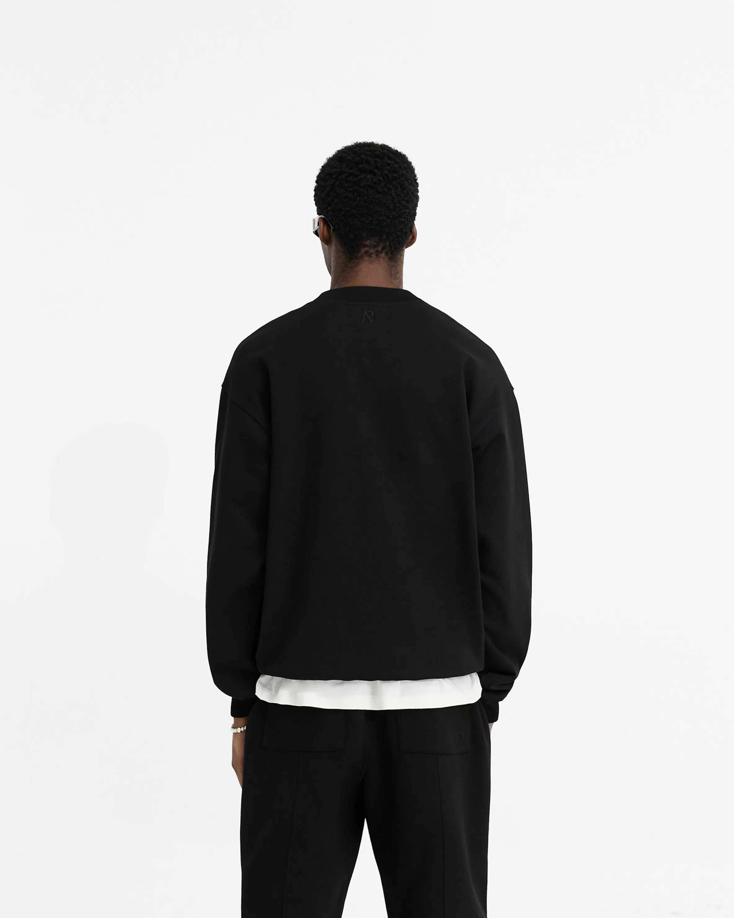 The Initial Oversized Sweater in black is crafted from a heavyweight 100% loopback jersey organic cotton. It has the same slightly oversized fit as the sweaters from our bestselling Owners’ Club collection, with a 1×1 rib to the hem and cuffs. The Initial Sweater is finished with an embroidered Initial to the back neck and Represent metal bar logo to the hem. Black Sweater Slightly Oversized Owners’ Club Fit Loopback Jersey Organic Cotton 1×1 Rib Embroidered Initial u0026amp; Represent Metal Bar Composition: 100% Organic Cotton480gsm Note: Do not hang this garment. Model is 182cm and 73kg wearing size MProduct