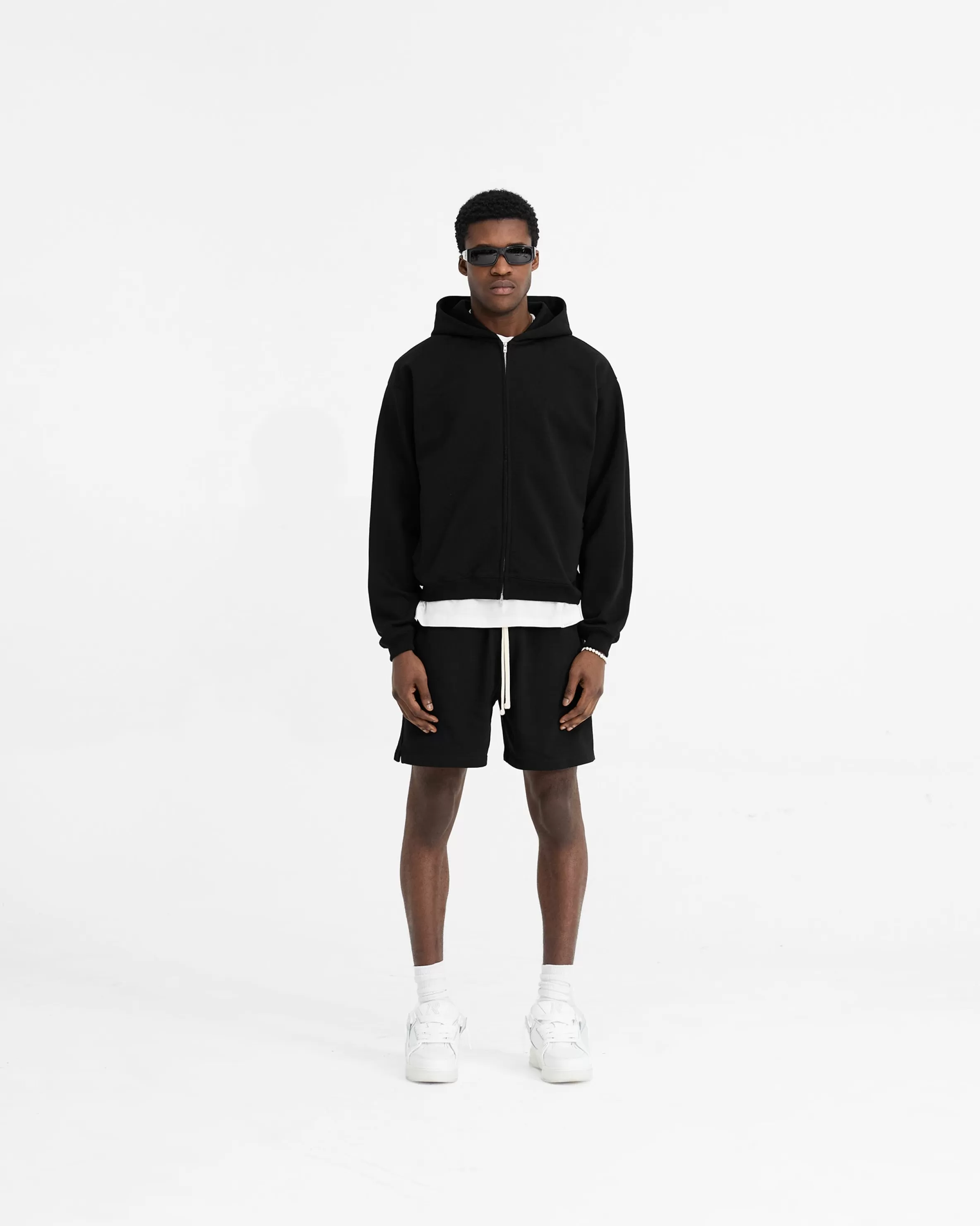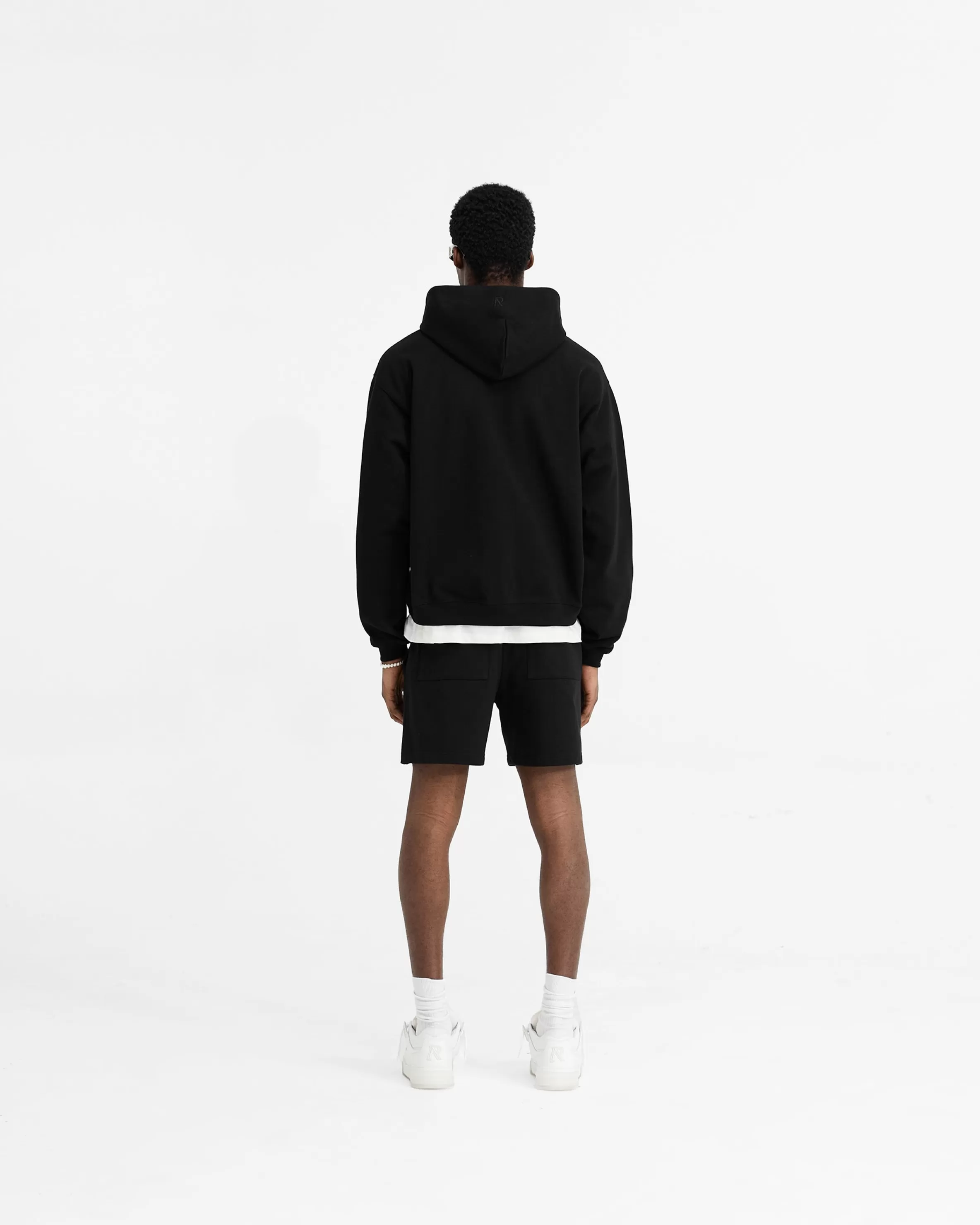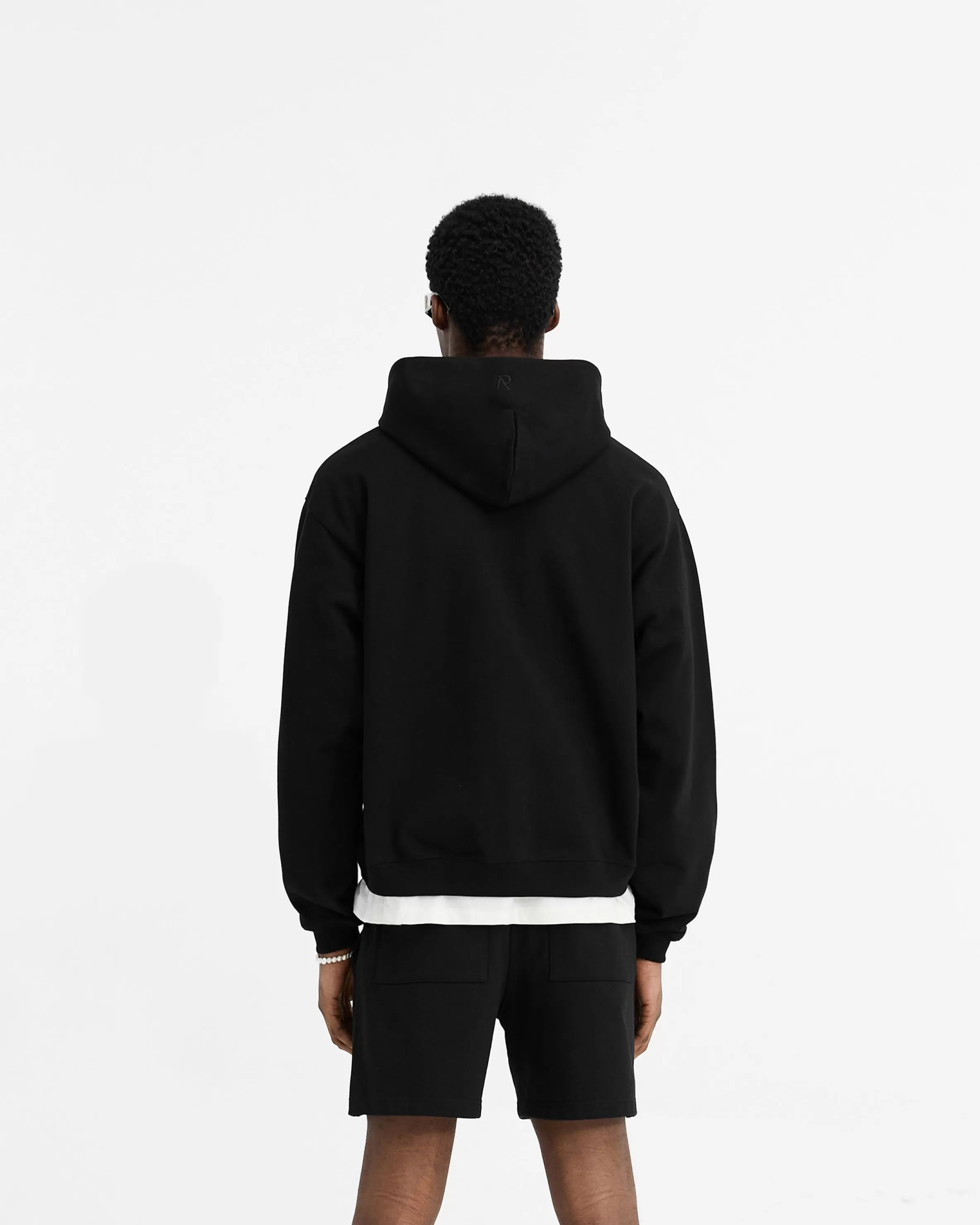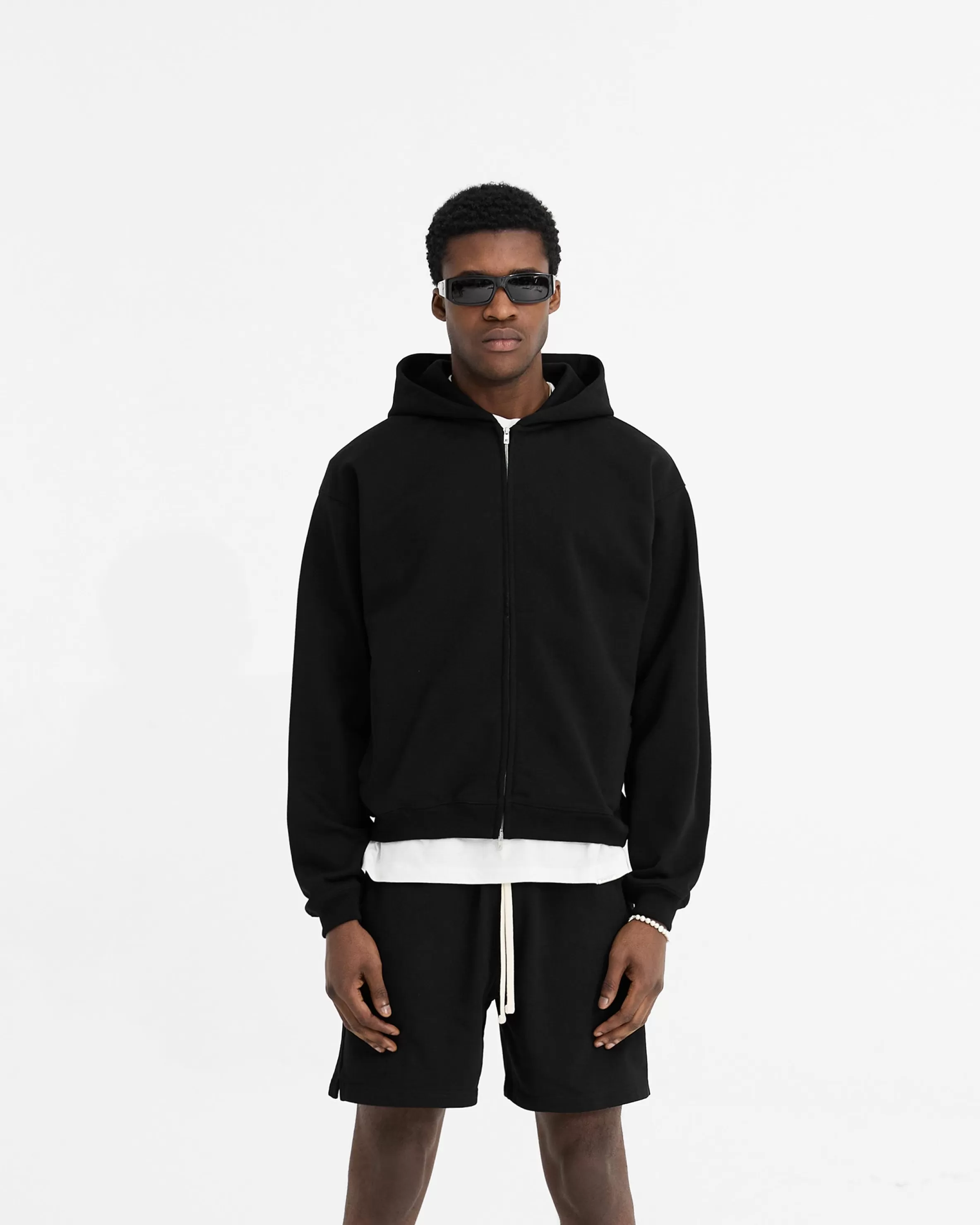 The Initial Oversized Zip Hoodie in black is crafted from a heavyweight (480gsm) loopback jersey cotton, with the same s…