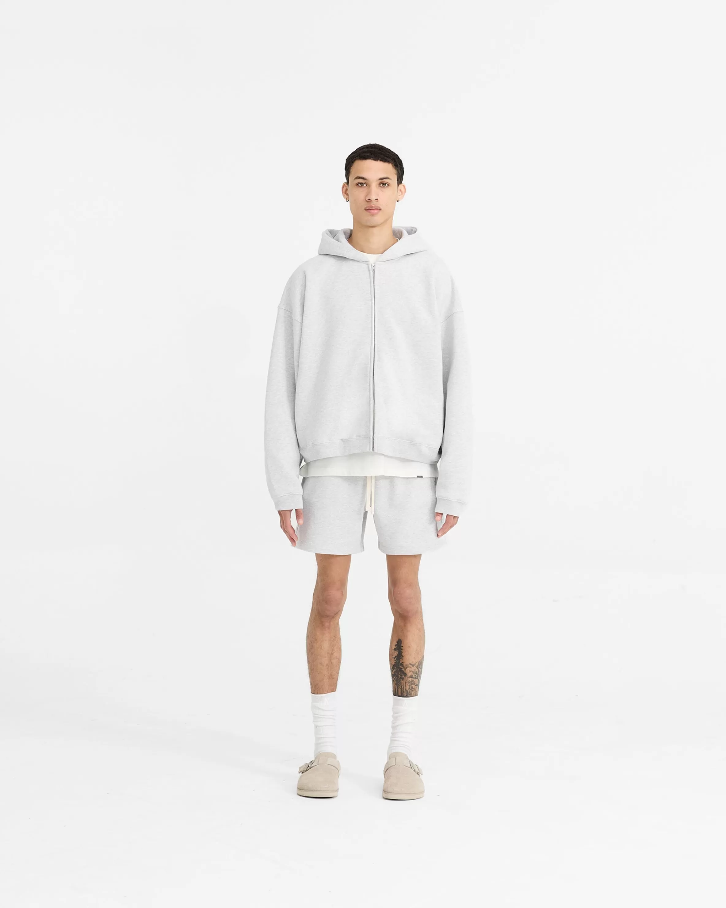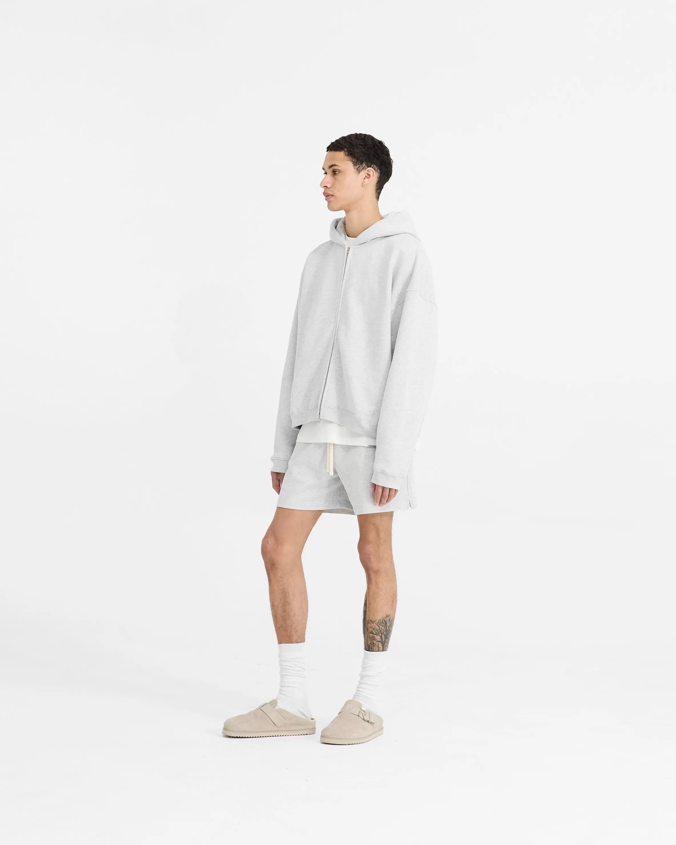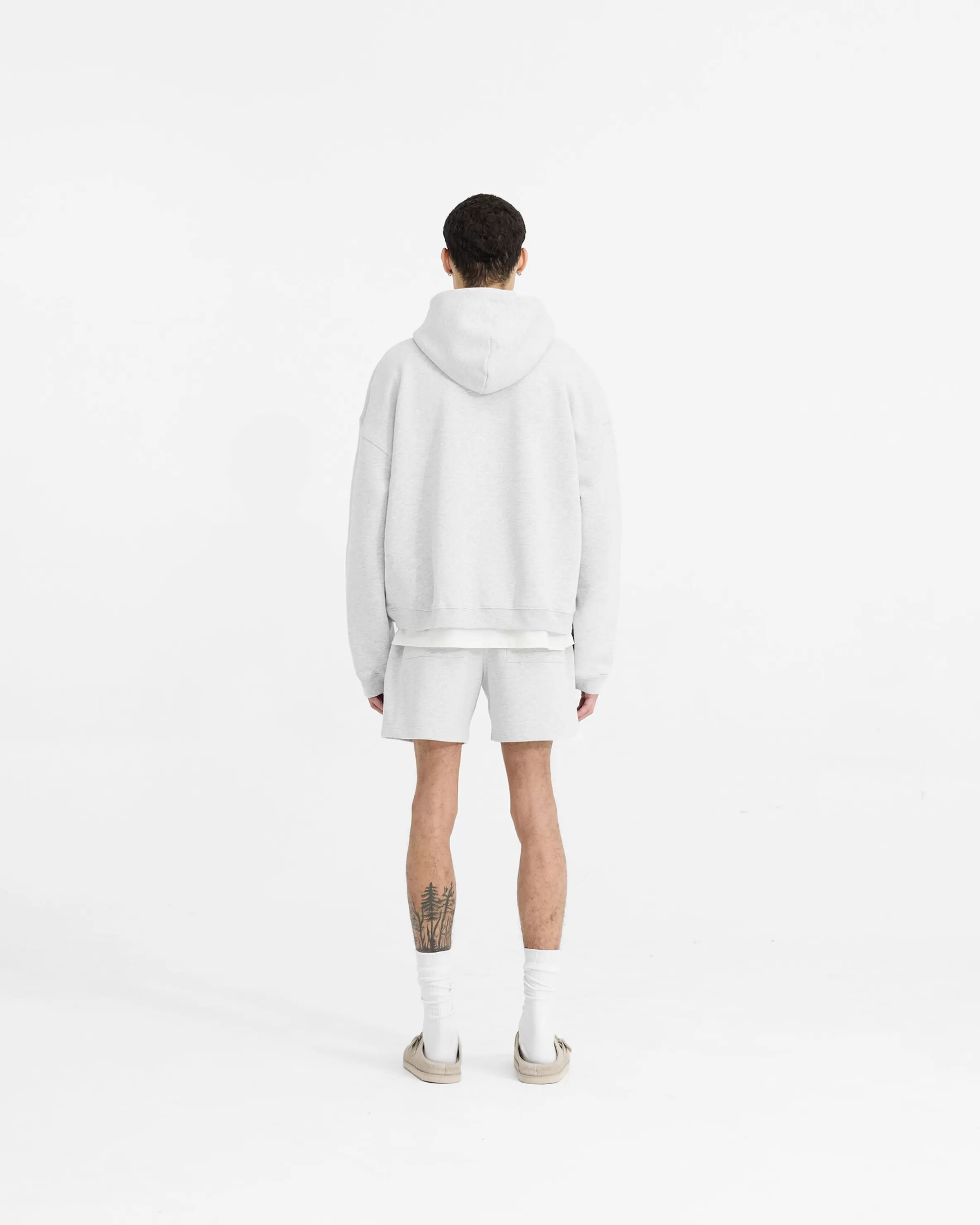 The Initial Sweatshorts in ice grey marl are crafted from heavyweight (480gsm) cotton. They are an oversized boxy fit u…