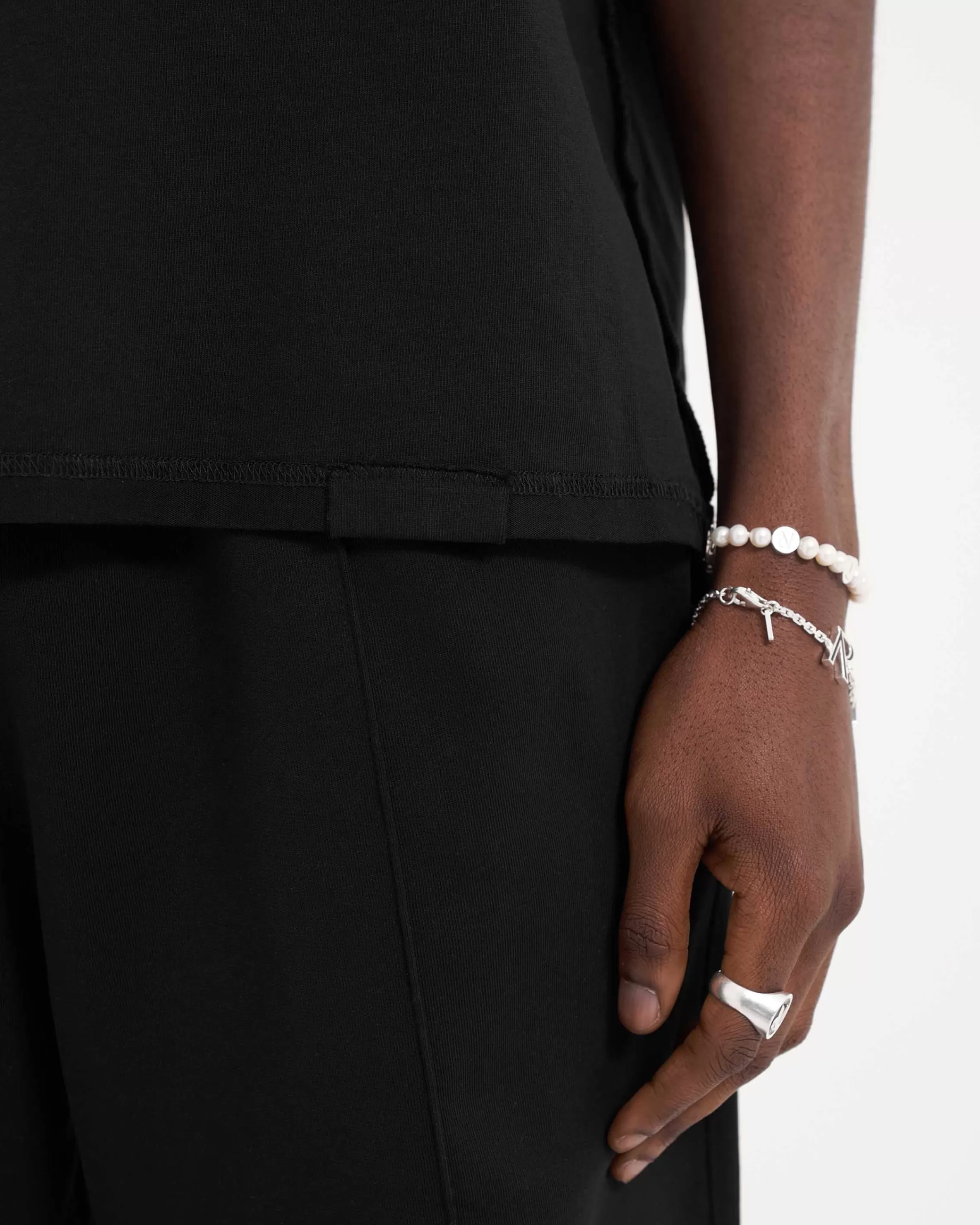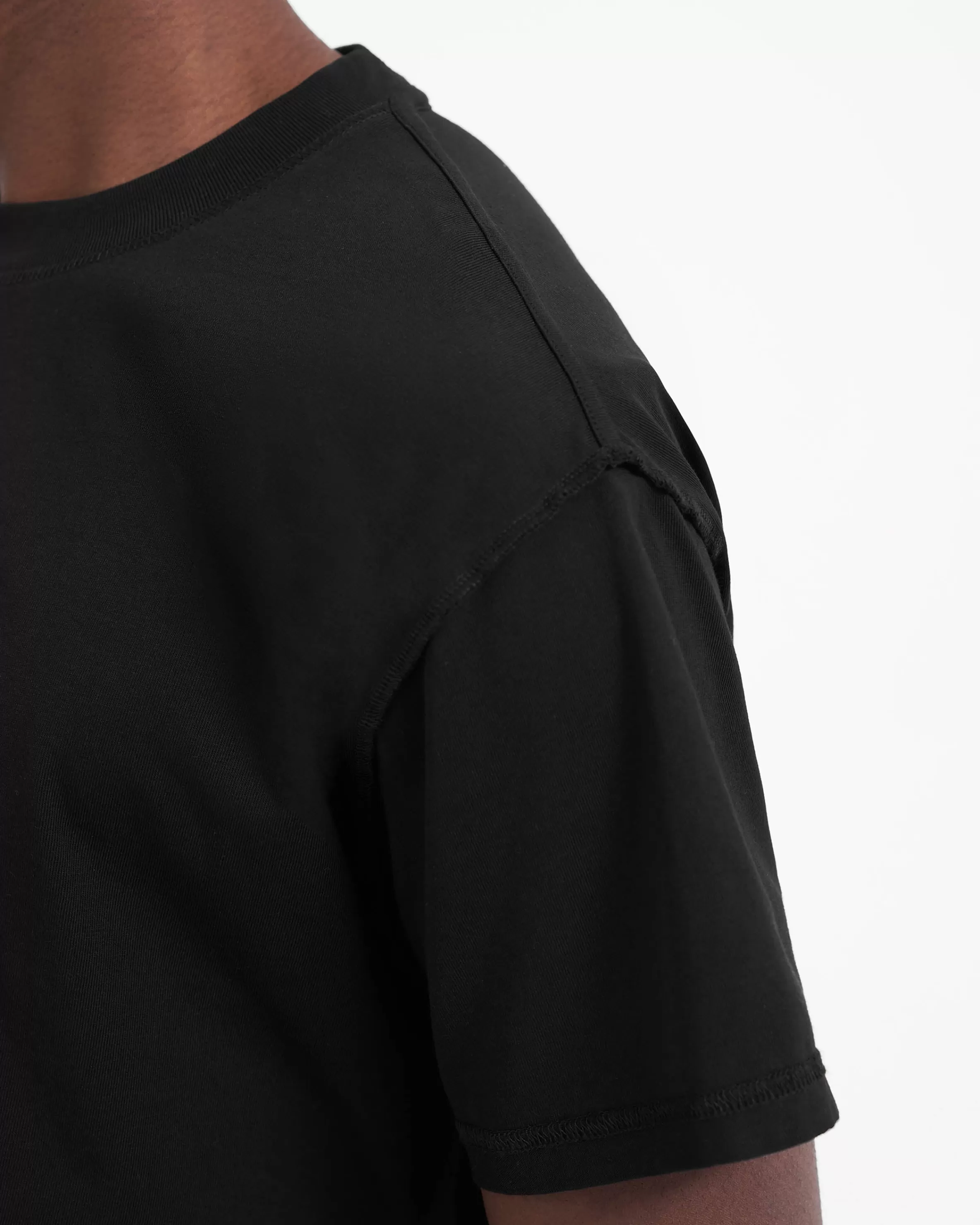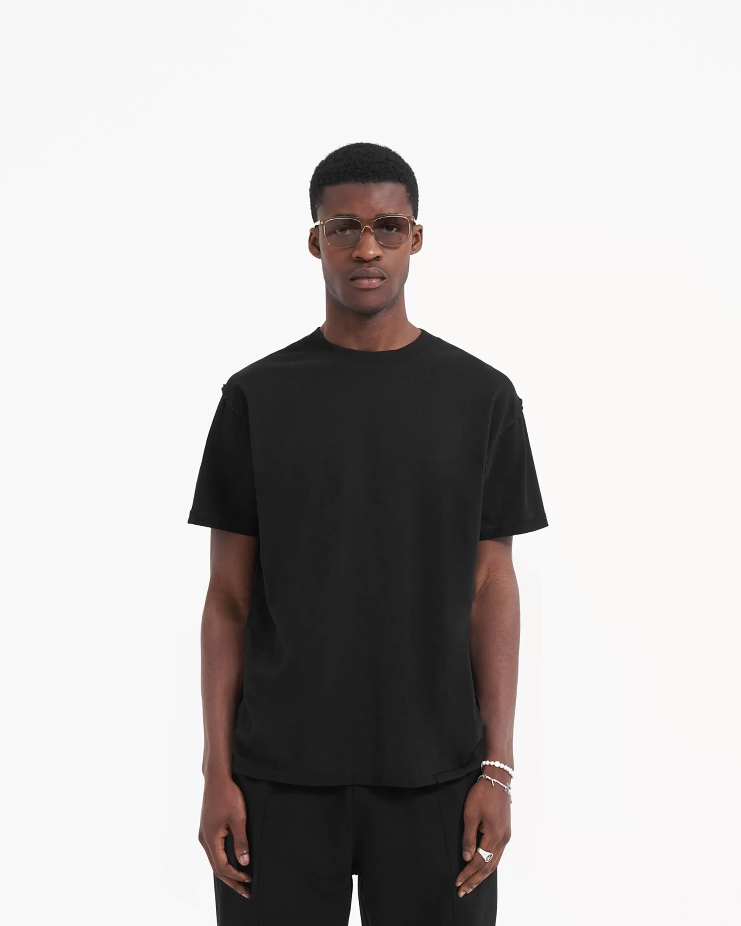 This item purchased in the Black Friday Sale is final sale and cannot be returned or exchanged. Introducing the Initial T-Shirt in Black, a slightly oversized t-shirt crafted from 205gsm jersey cotton. Featuring external overlock seams, a new collar shaping in a one by one rib and a slightly more cropped arm length from our mainline, the Initial T-Shirt is the ideal base garment to exhibit true luxury. The t-shirt is finished with a jersey bar to the hem and embroidered Initial logo to the back of the neck. Black T-Shirt Boxy Fit External Overlock Seams Garment Dyed Embroidered Initial Logo 205gsm Composition: 100% Jersey CottonModel is 187cm and 76kg wearing size MediumProduct