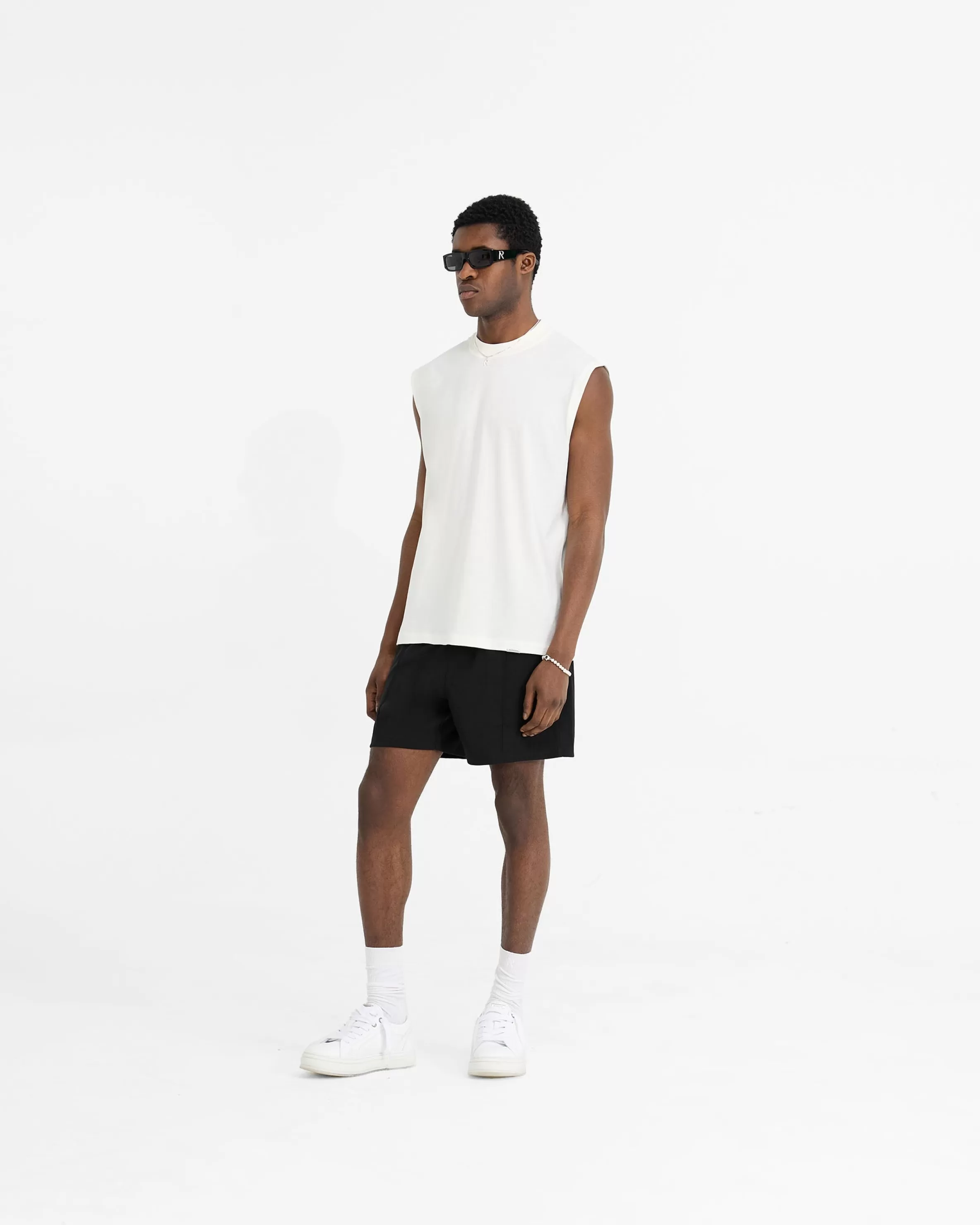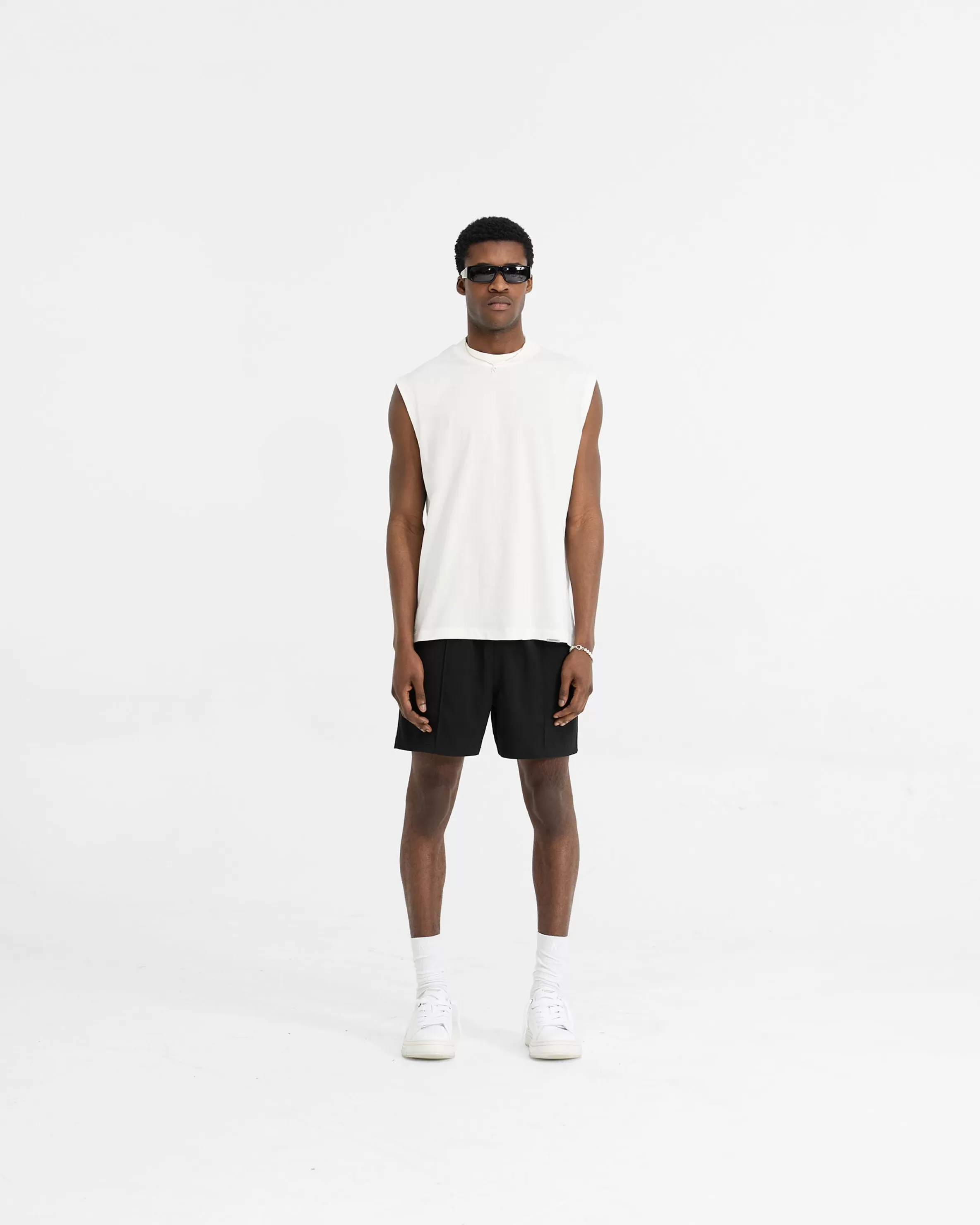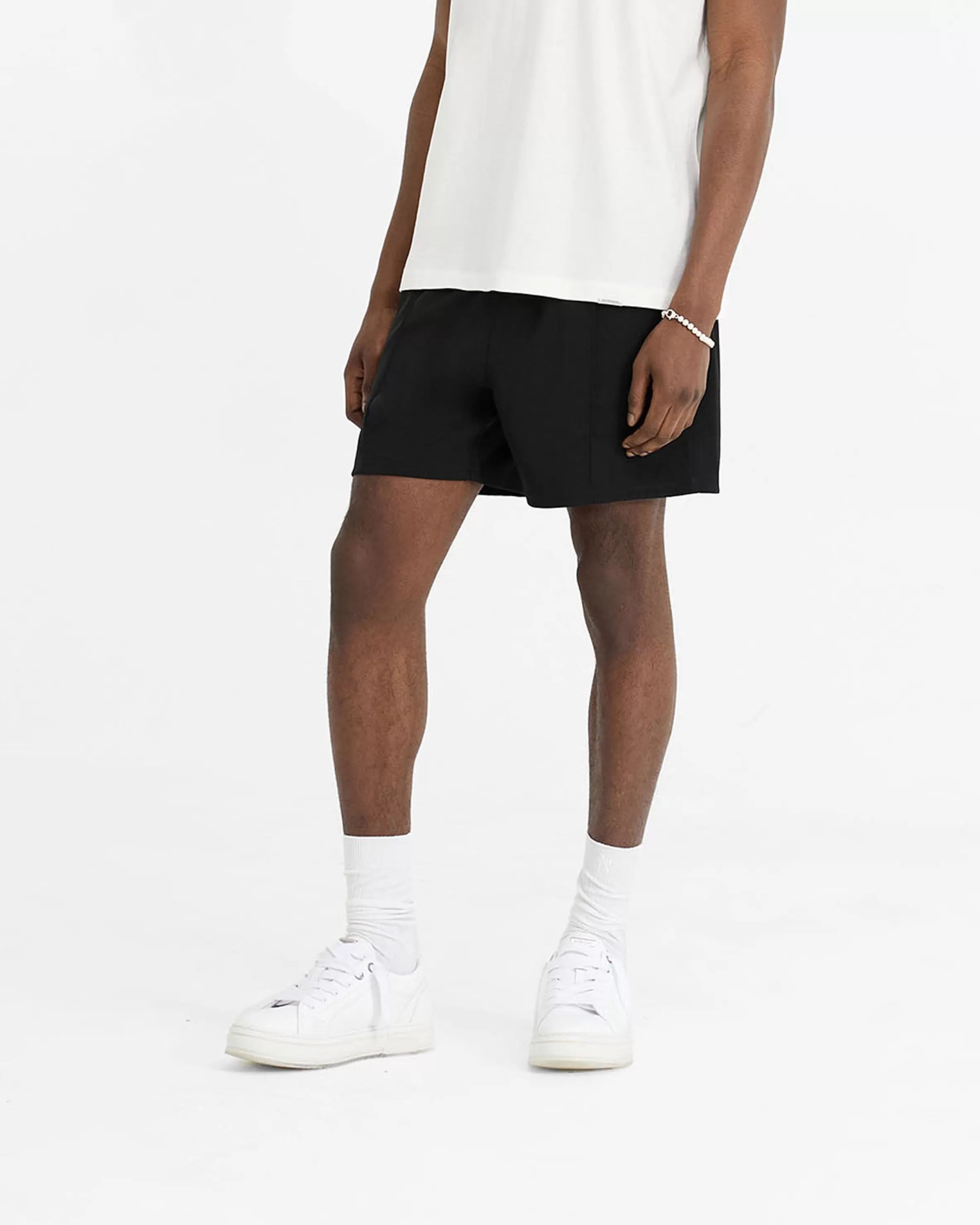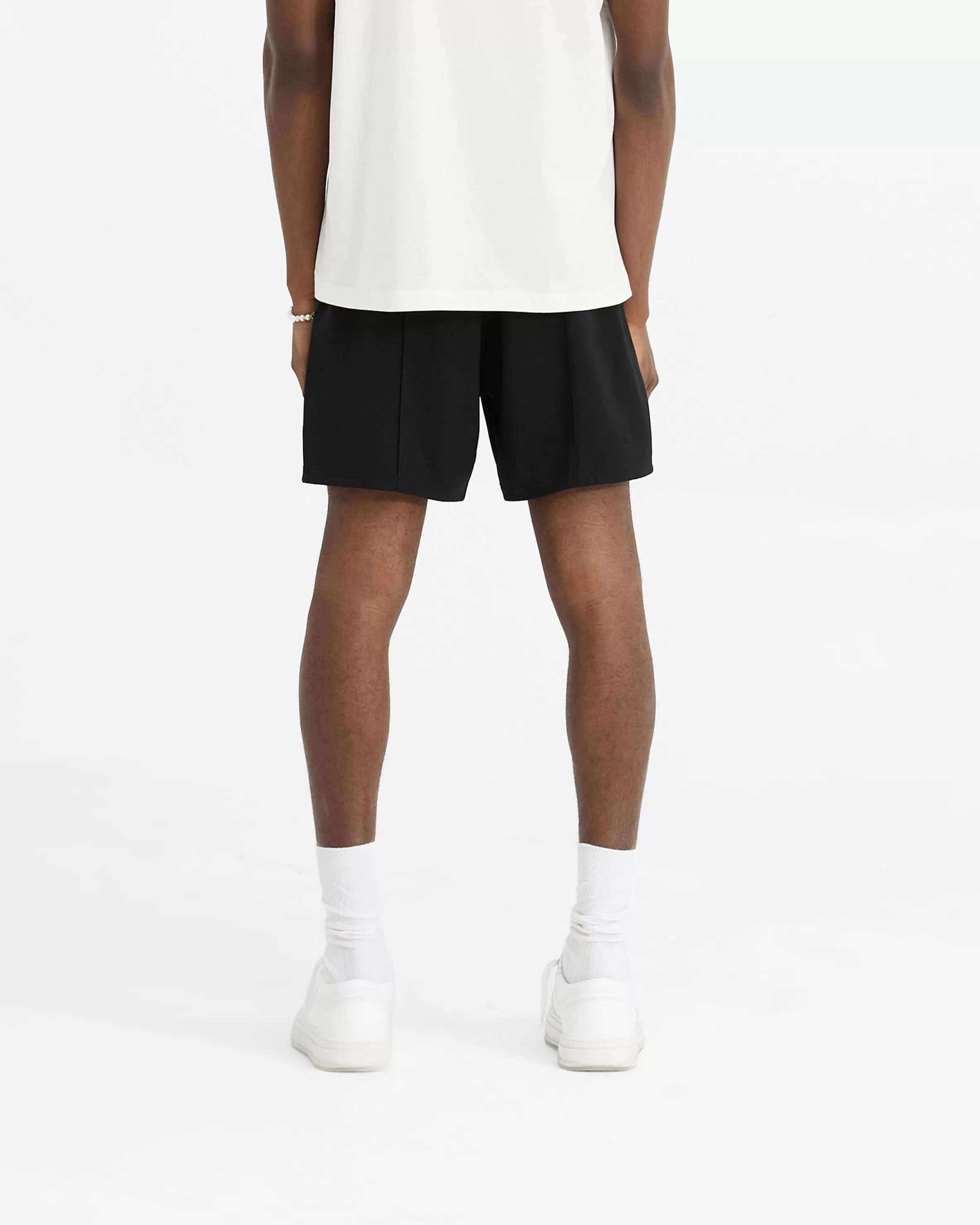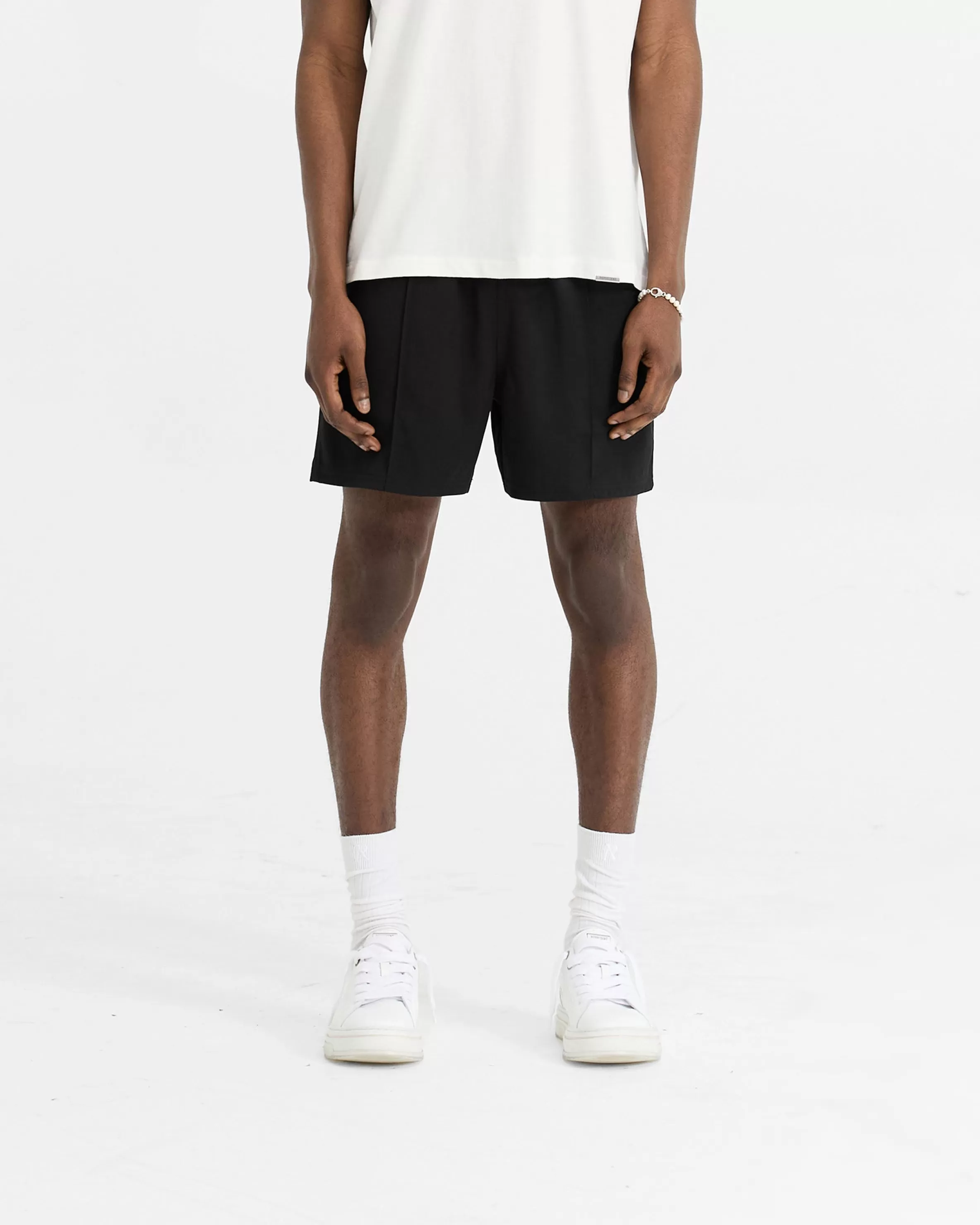 The Initial Track Short in black is a luxury short style for elevated summer styling. It has an elasticated waistband wi…