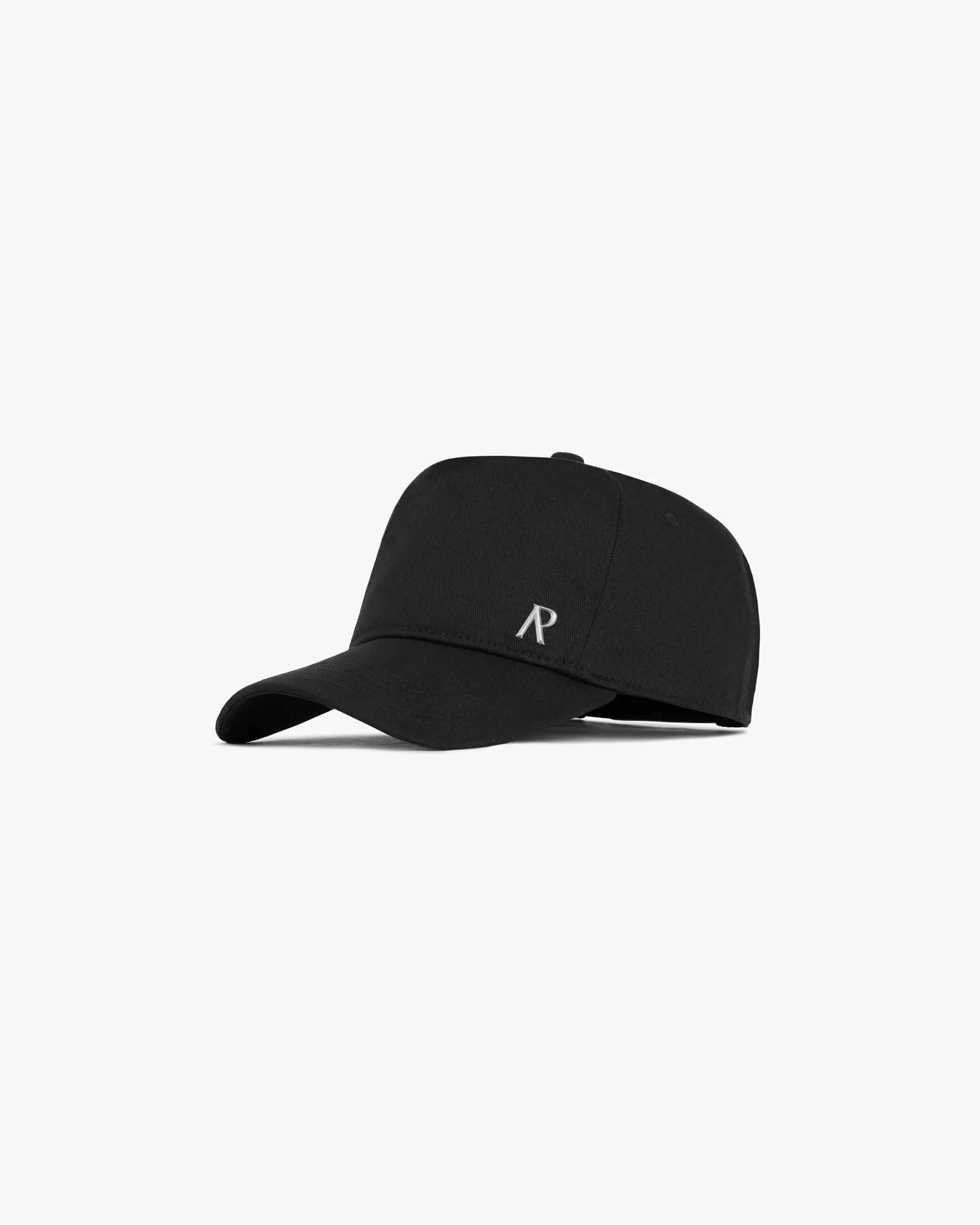 Introducing the Initial Trucker Cap in Jet Black, a luxury minimalist cap with a snapback adjuster and metal Initial pin…