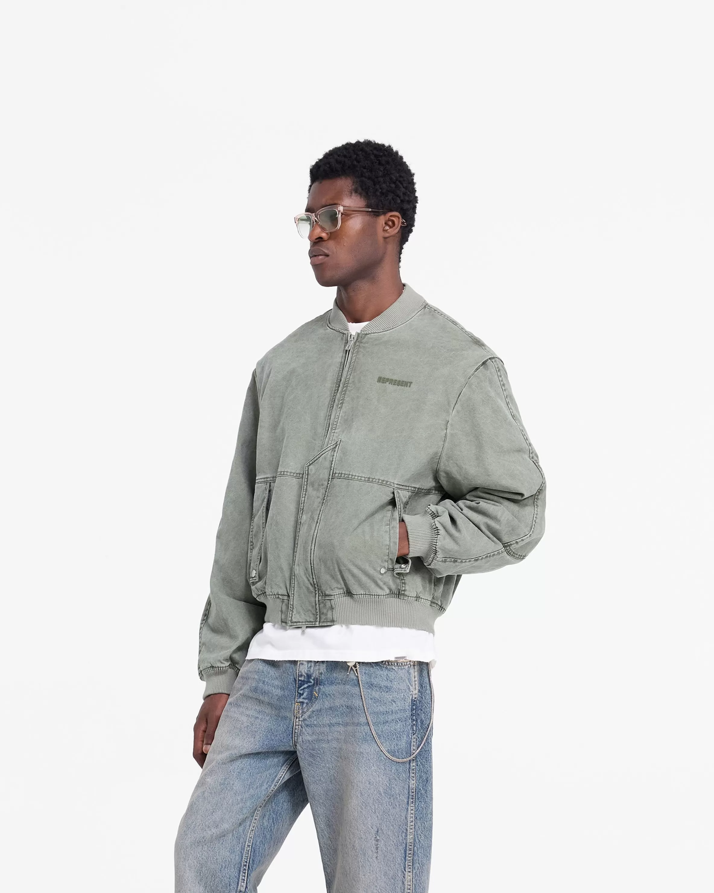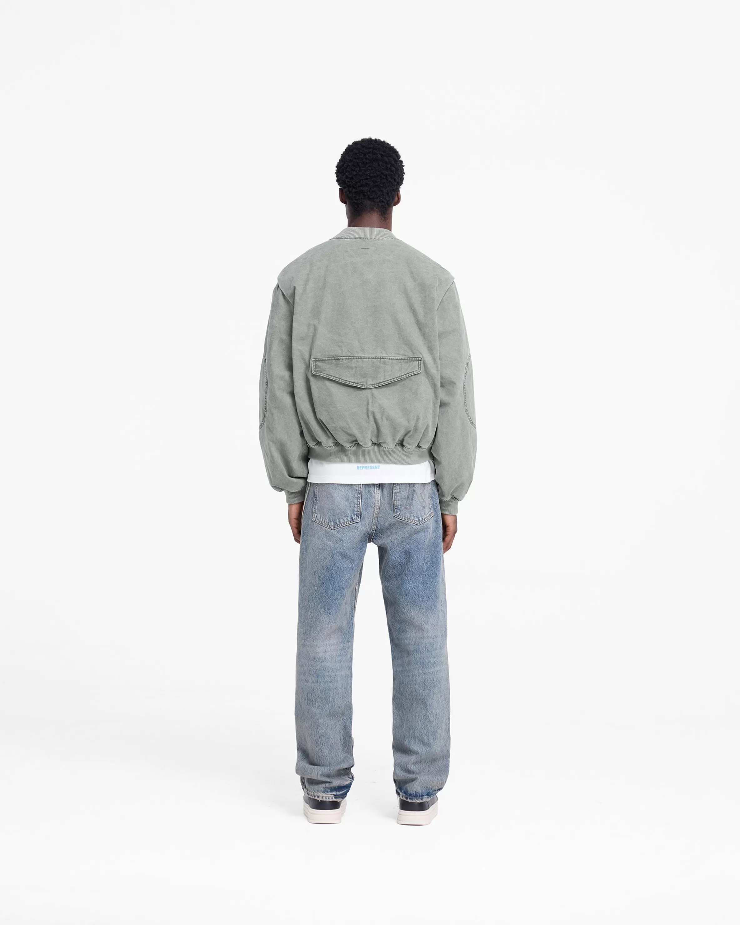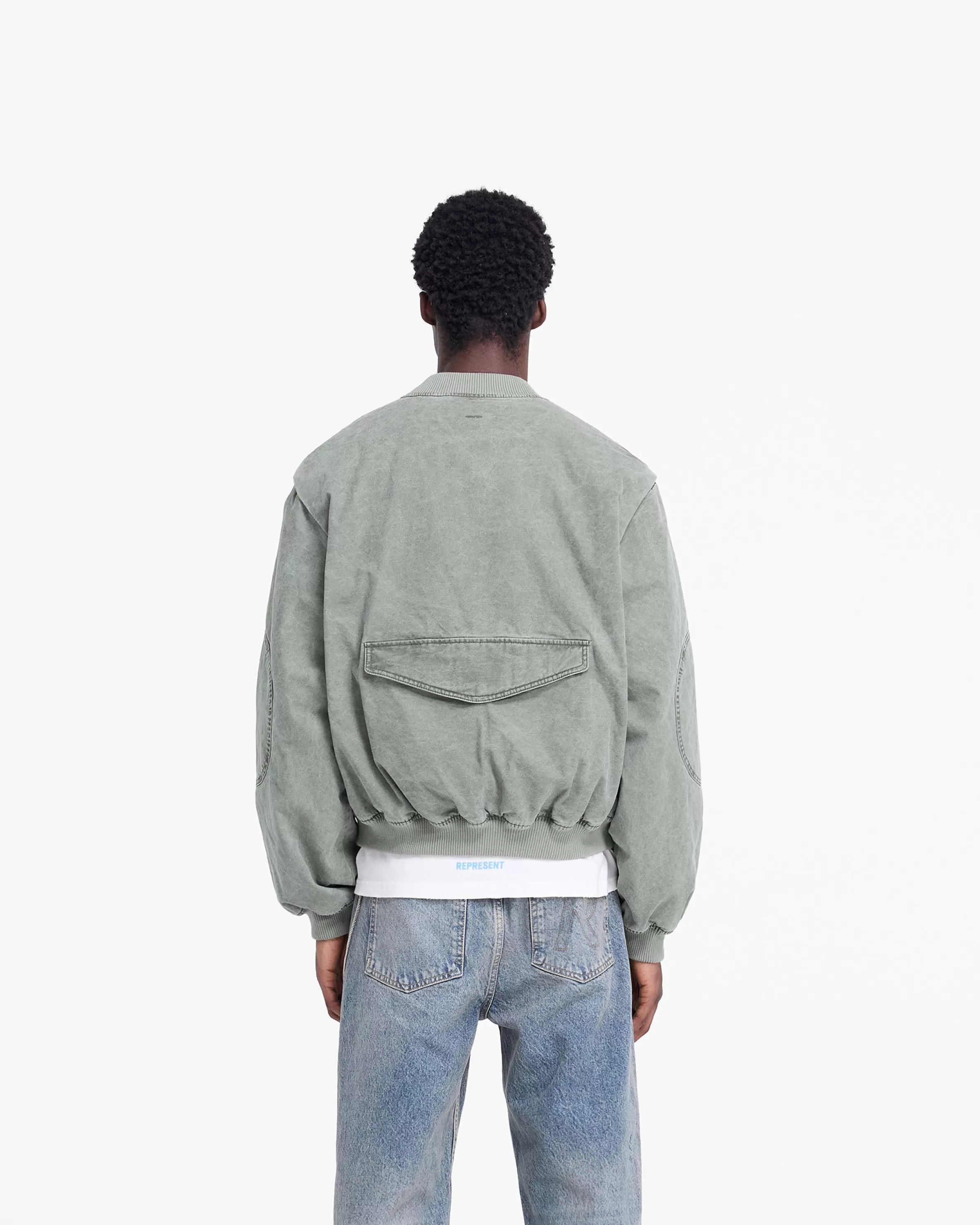 The Inset Sleeve Bomber Jacket in Khaki offers a contemporary take on the classic silhouette. Constructed from cotton with a garment for a washed out effect, this jacket features an asymmetric placket to the front. The zip guard, shoulder gussets, back pocket with hidden popper elevate the jacket to new levels. The jacket has a cotton lining and cotton/polyester ribbing to the neck and cuffs to ensure ultimate comfort. It is finished with Represent embroidered branding to the front. Khaki Bomber Jacket Cotton Slightly Oversized Fit Asymmetric Placket Zip Guard Back Pocket Shoulder Gussets Composition: Outer: 100% CottonLining: 100% CottonWadding: 100% Polyester Product Care: Wash at 30 degrees celsius. Do not beach, tumble dry, or dry clean. Medium temperature iron. Model is 188cm and 75kg wearing size MProduct