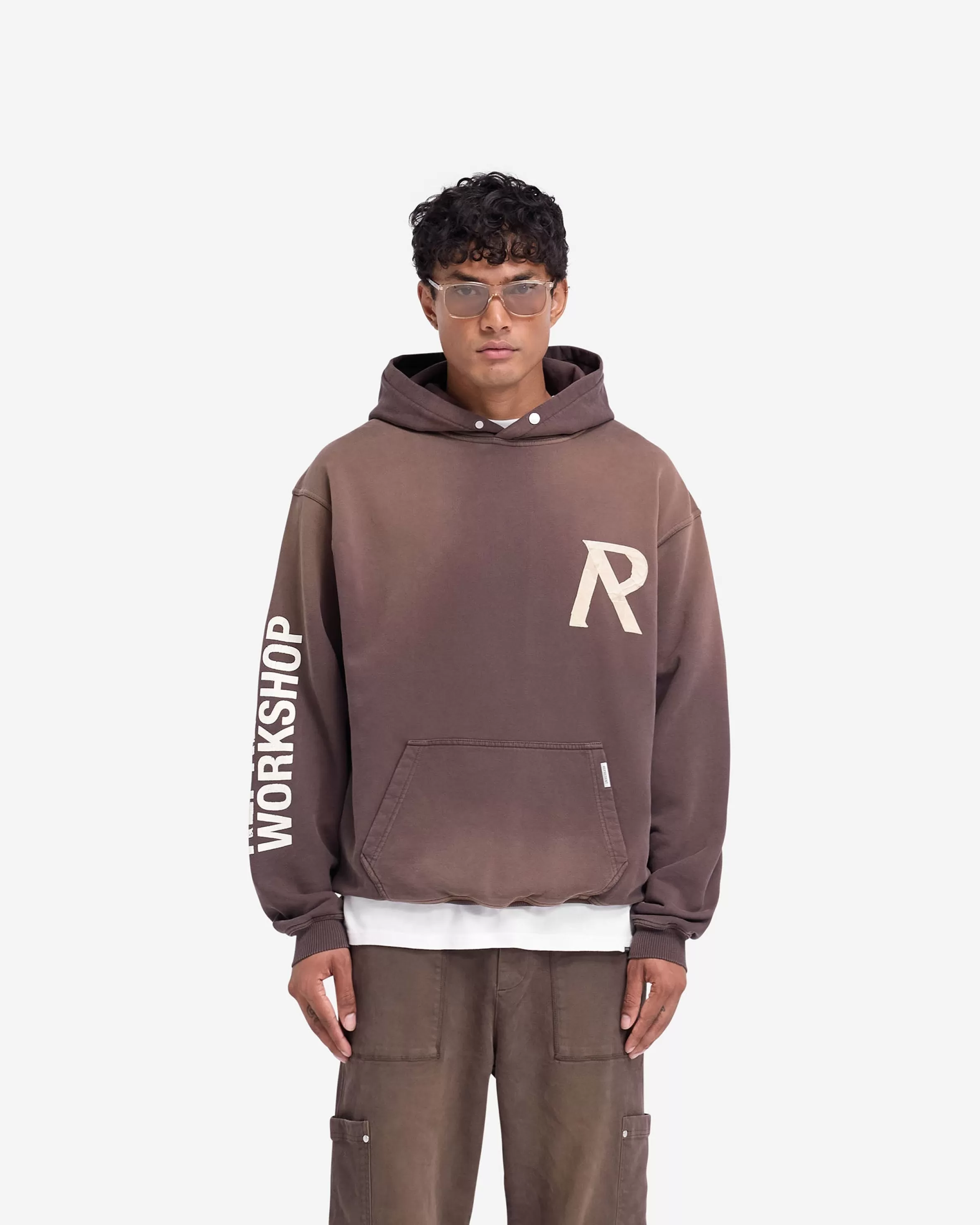 Introducing the Masking Tape Initial Hoodie in Cedar, a luxury slightly oversized hoodie, crafted from heavy weight jersey cotton. The hoodie showcases a 3D masking tape effect Initial to the front and back, with a cracked print to the sleeve. It has a corrosion vintage spray applied to the fabric, creating a vintage hue to the hoodie. It is finished with a Cobrax metal popper to the hood, and a Represent metal bar to the pocket. Cedar Hoodie Slightly Oversized 3D Masking Tape Effect Initial Cracked Print to Sleeve Corrosion Vintage Spray Cobrax Metal Popper Represent Metal Bar Logo Composition: 100% Cotton Product Care: Mild wash inside out at 30 degrees celsius. Hang dry in shade. Do not bleach, dry clean, or tumble dry. Loss of cracked ink may occur with wash and wear Model is 188cm and 75kg wearing size MProduct