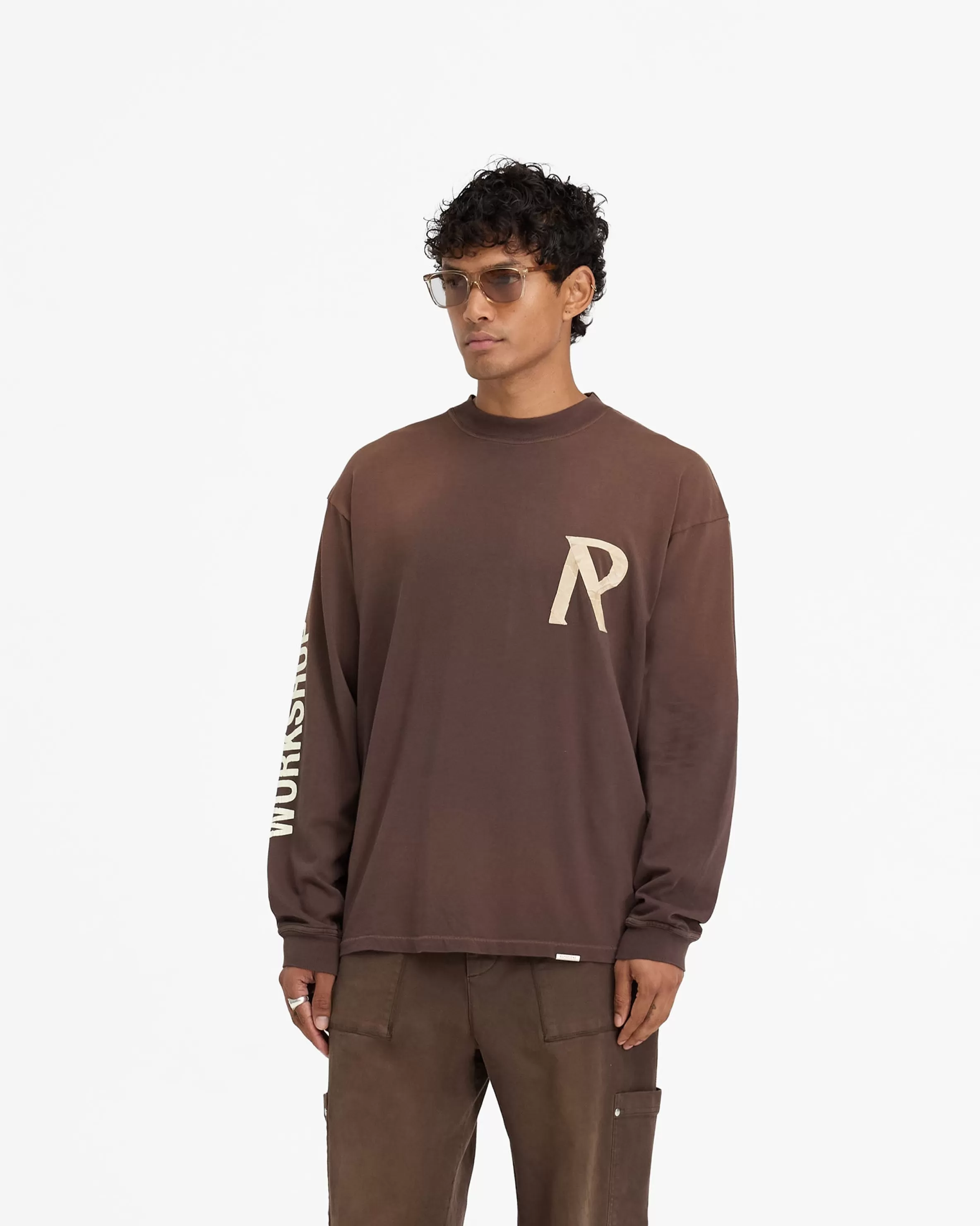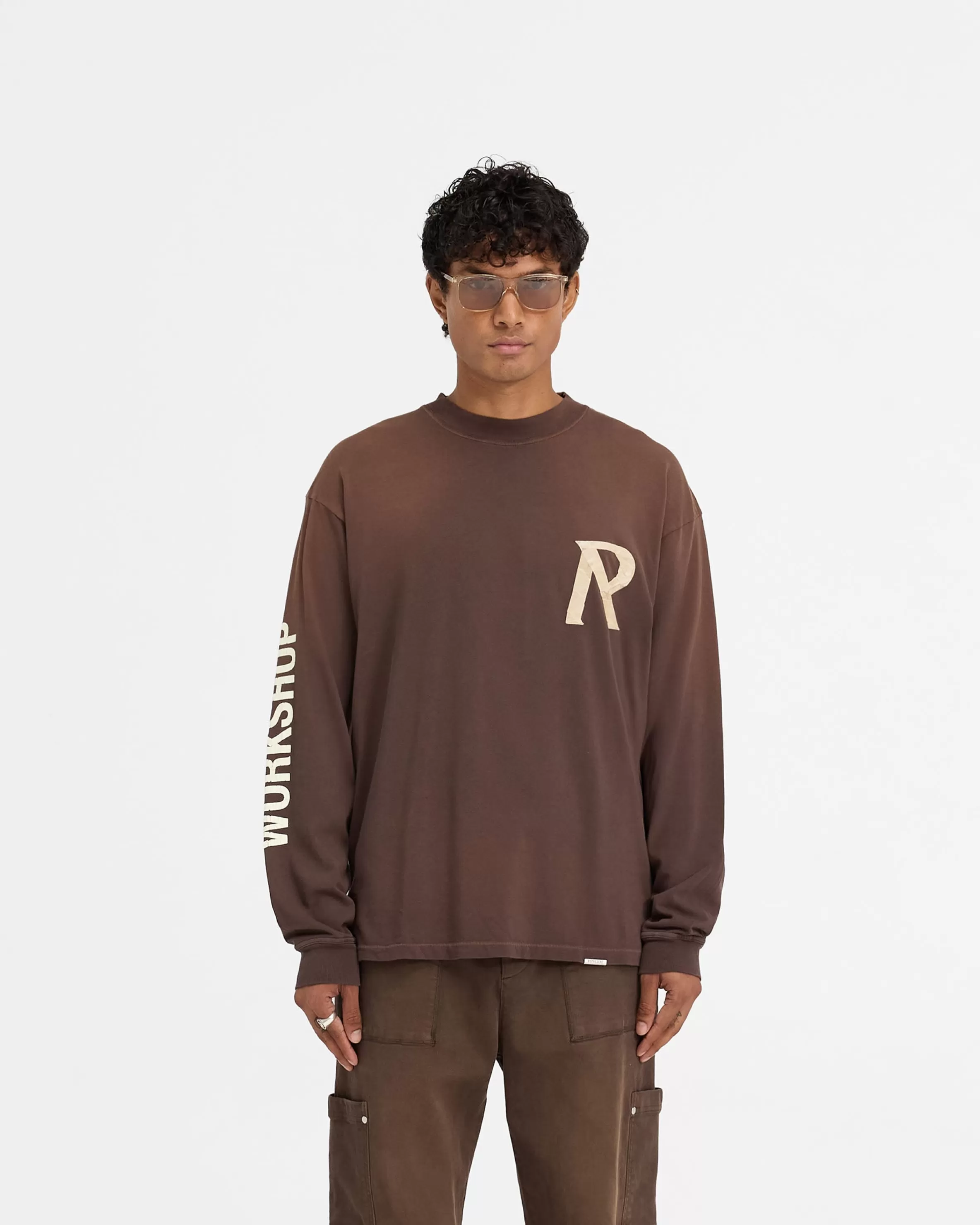 Introducing the Masking Tape Initial Long Sleeve T-Shirt in Cedar, a luxury slightly oversized t-shirt, crafted from med…