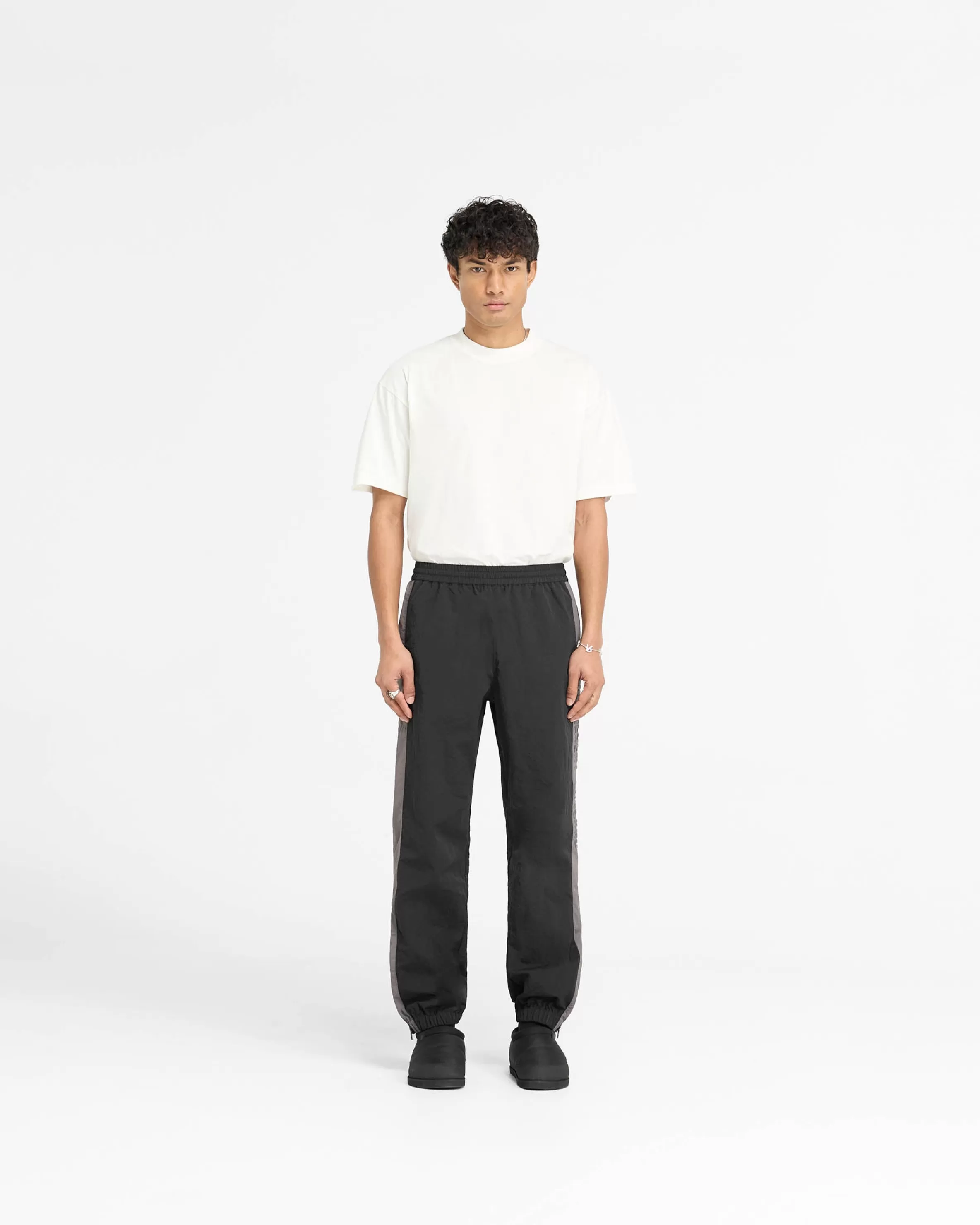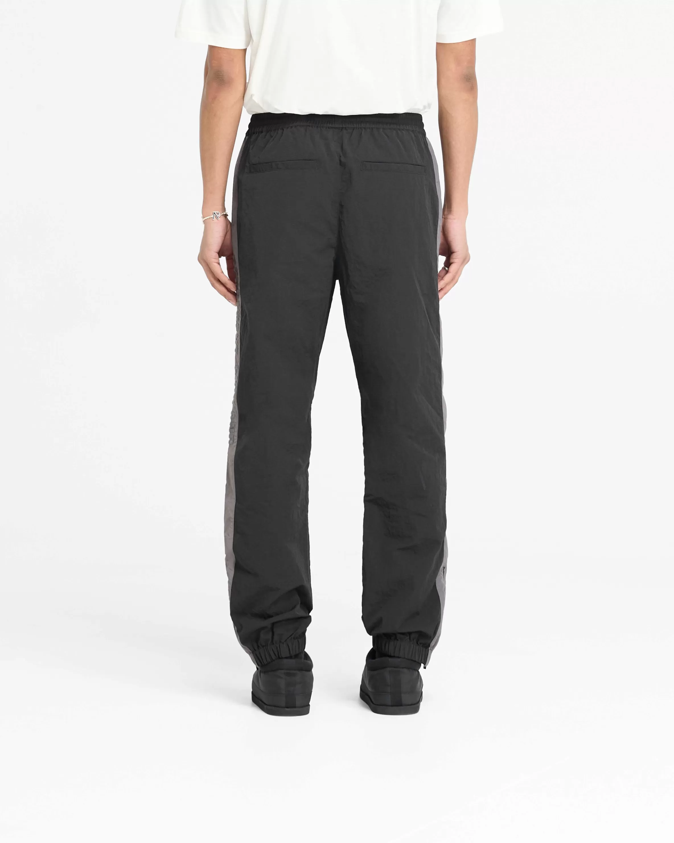 Introducing the Nylon Track Pant in Black, a luxury straight leg track pant style. The pants have an elasticated cuff an…
