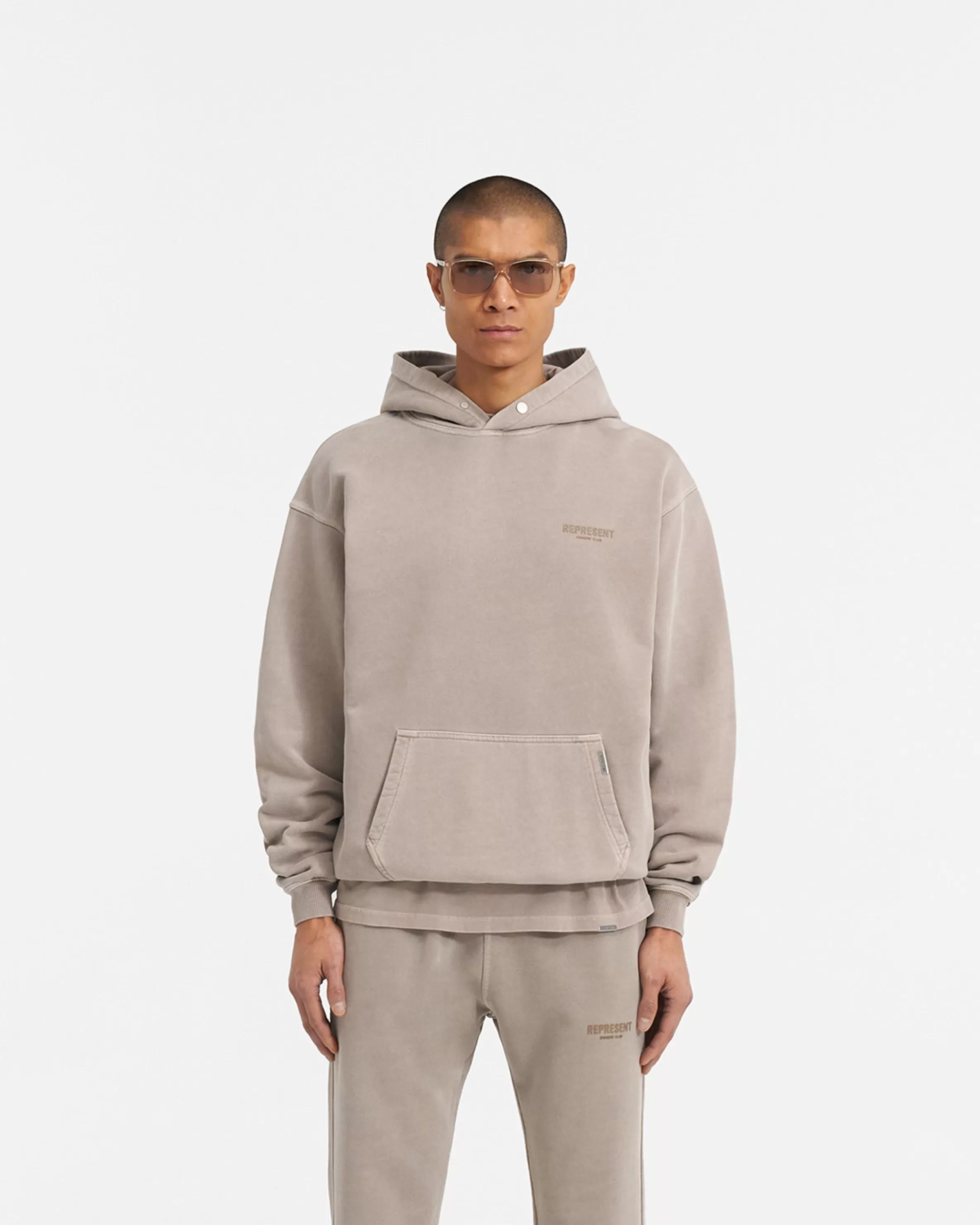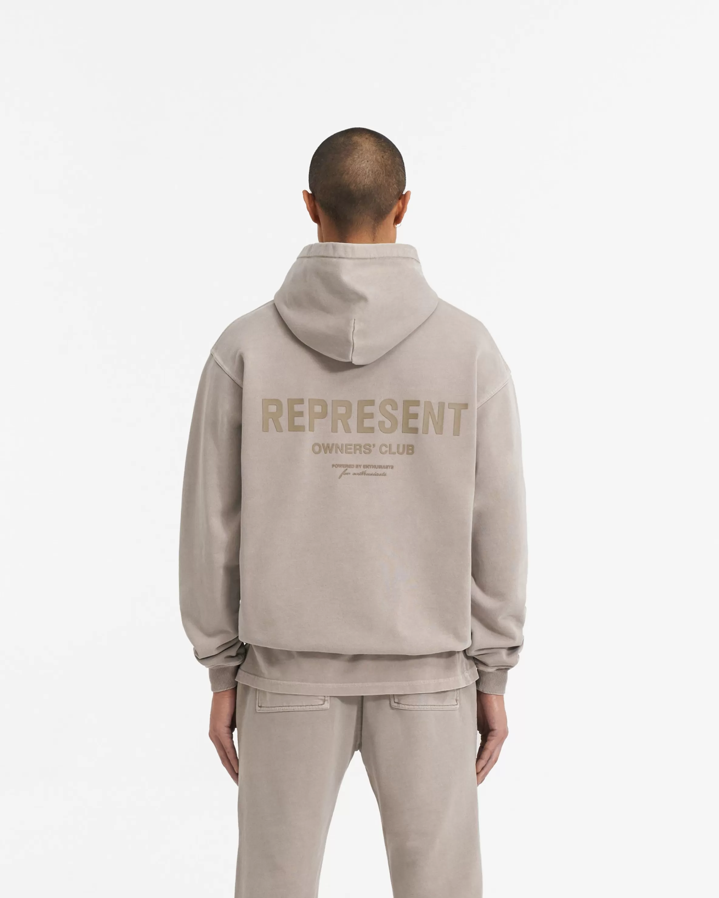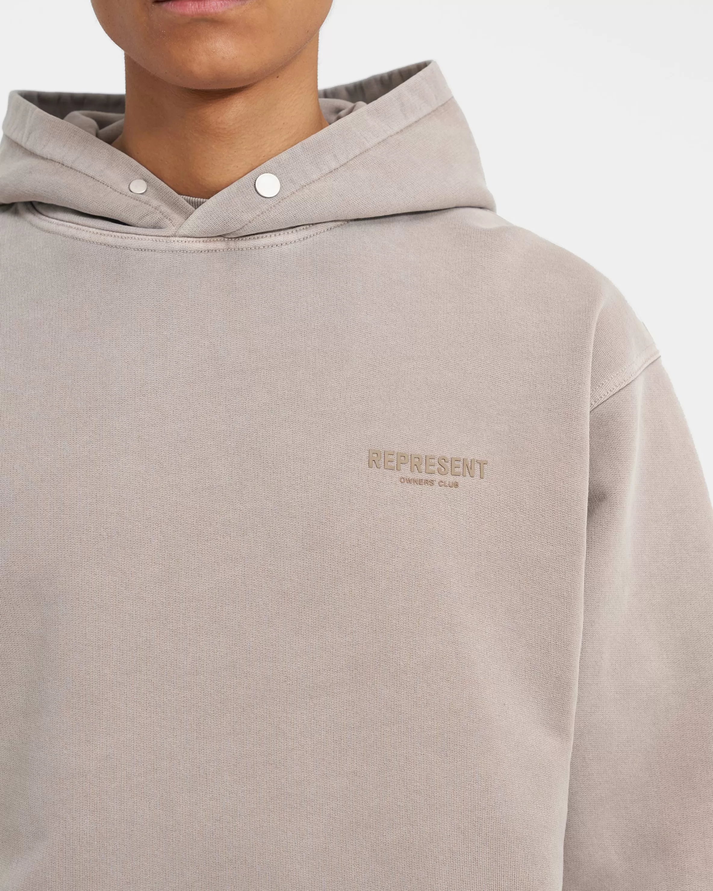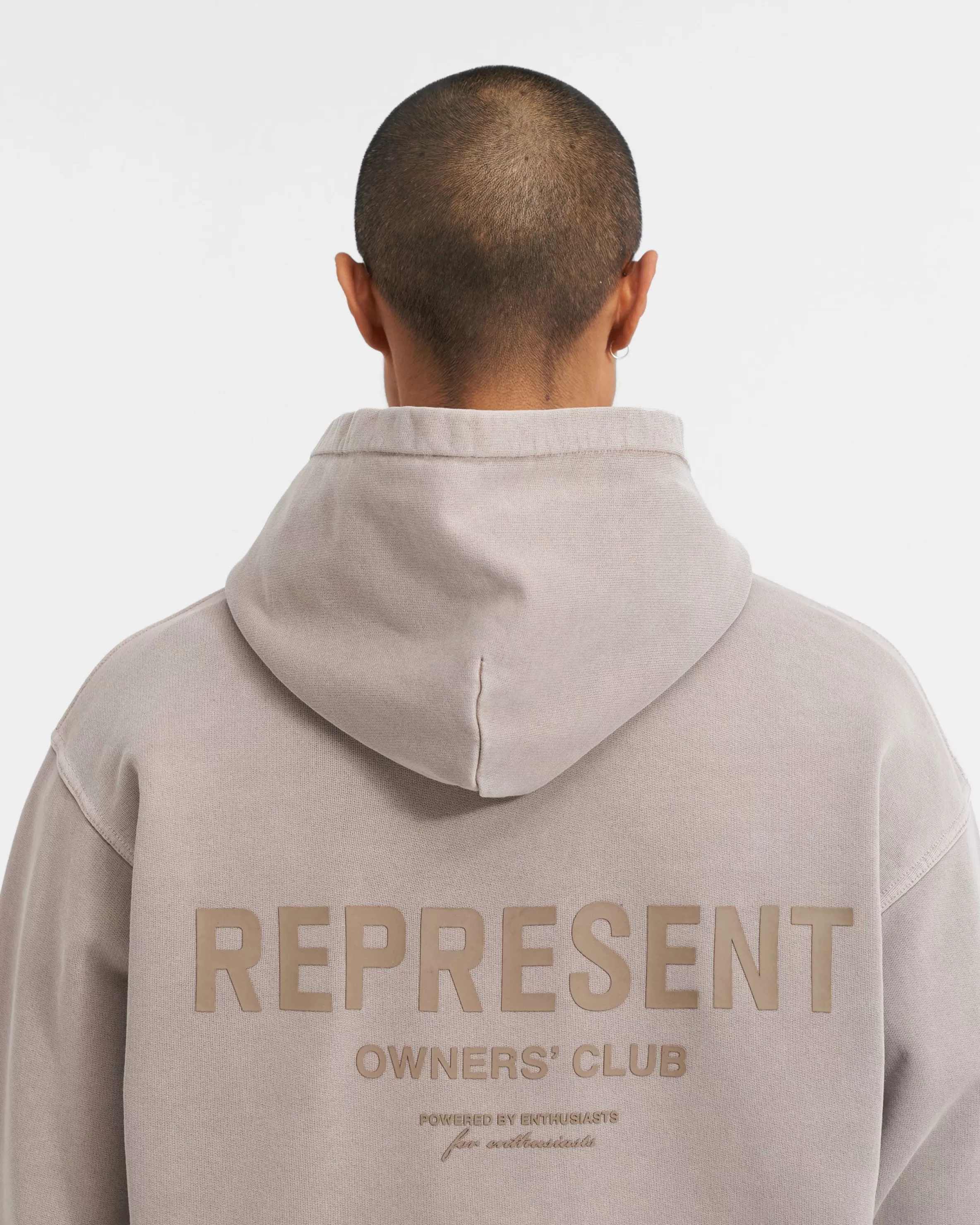Introducing the Represent Owners’ Club Hoodie in Mushroom, crafted from heavy weight jersey cotton with a slightly ove…