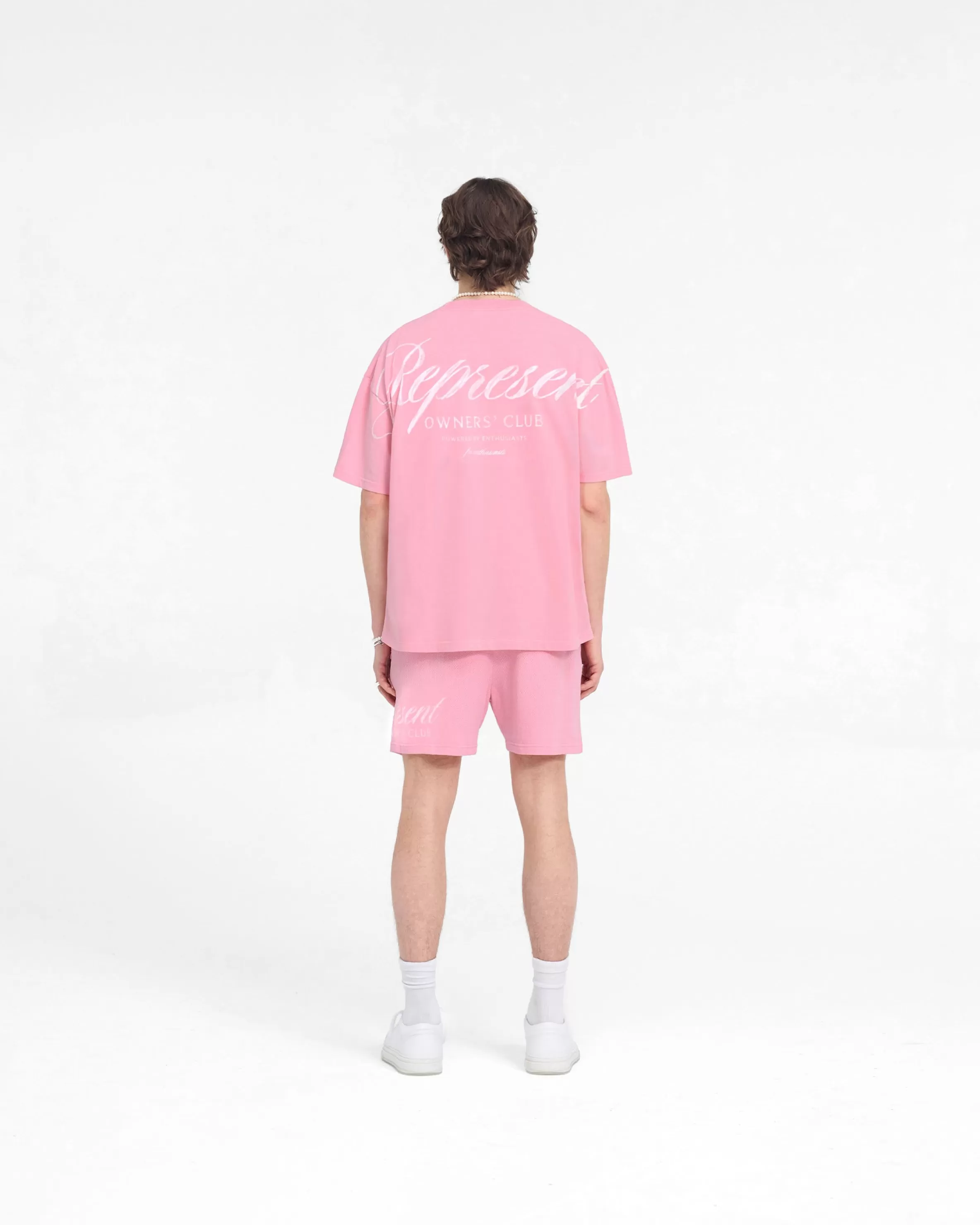 Introducing the latest evolution of the Represent Owners’ Club T-Shirt in Pink, an oversized t-shirt crafted from luxury medium weight cotton. This t-shirt has a ribbed crewneck collar and a Represent metal bar to the hem. The t-shirt features a water based screen print script graphic to the back, with a brushed effect applied to the screen itself for a natural paint brush style finesse to the print. It maintains a balance with the DNA of the original style, with our “Powered by enthusiasts, for enthusiasts” motif. Represent Owners’ Club Script T-Shirt Pink Oversized Fit Screen printed Round Neck Short Sleeves Represent Metal Bar Logo Composition: 100% Cotton220gsm Model is 181cm and 70kg wearing size MediumProduct