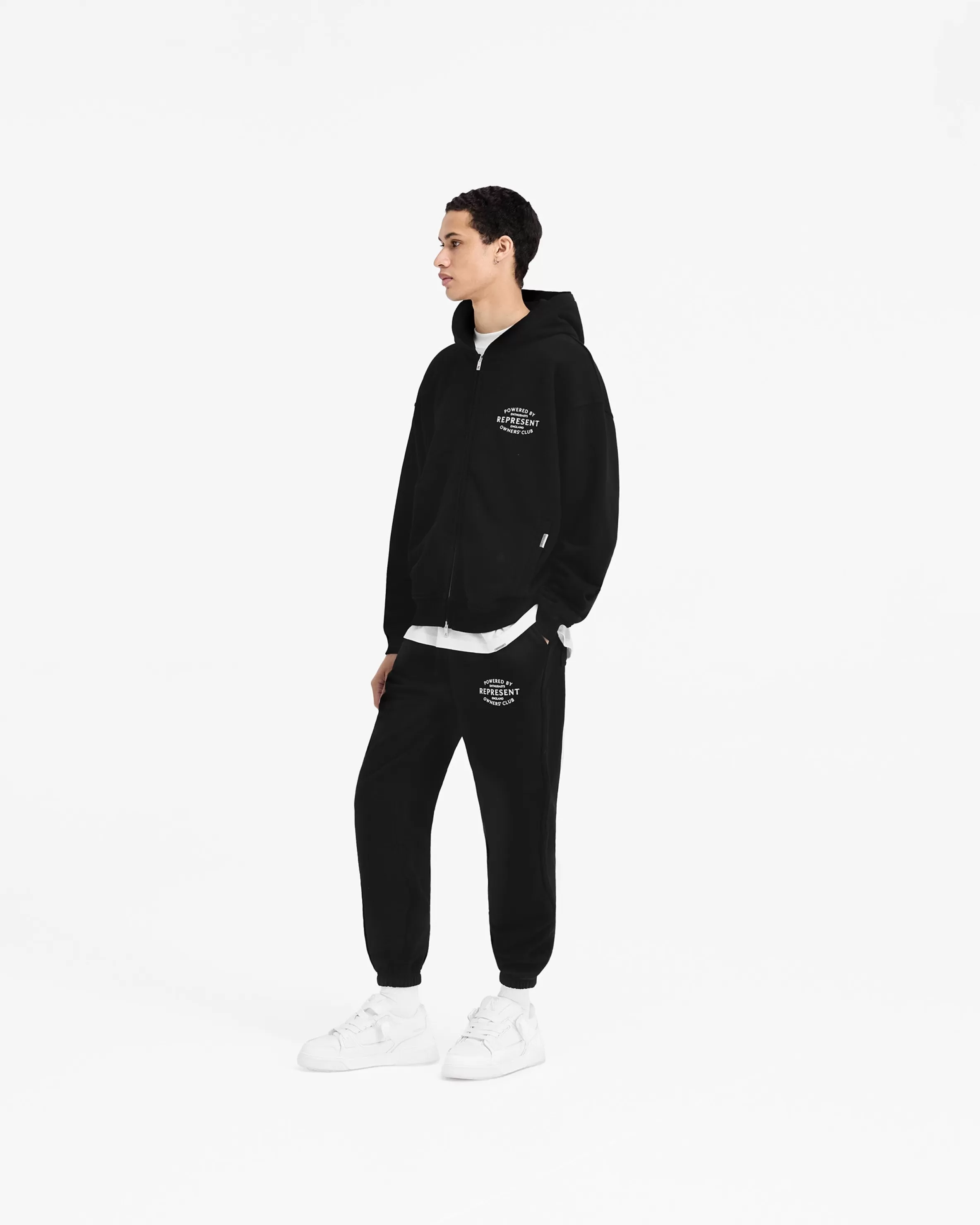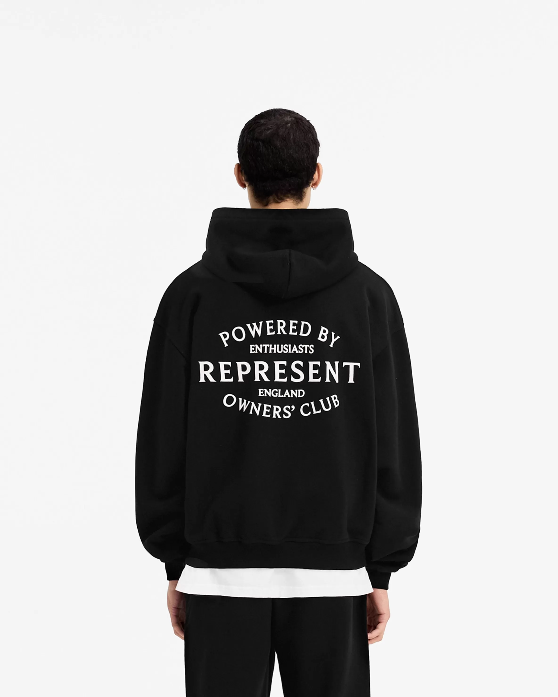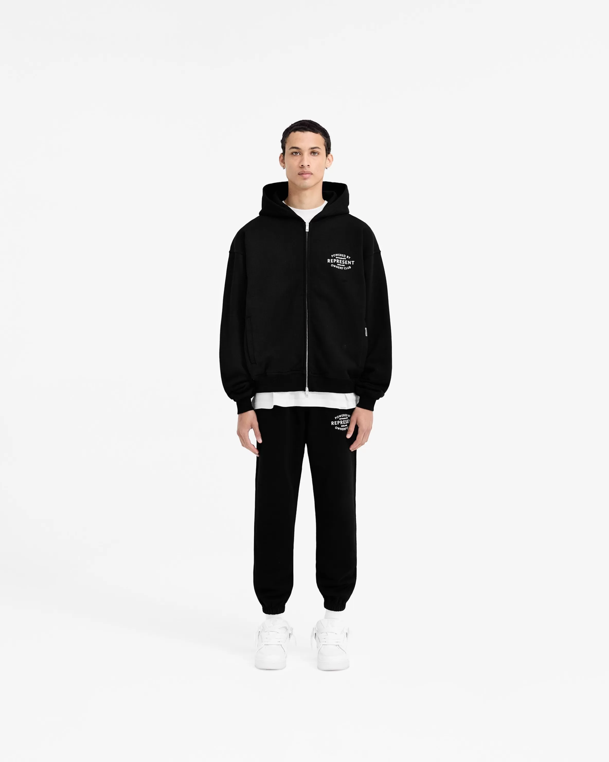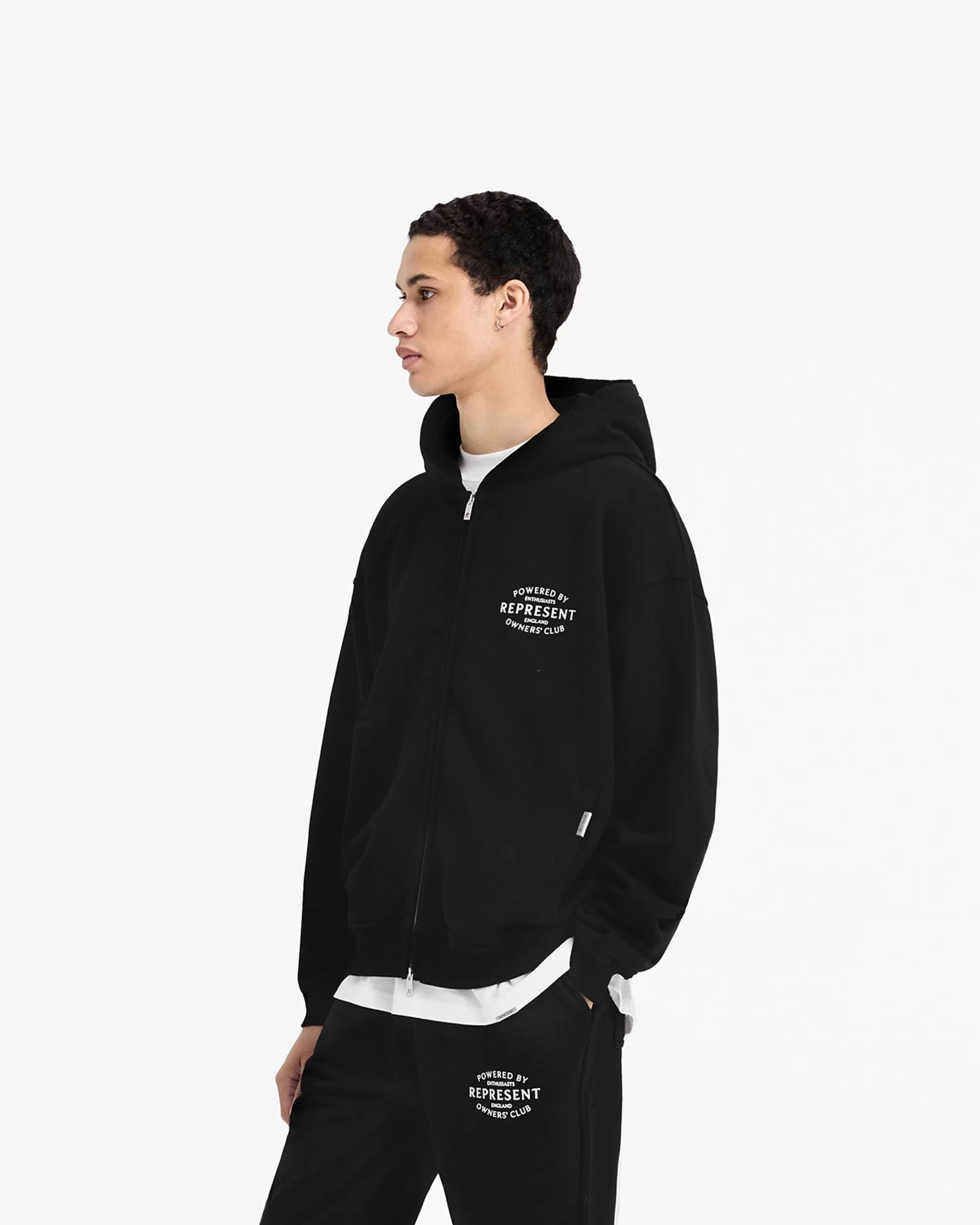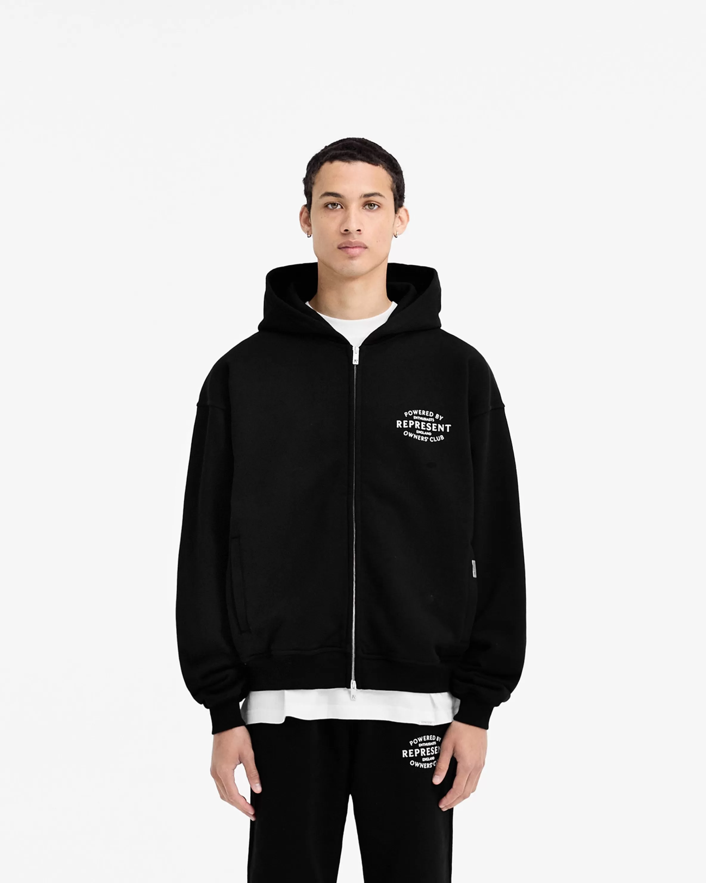 Introducing the Represent Owners’ Club Stamp Zip Up Hoodie in Jet Black, a clean and refreshed take on the classic Owners’ Club Hoodie. Crafted from a heavy weight jersey cotton with a slightly oversized fit, the hoodie has a ribbed hem and cuffs, with a double ended RiRi zip to the front, and Represent metal bar logo to the pocket. It features our high build screen printed Stamp Owners’ Club branding to the chest and back. Jet Black Zip Up Hoodie Slightly Oversized Fit Ribbed Hem u0026amp; Cuffs RiRi Double Ended Zip High Build Branding Metal Bar Logo Composition: 100% Cotton480gsm Model is 187cm and 77kg wearing size MProduct