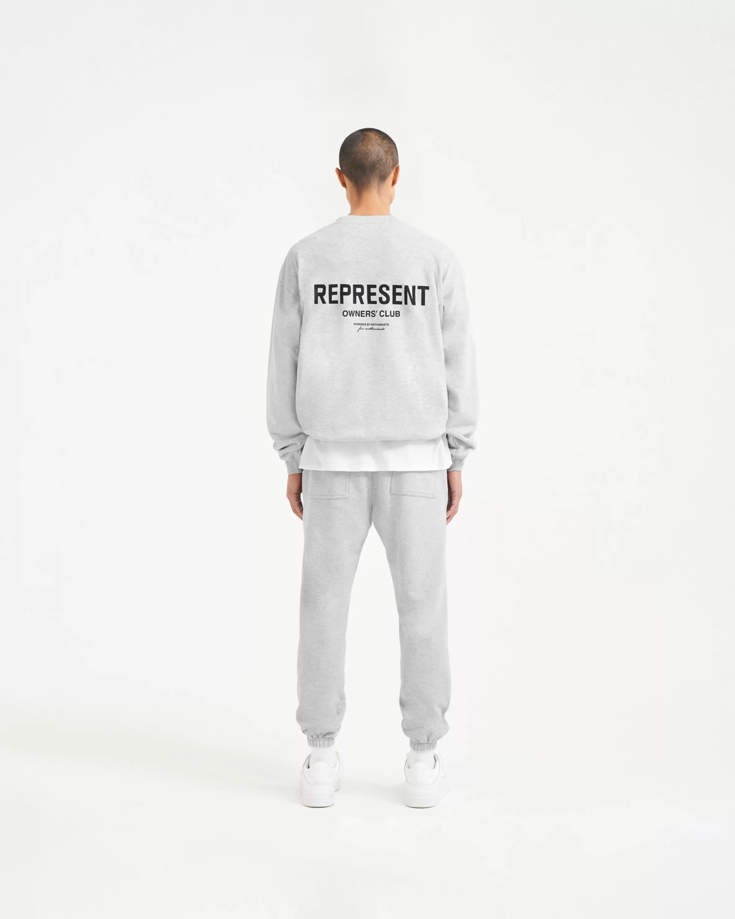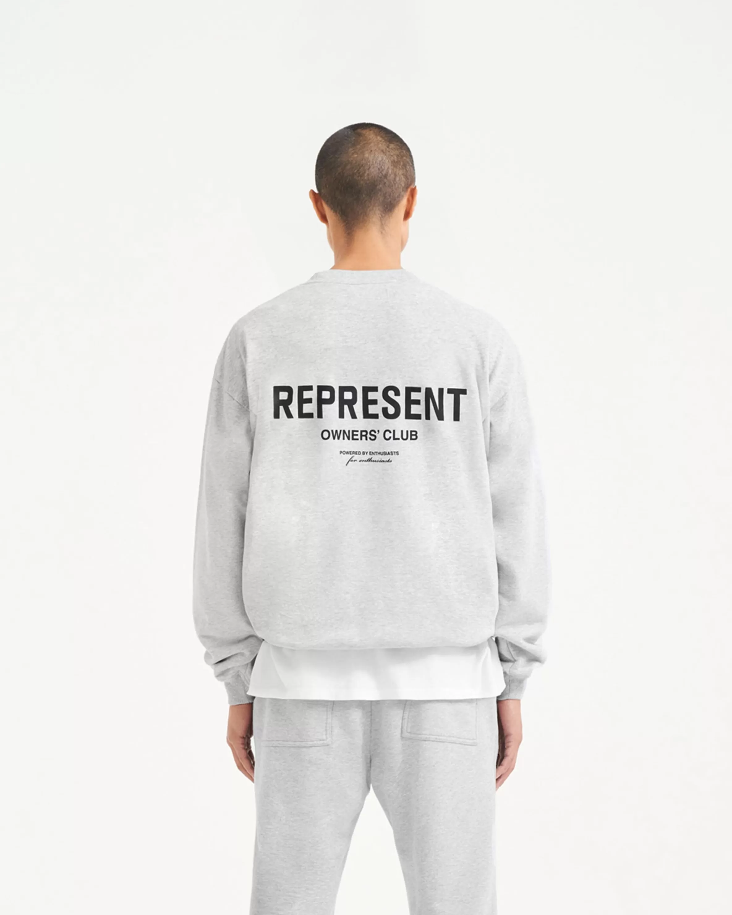 Ash grey sweater with a slightly oversized fit in a heavy weight jersey cotton. Super soft, pre-shrunk and piece dyed for the ultimate jersey. Ribbed hem u0026amp; cuffs. Features black Represent Owners Club branding to the chest and back. Ash Grey Sweater Black Owners Club Branding Oversized fit Crewneck sweater Loopback Jersey Ribbed trims Composition: 100% Cotton 480gsmMade in PortugalModel is 172cm and 65kg wearing size Large. OCM41115-158