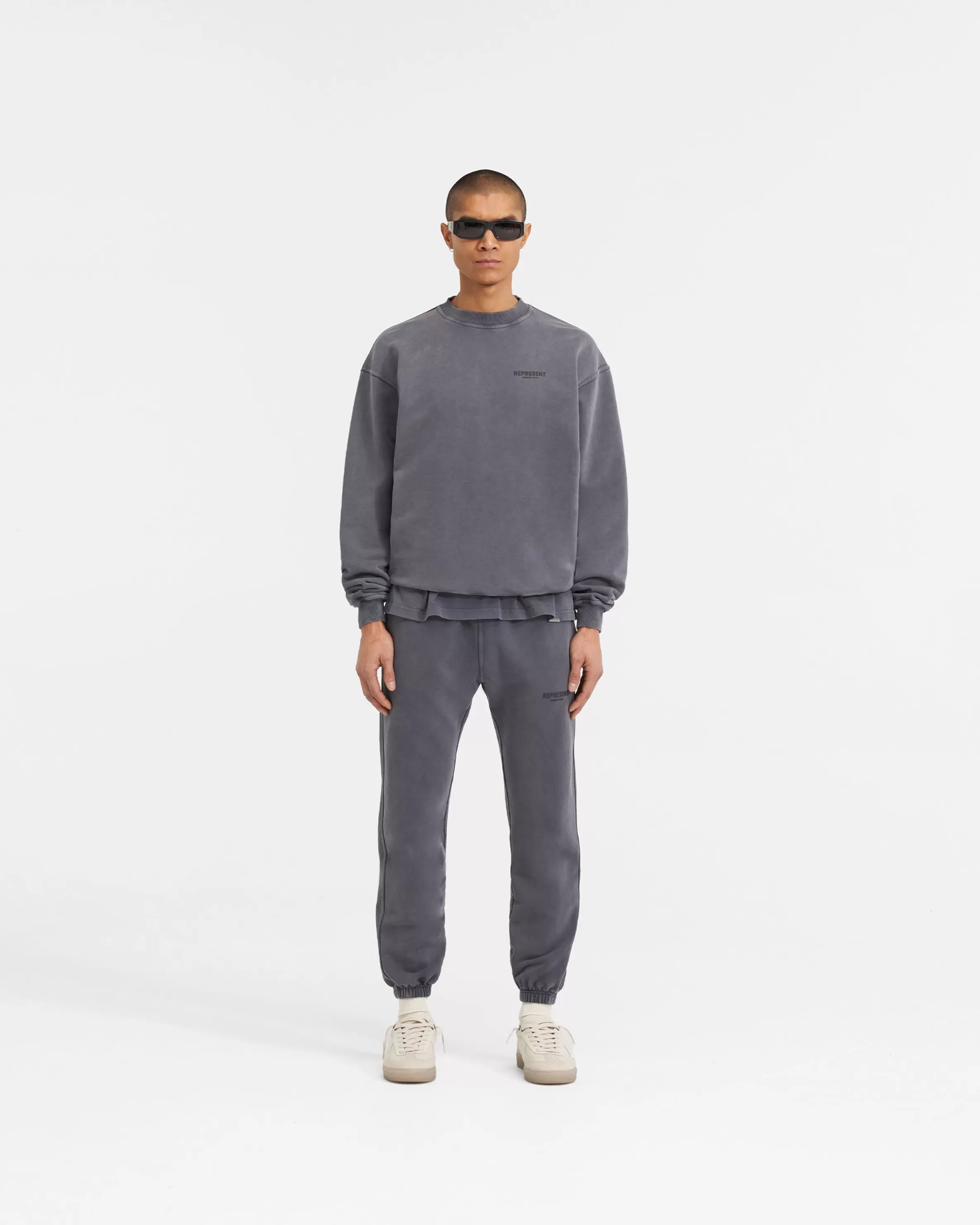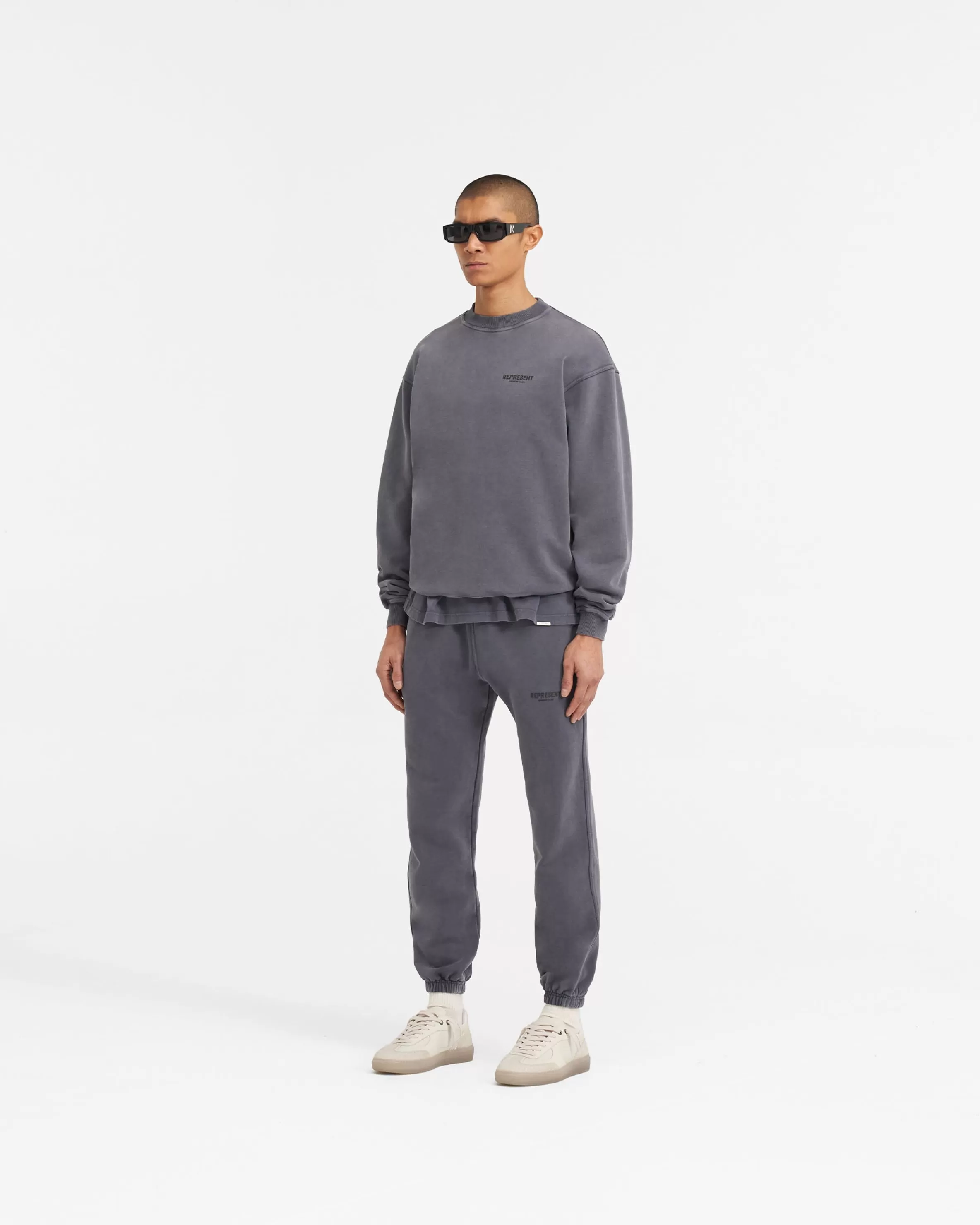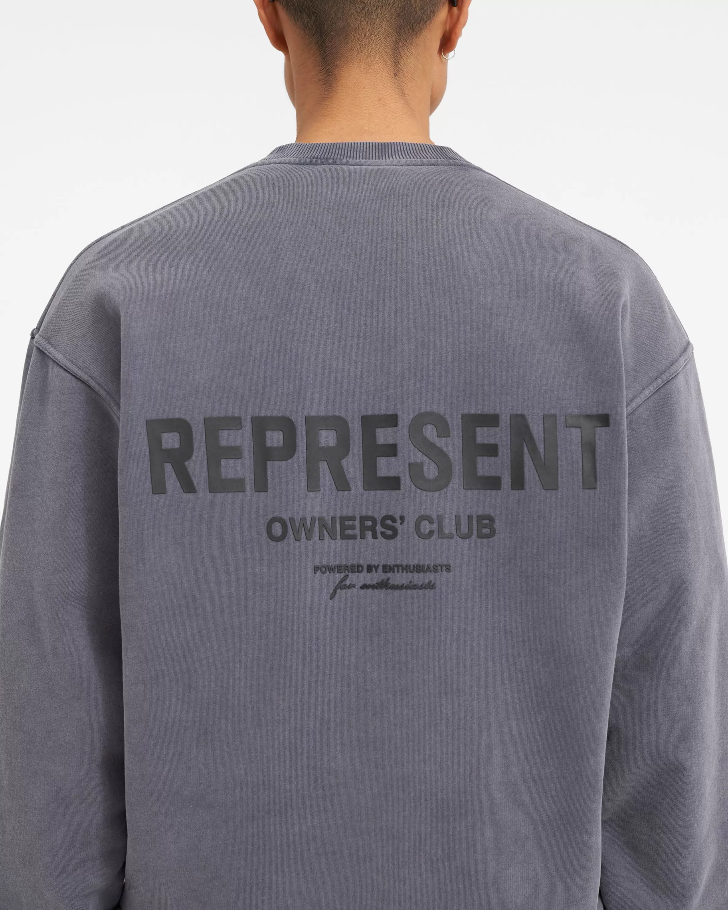 This item purchased in the Black Friday Sale is final sale and cannot be returned or exchanged. Introducing the Represent Owners’ Club Sweater in Storm, crafted with a slightly oversized fit in a heavy weight jersey cotton. The sweater has ribbed hem u0026amp; cuffs, with high build Owners’ Club print to the chest u0026amp; back. It is finished with a Represent metal bar to the hem. The wash on this sweater is a pigment wash, an intensive process of taking pieces constructed with no colouring, and manually dying post-formation. The infusion of fabric and pigment ushers to propel the garments to a degree of unparalleled richness; a visual symphony of depth and texture, with dye accrued around areas such as the seams and hem, creating an illusion of natural fade on base elements of the clothing. Storm Sweater Oversized Fit Crewneck Sweater Loopback Jersey Ribbed Trims High Build Branding Composition: 100% Cotton480gsmModel is 187cm and 76kg wearing size MediumMade in PortugalProduct