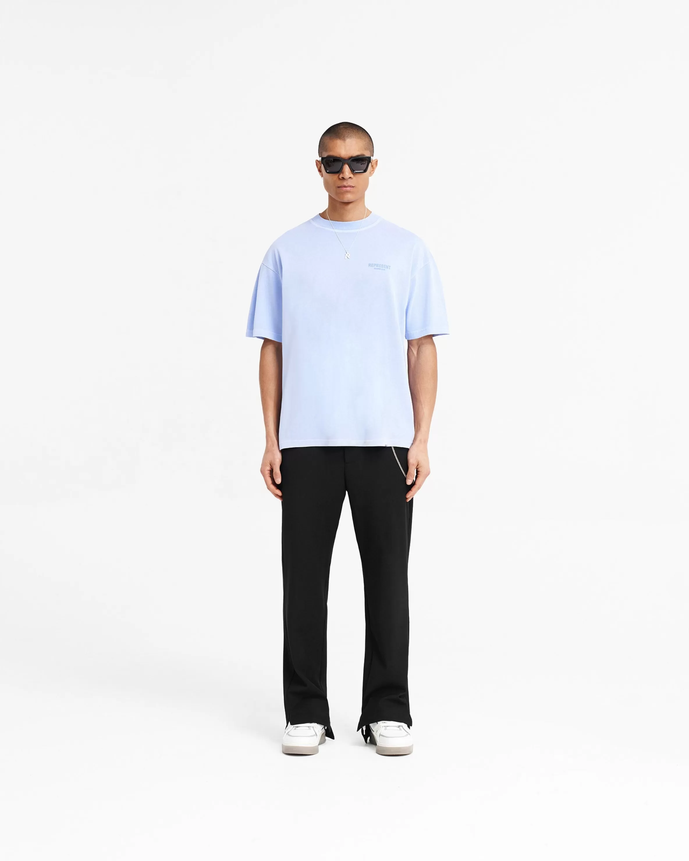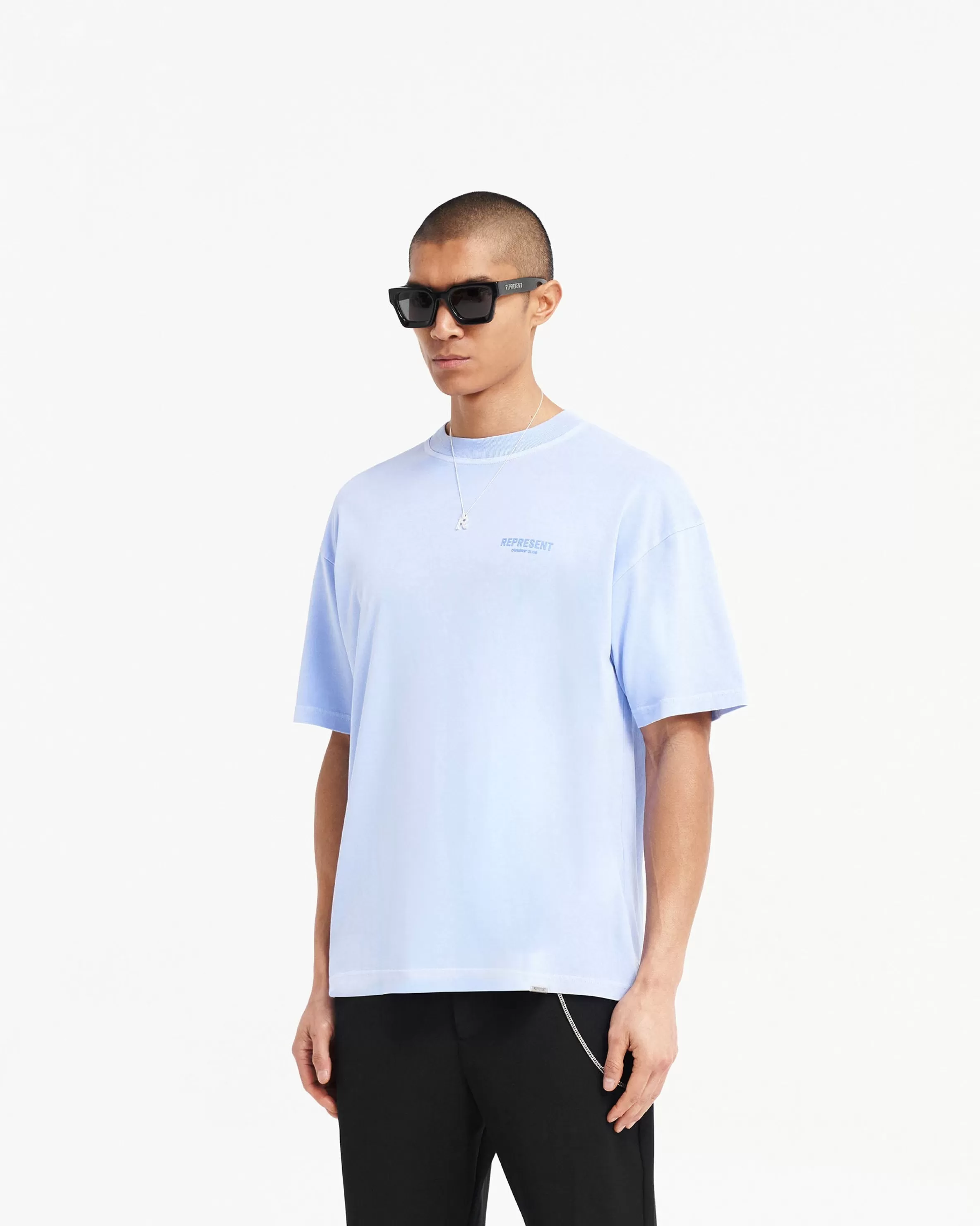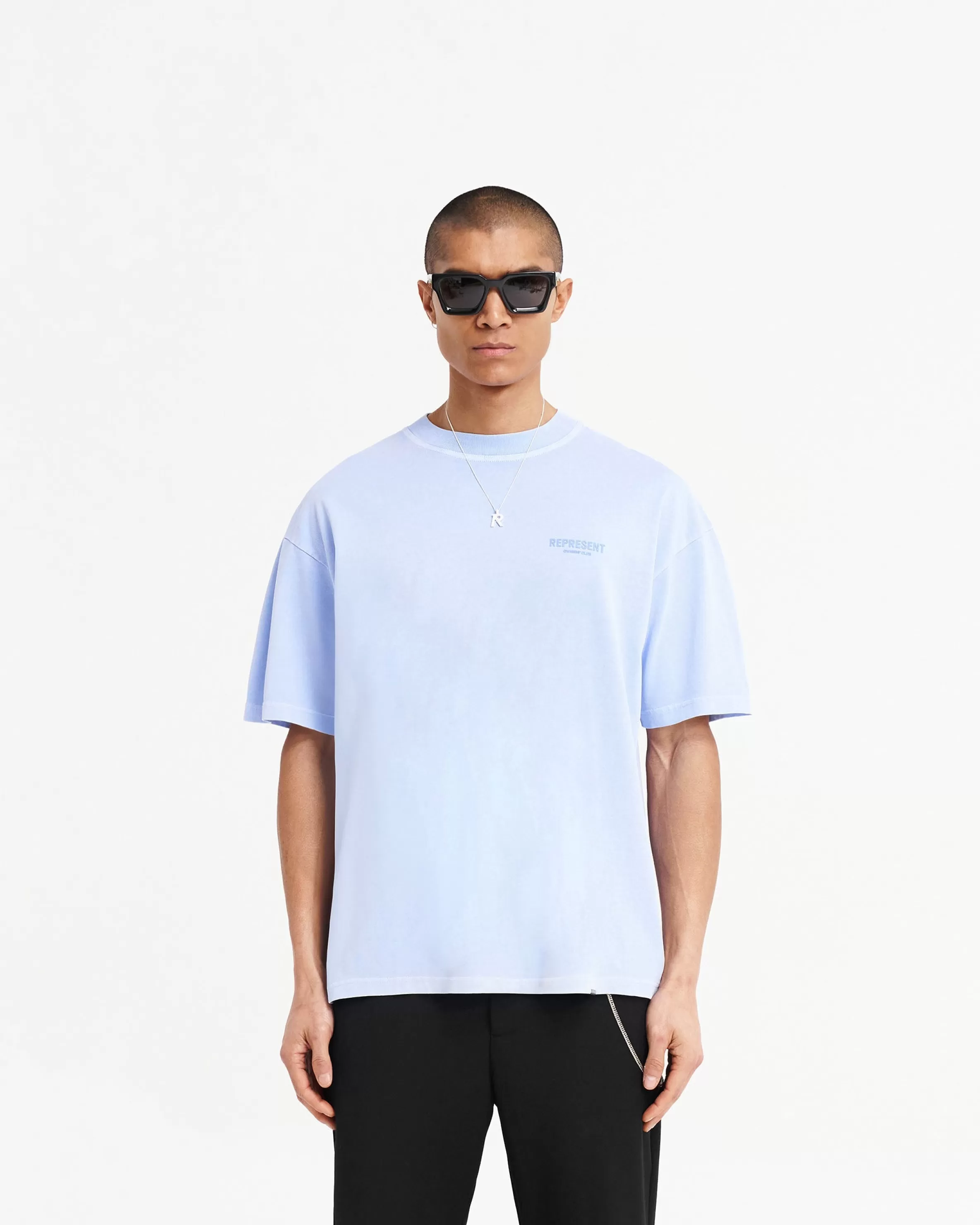 Introducing the Represent Owners’ Club T-Shirt in Vista Blue, an oversized t-shirt crafted from luxury medium weight c…