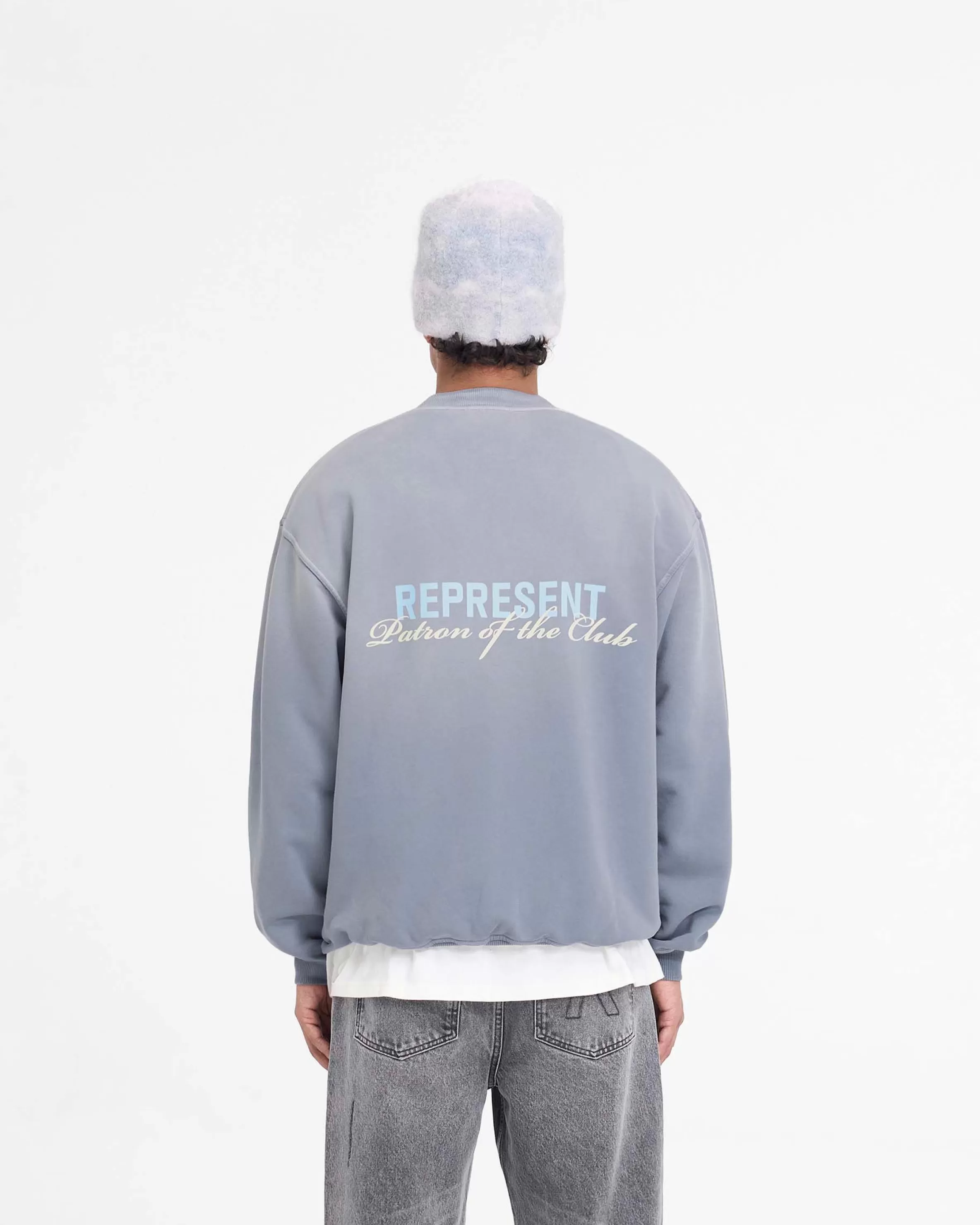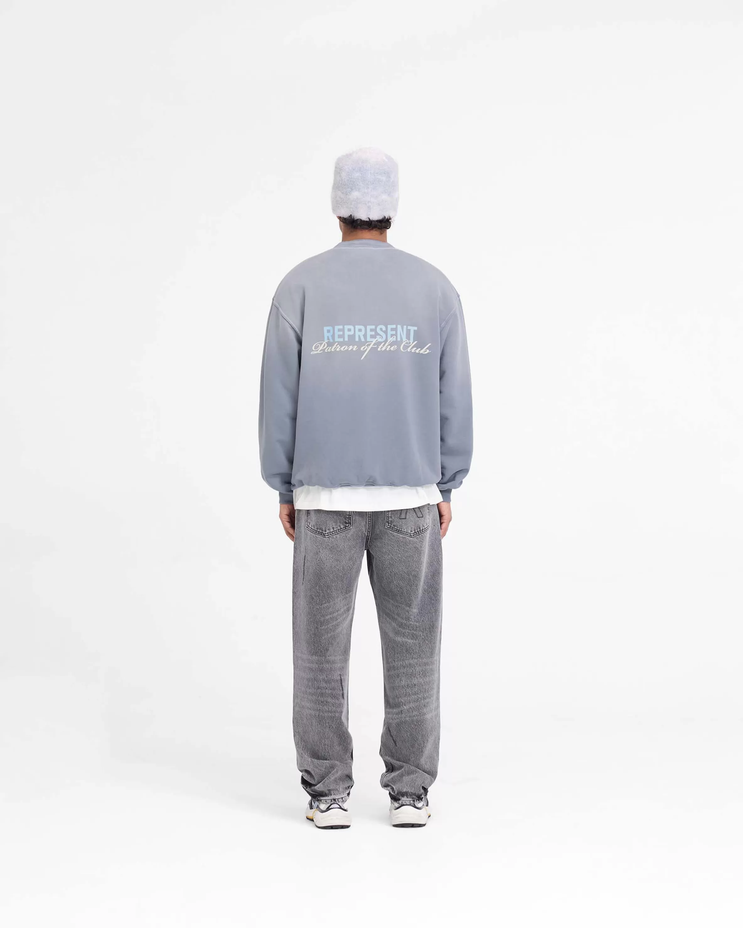Introducing the Patron of the Club Sweater in Washed Grey, a luxury sweater with an oversized fit, crafted from heavy weight jersey cotton with a fade out wash and spray applied for a distinctive worn look. Super soft and pre-shrunk for the ultimate jersey. Ribbed hem u0026amp; cuffs and featuring our Patron of the Club print to the chest u0026amp; back. The sweater is finished with a Represent metal bar to the pocket. Please note that due to the nature of the dying process of this garment, there may be slight variation between the fade of each garment, making each piece truly individual. Washed Grey Hoodie Oversized Fit Patron of the Club Print Loopback Jersey Ribbed Hem u0026amp; Cuffs Composition: 100% Cotton480gsm Model is 188cm and 75kg wearing size MProduct