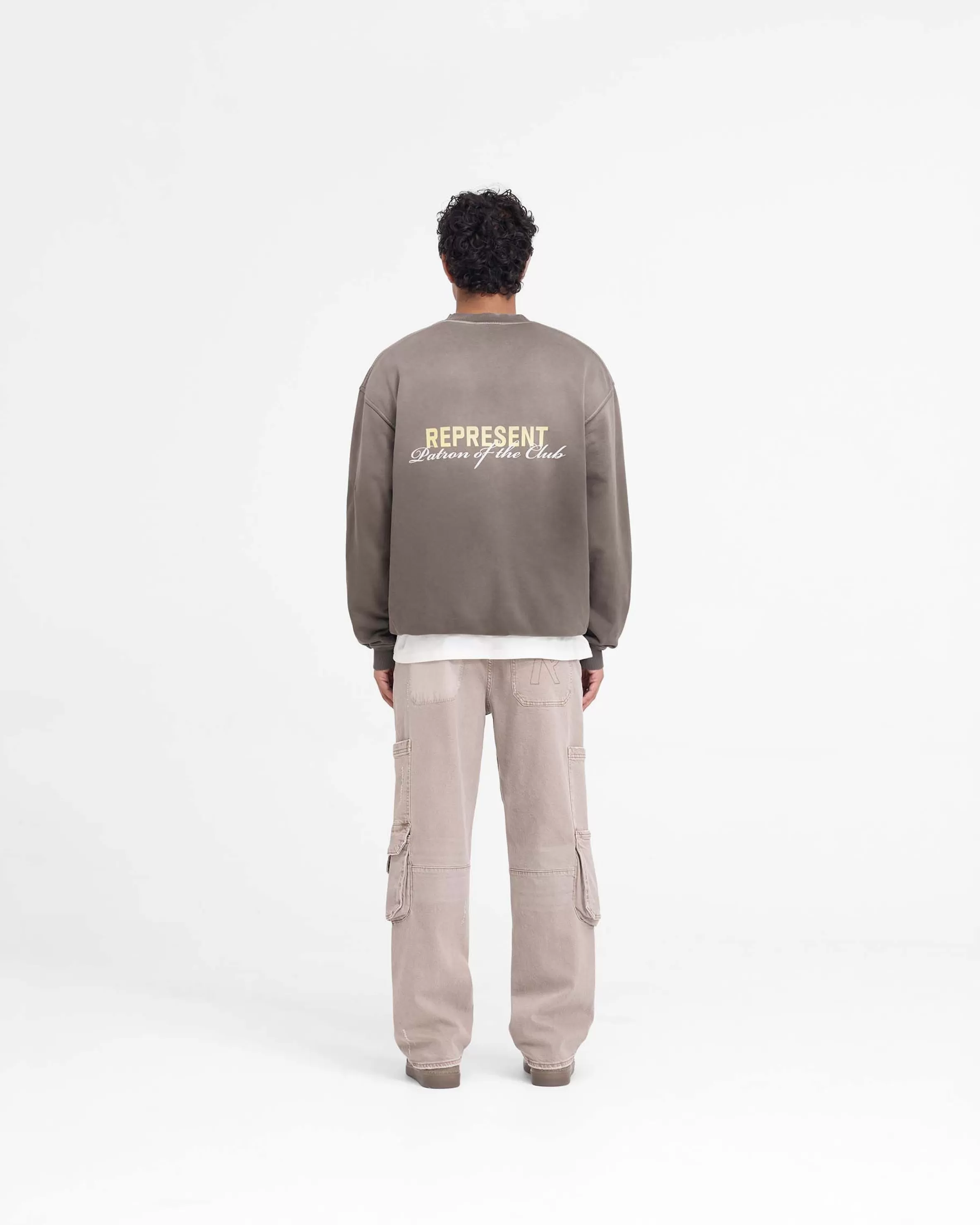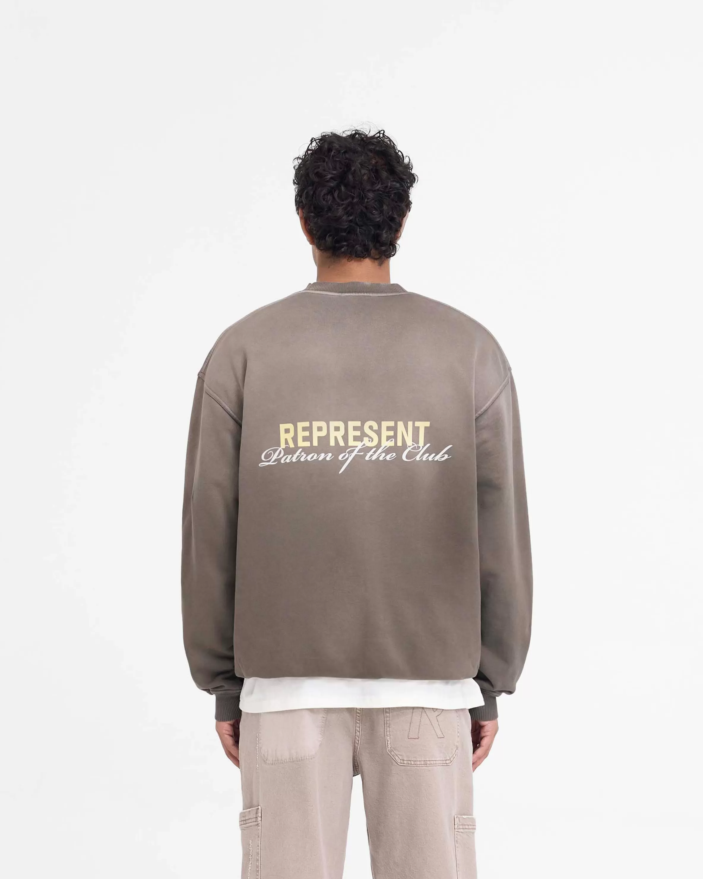 Introducing the Patron of the Club Sweater in Washed Olive, a luxury sweater with an oversized fit, crafted from heavy weight jersey cotton with a fade out wash and spray applied for a distinctive worn look. Super soft and pre-shrunk for the ultimate jersey. Ribbed hem u0026amp; cuffs and featuring our Patron of the Club print to the chest u0026amp; back. The sweater is finished with a Represent metal bar to the pocket. Please note that due to the nature of the dying process of this garment, there may be slight variation between the fade of each garment, making each piece truly individual. Washed Olive Hoodie Oversized Fit Patron of the Club Print Loopback Jersey Ribbed Hem u0026amp; Cuffs Composition: 100% Cotton480gsm Model is 188cm and 75kg wearing size MProduct